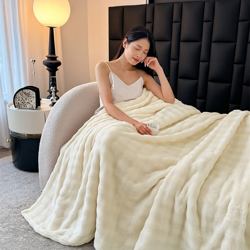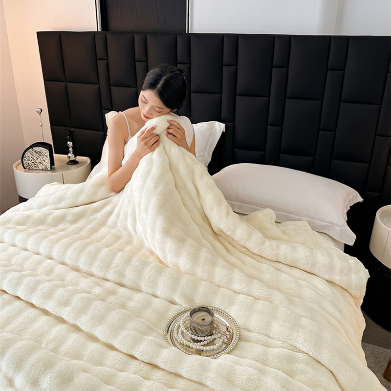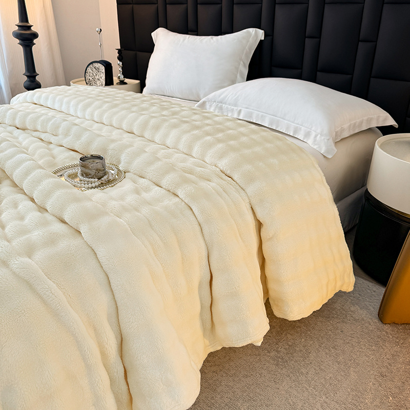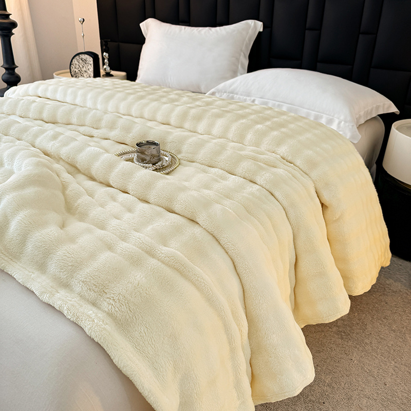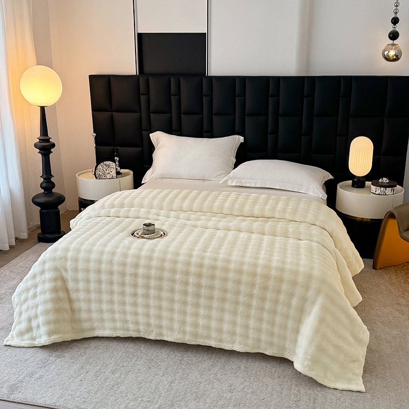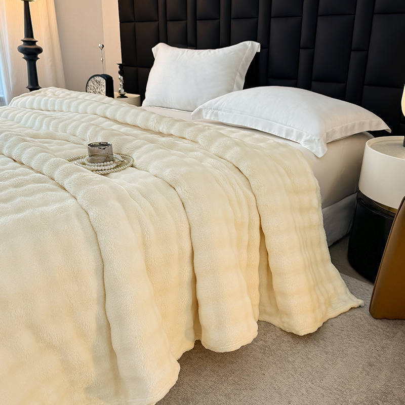 安琪家纺 2025新款300G炫彩水墨画仿兔毛绒大泡泡绒印花法兰绒毛毯大理石纹休闲毯沙发盖毯跨境外贸出口专供 泡泡纯色-米白,泡泡纯色-米白