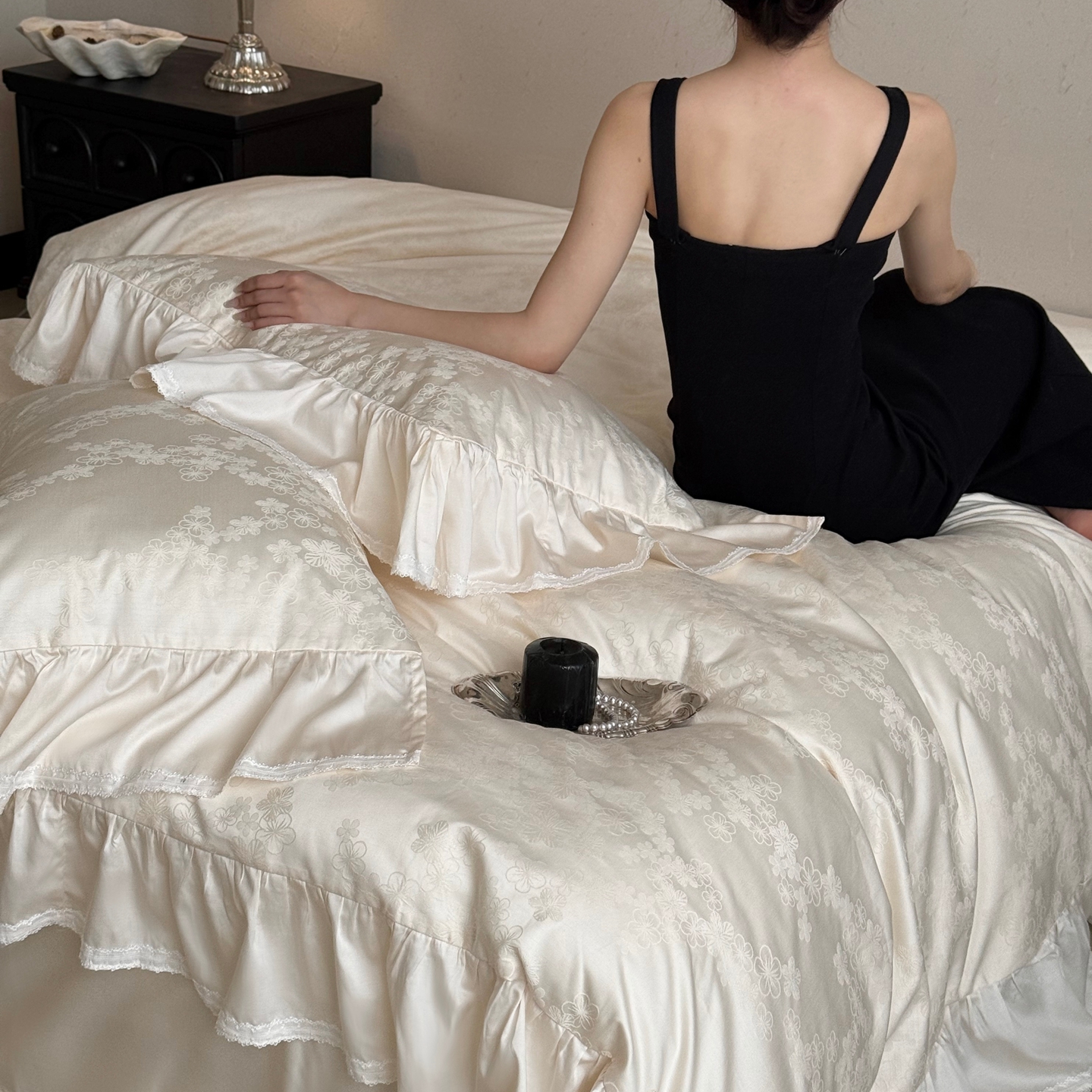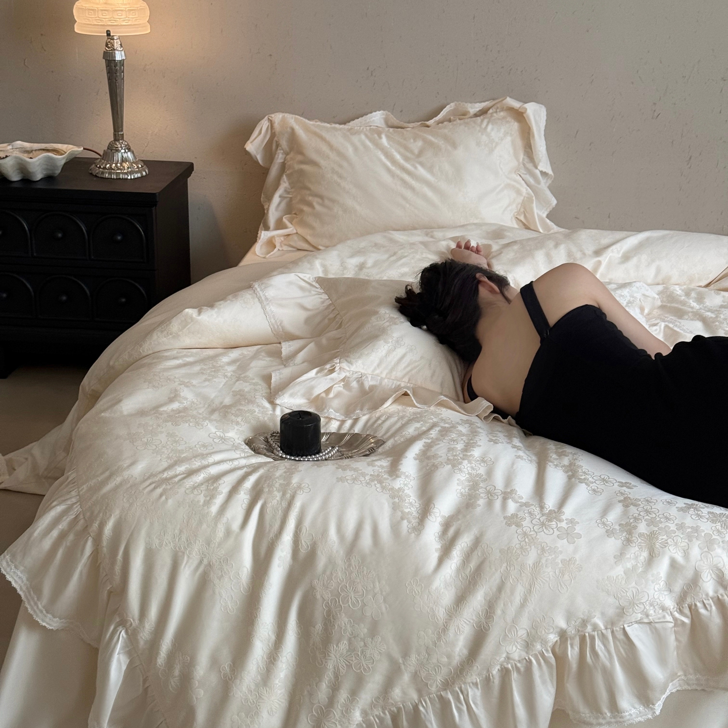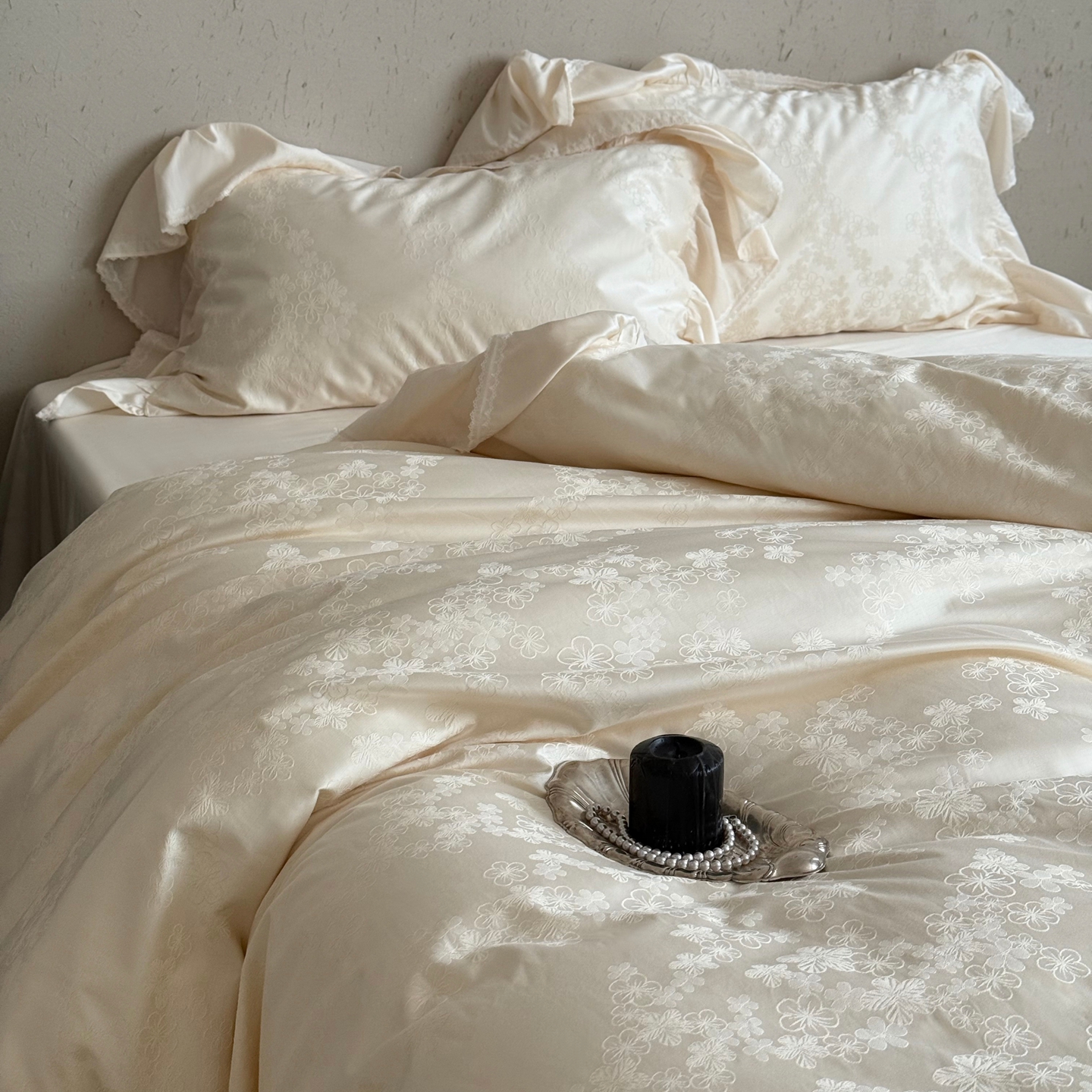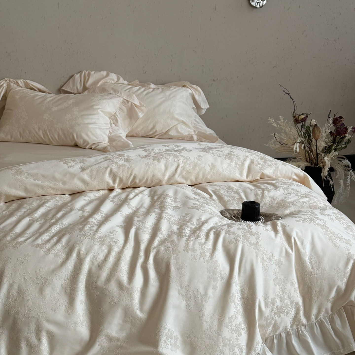 MIU缪家居 2025新款100支全棉厚织提花四件套-花瓣雨(控价388) 乳白