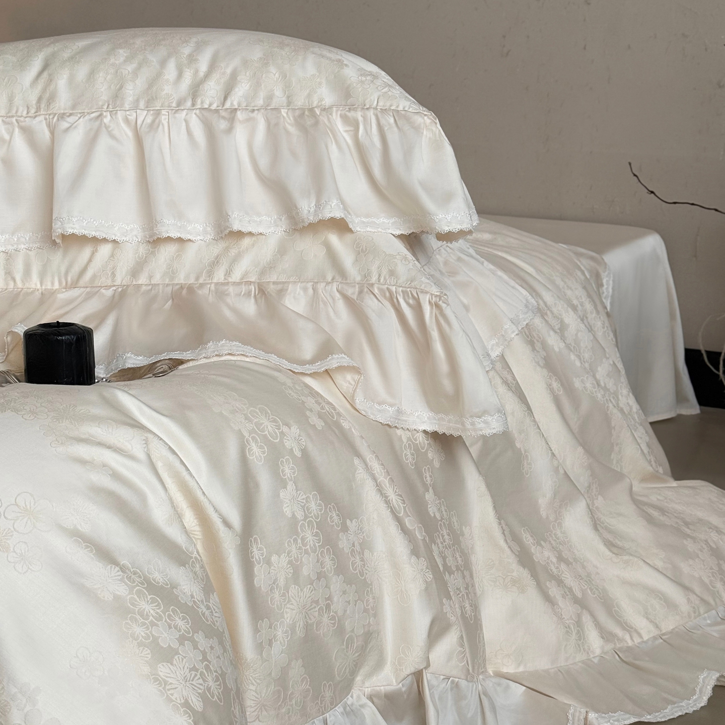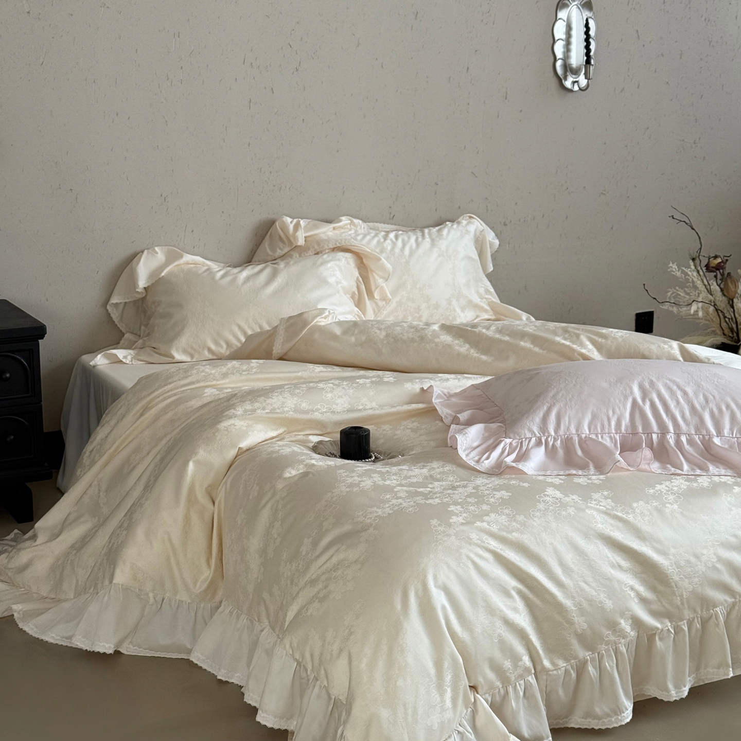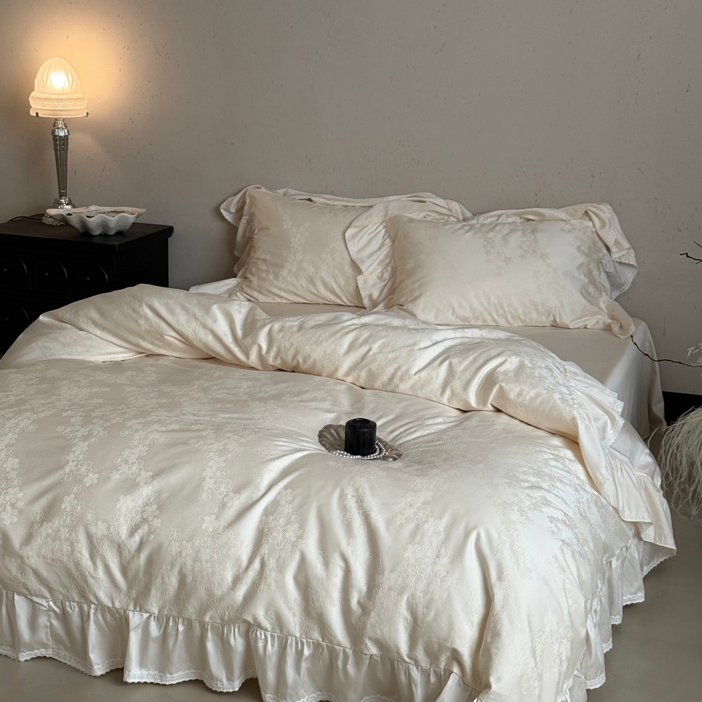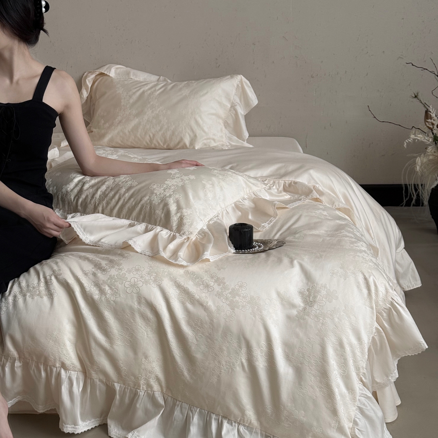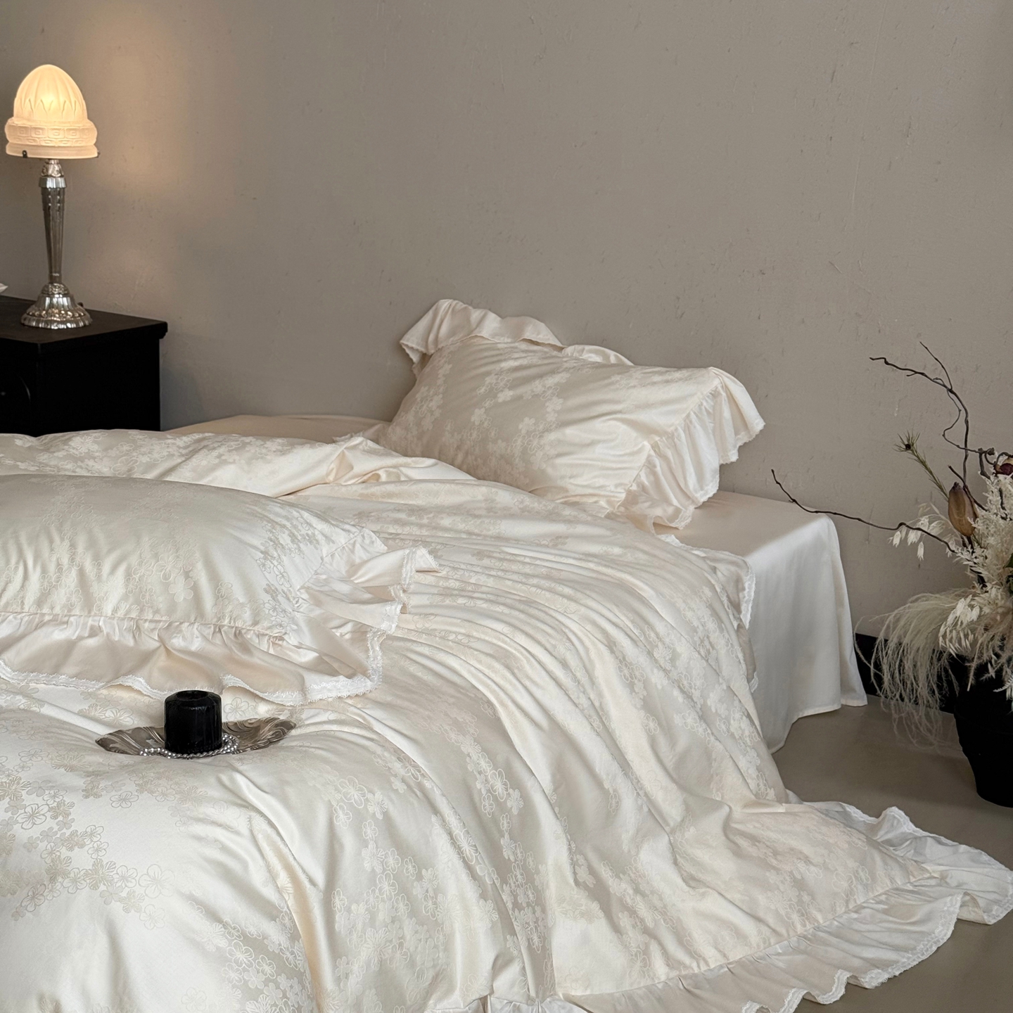 MIU缪家居 2025新款100支全棉厚织提花四件套-花瓣雨(控价388) 乳白