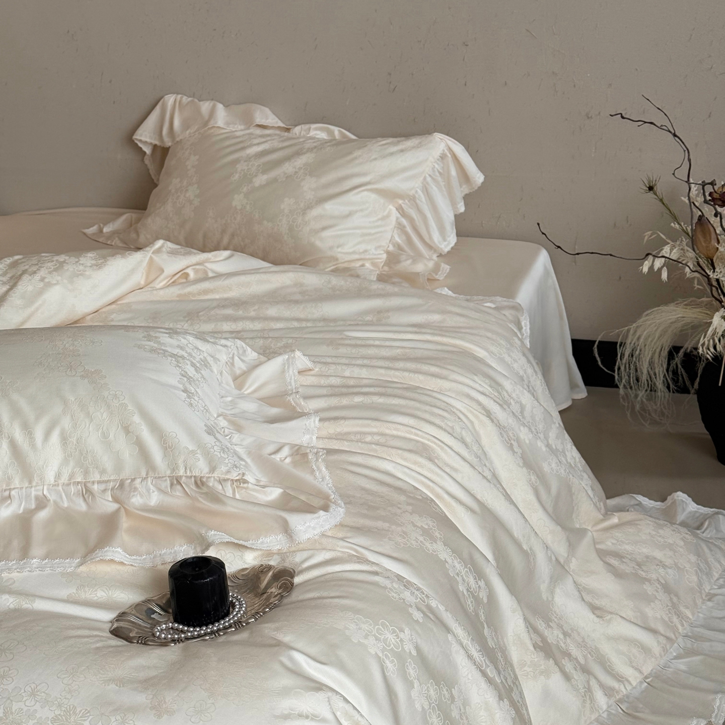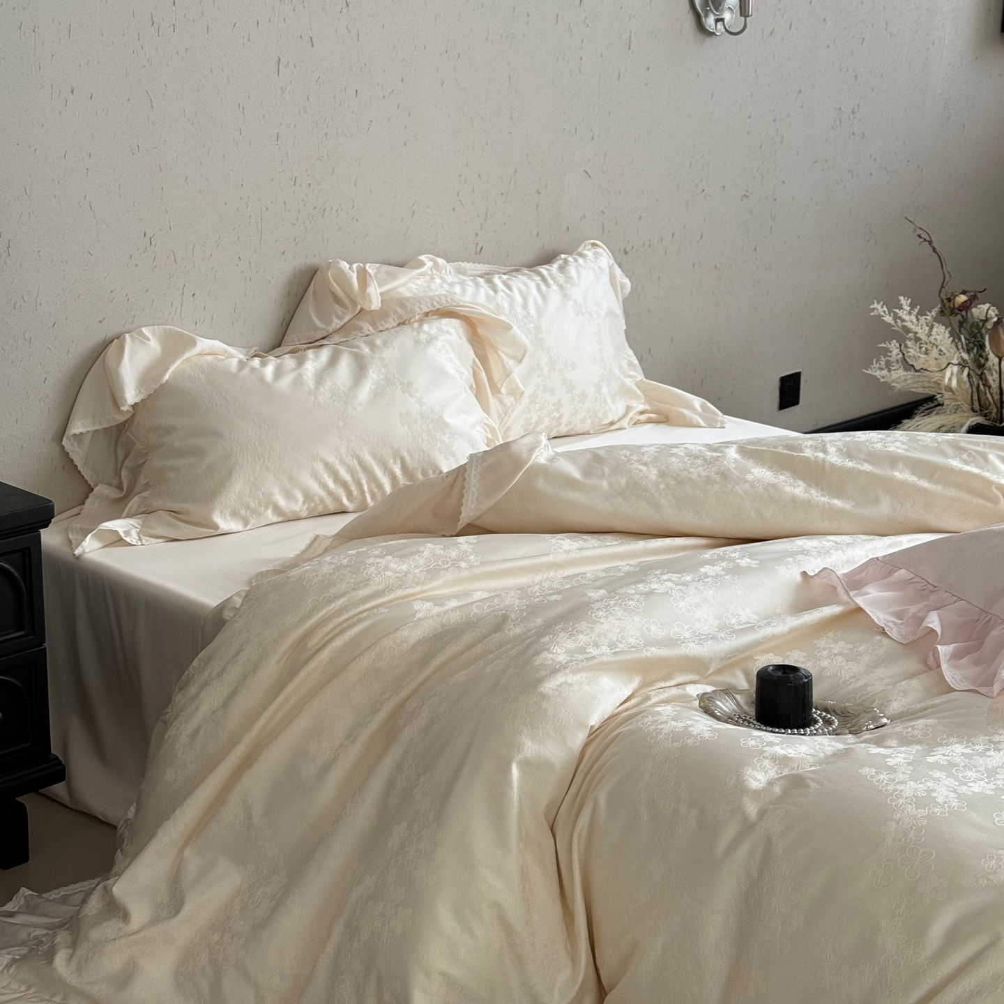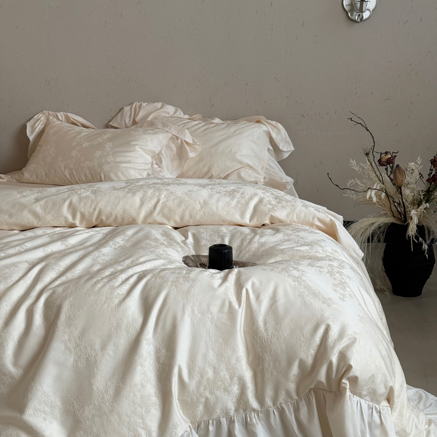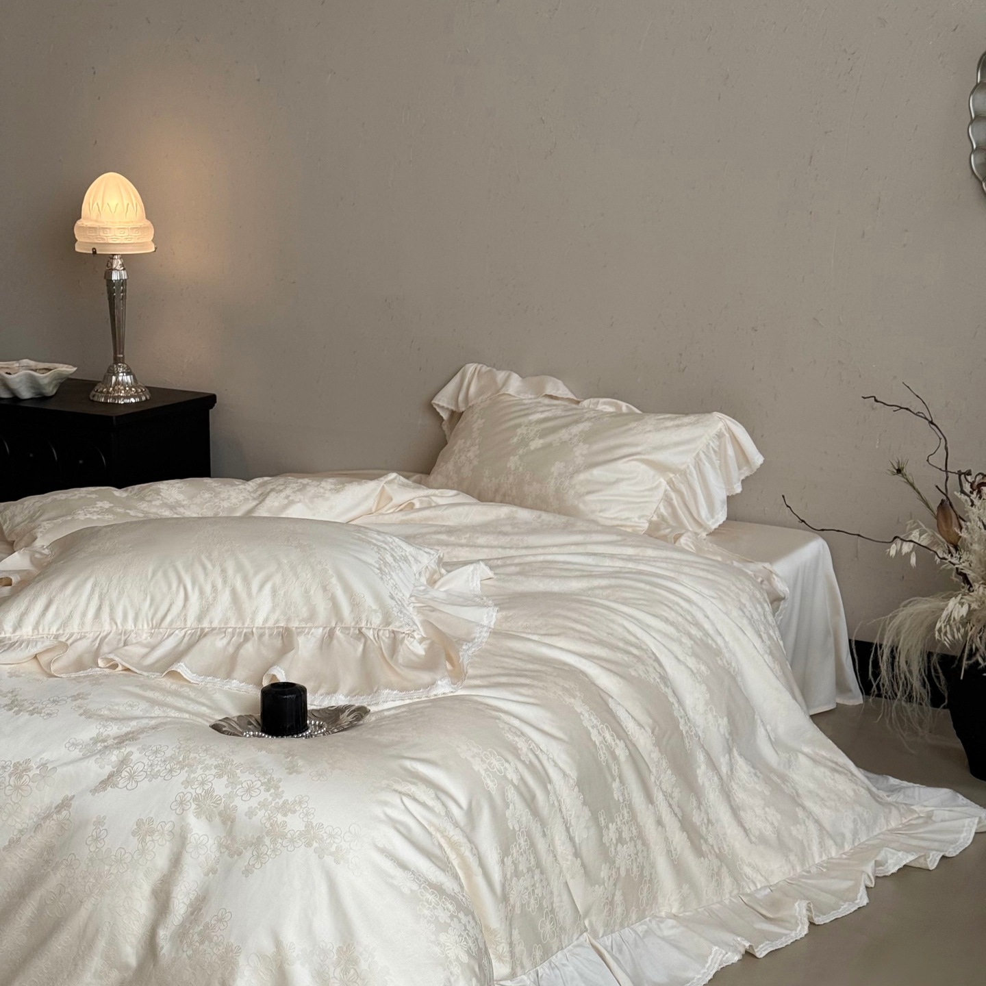 MIU缪家居 2025新款100支全棉厚织提花四件套-花瓣雨(控价388) 乳白