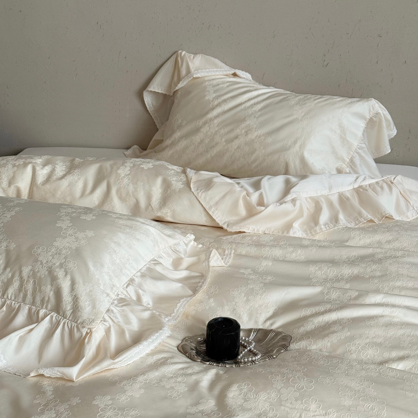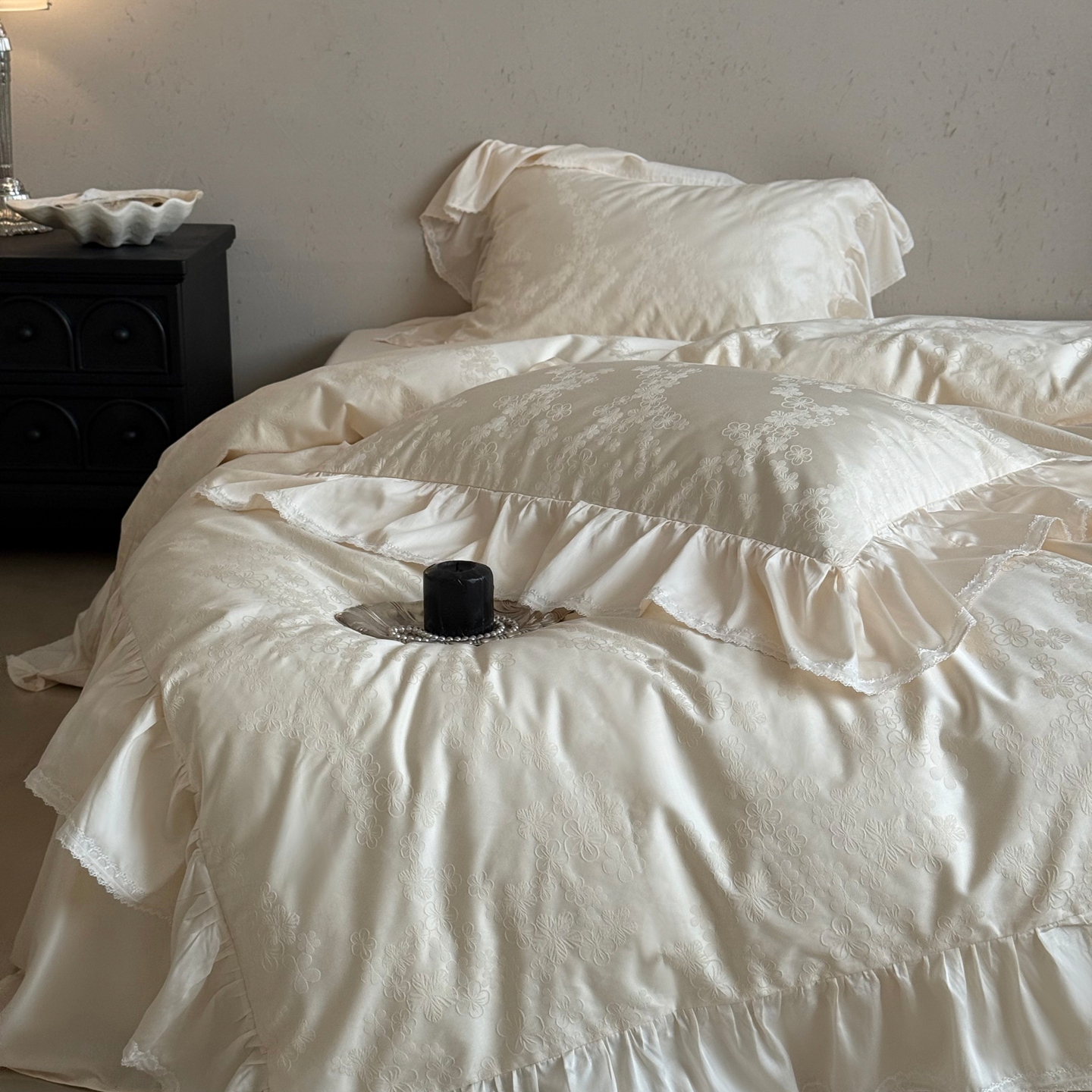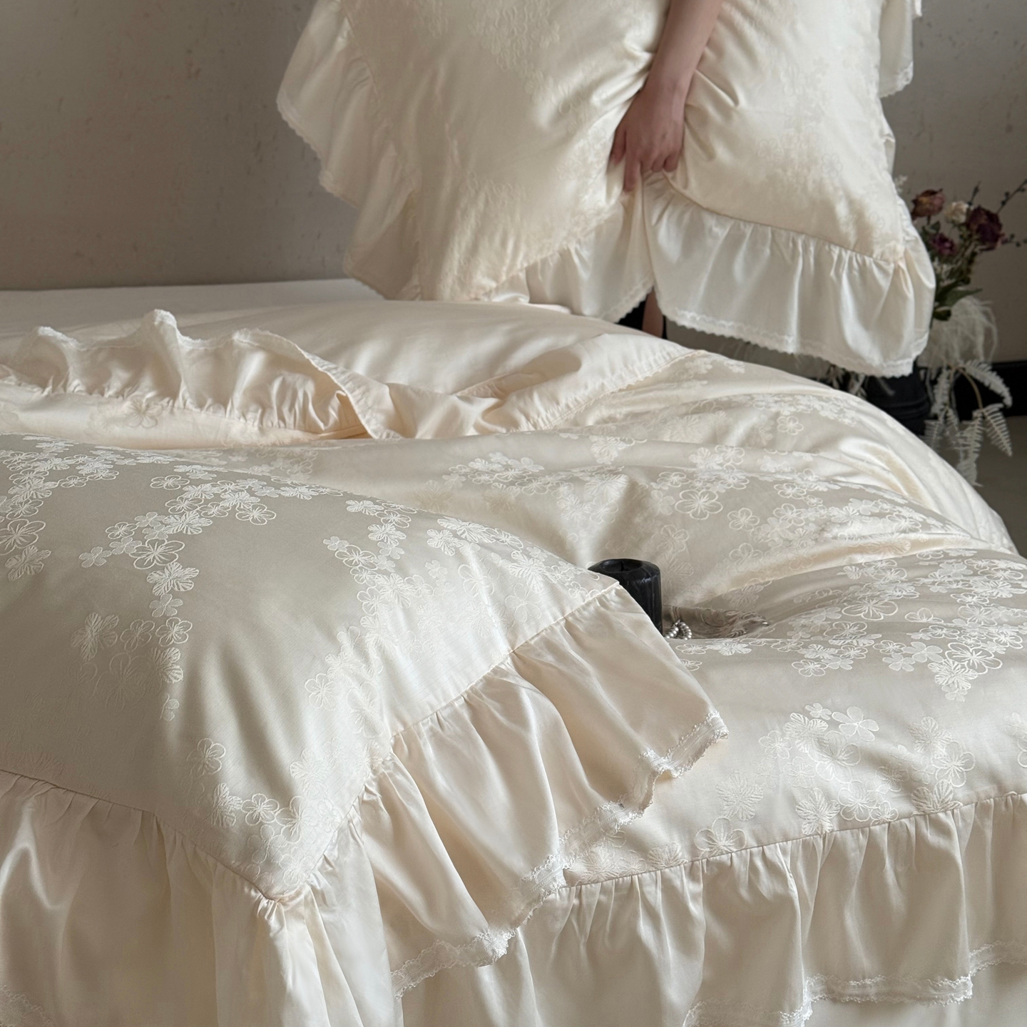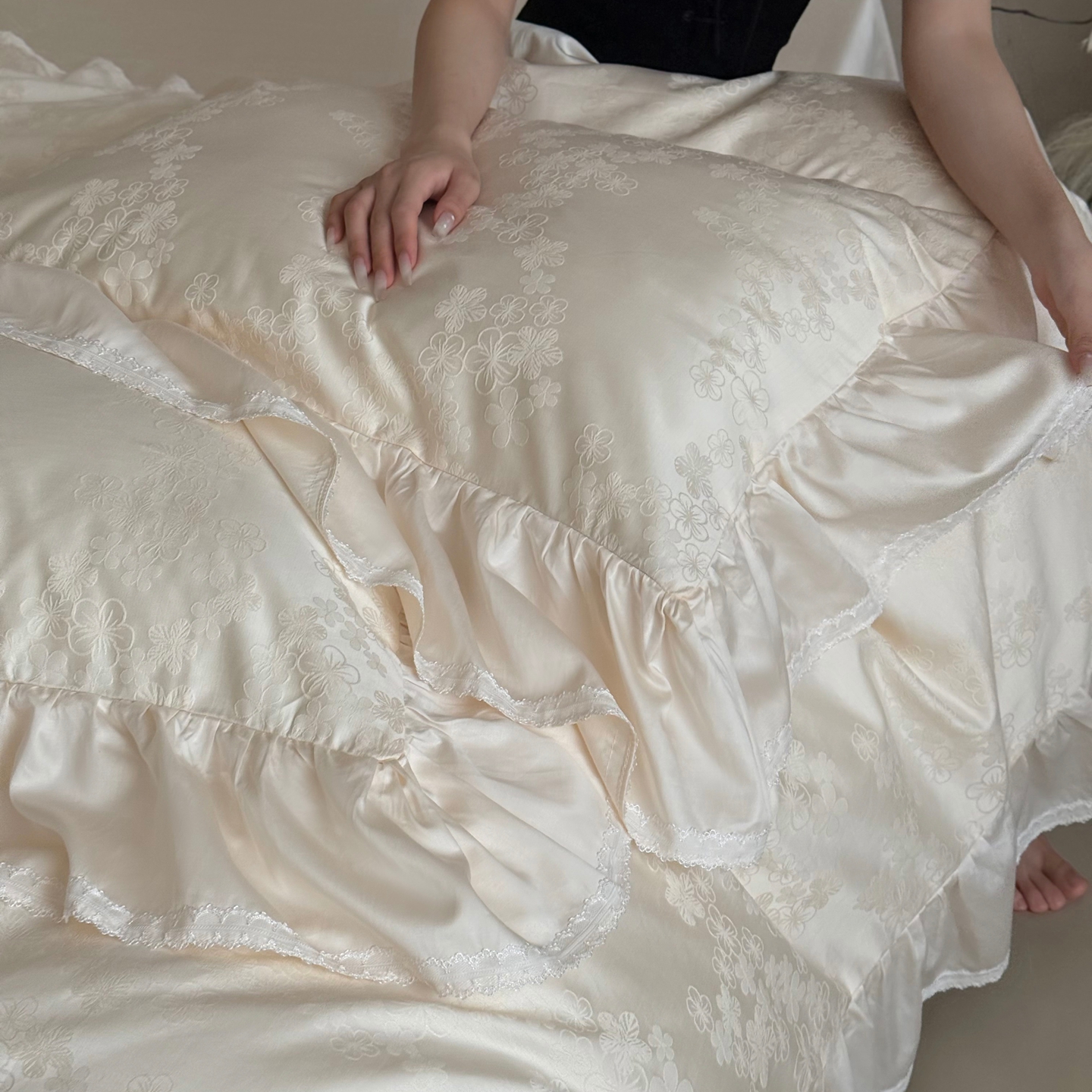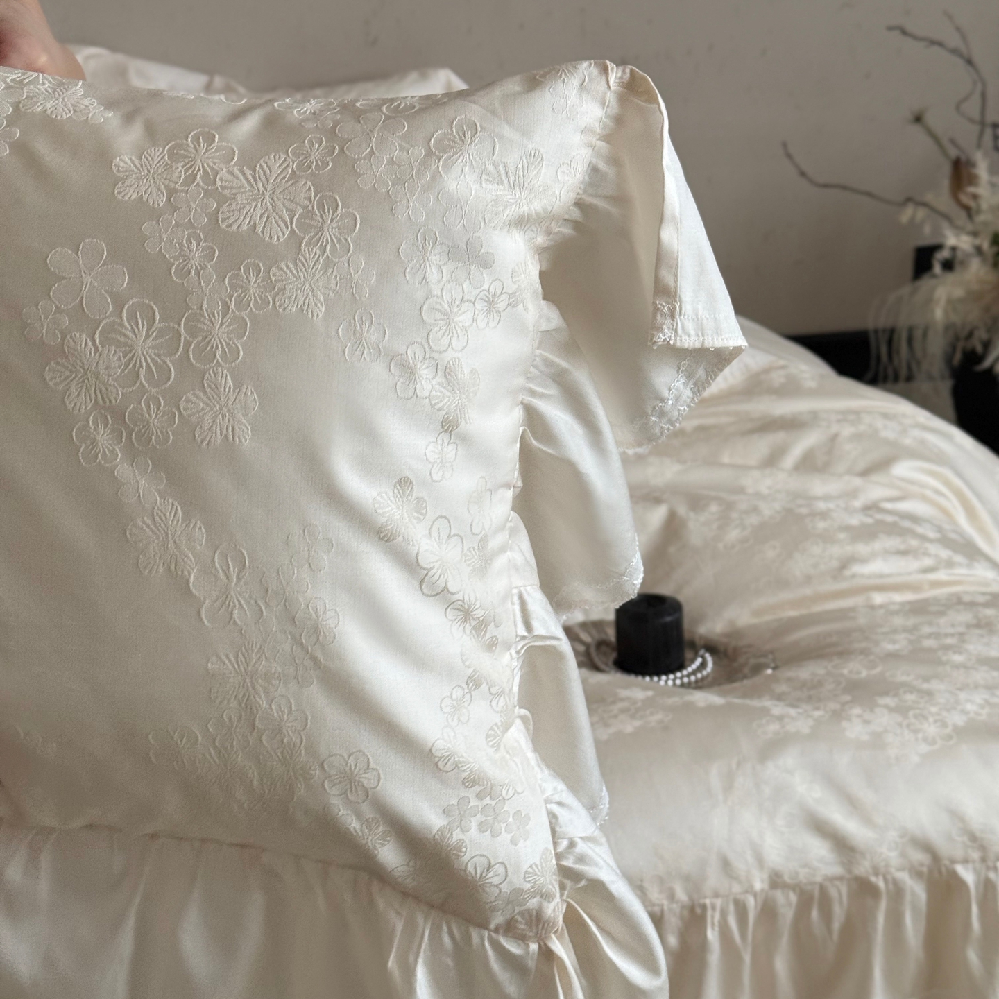 MIU缪家居 2025新款100支全棉厚织提花四件套-花瓣雨(控价388) 乳白