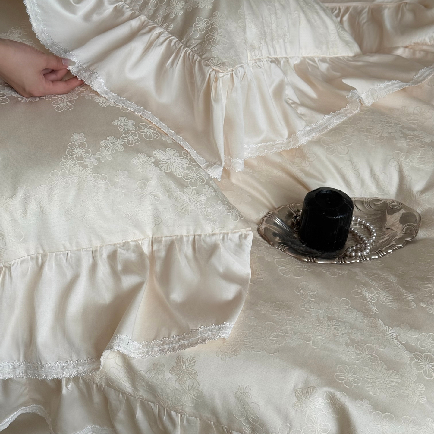 商品名称:MIU缪家居 2025新款100支全棉厚织提花四件套-花瓣雨(控价388) 乳白