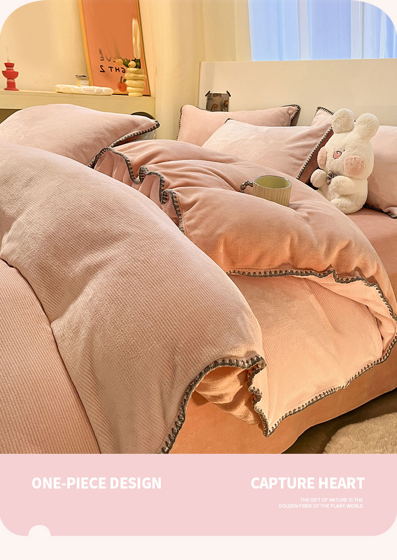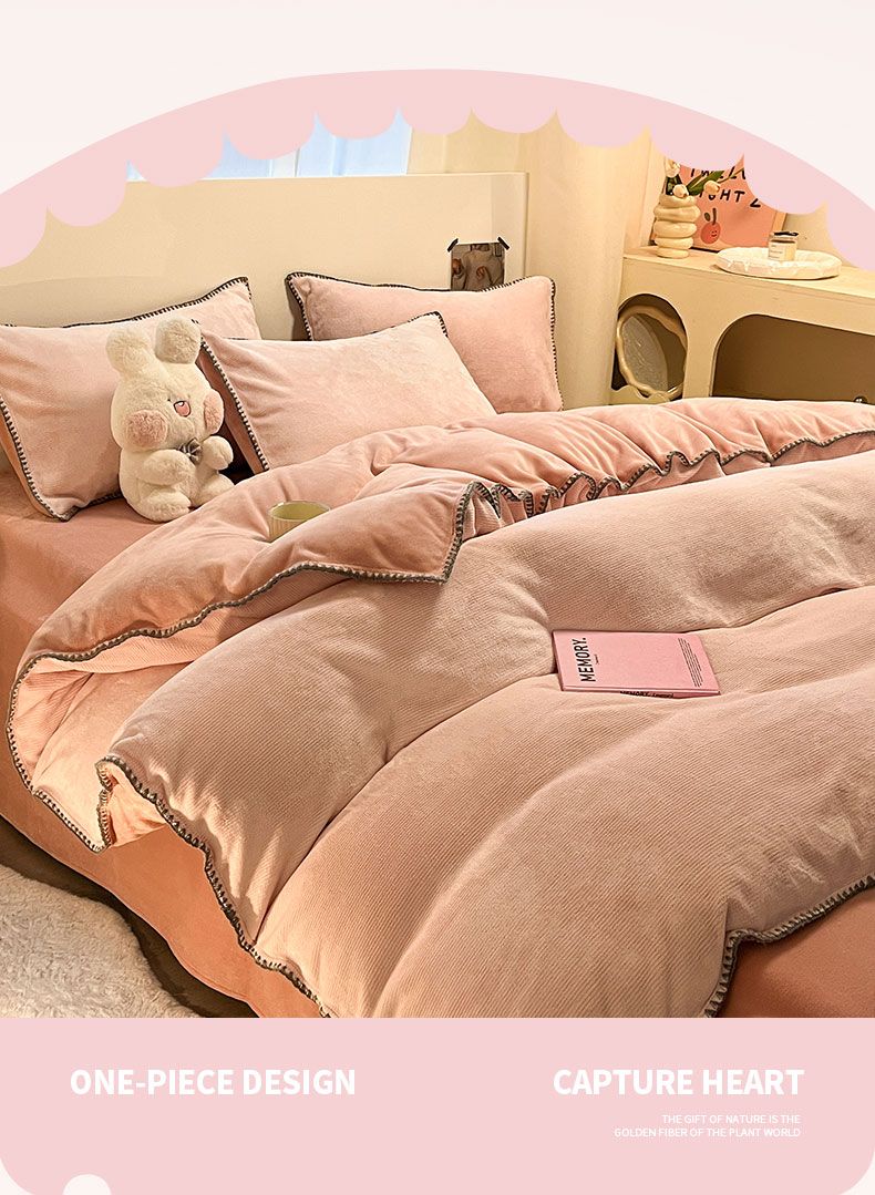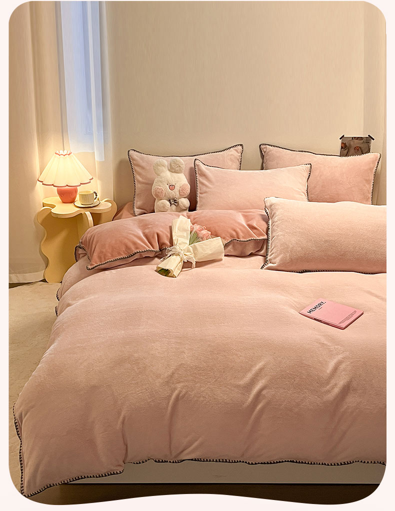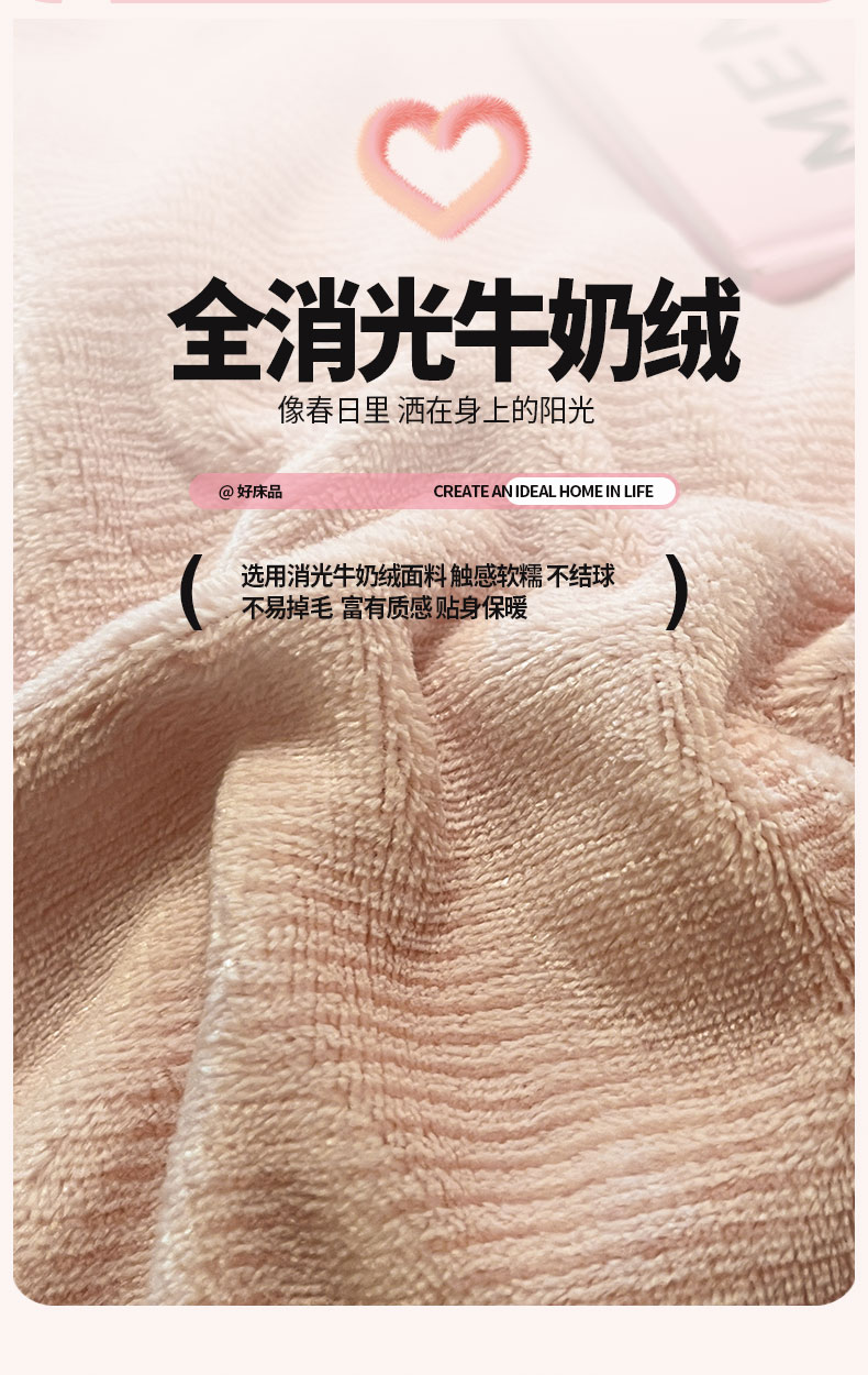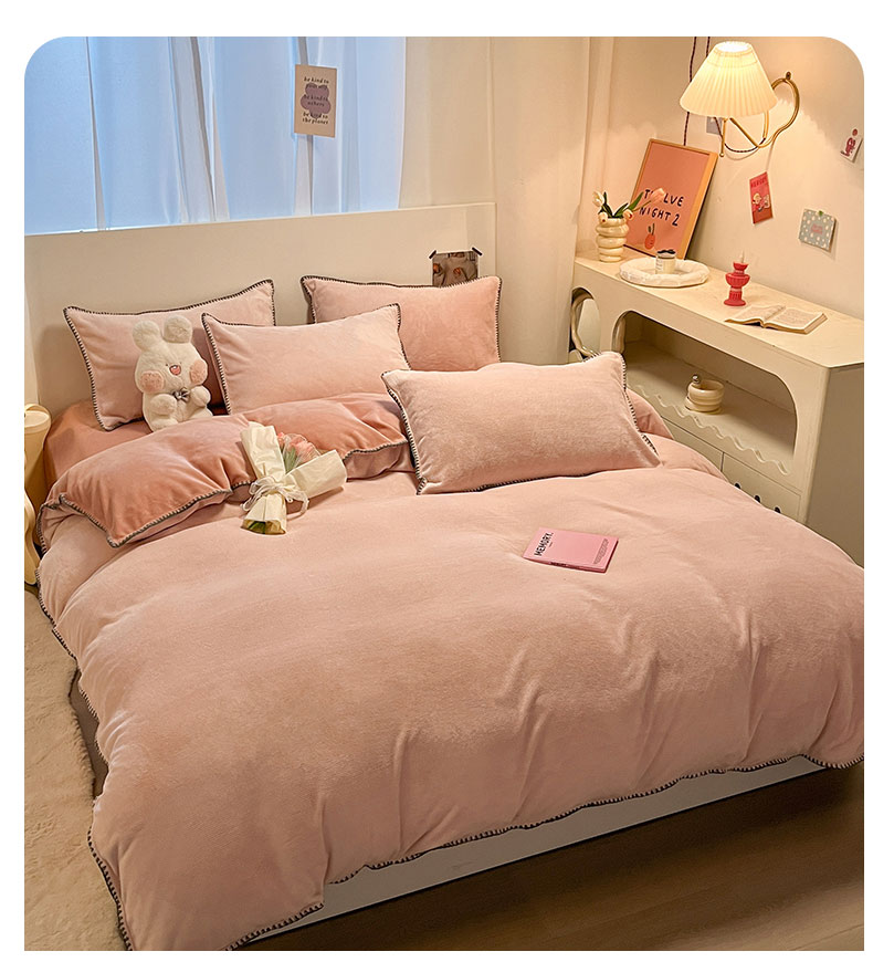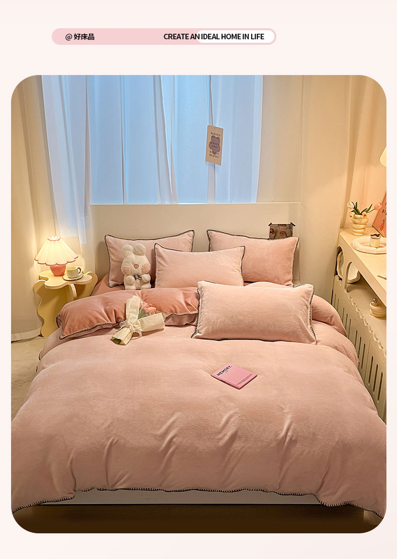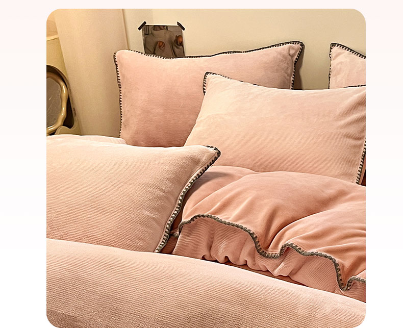 商品名称:ab家纺 2025新款贝壳边消光牛奶绒四件套 浅粉
