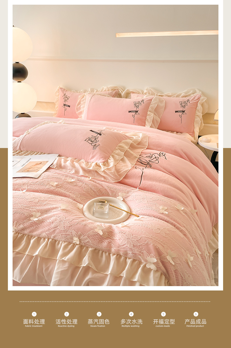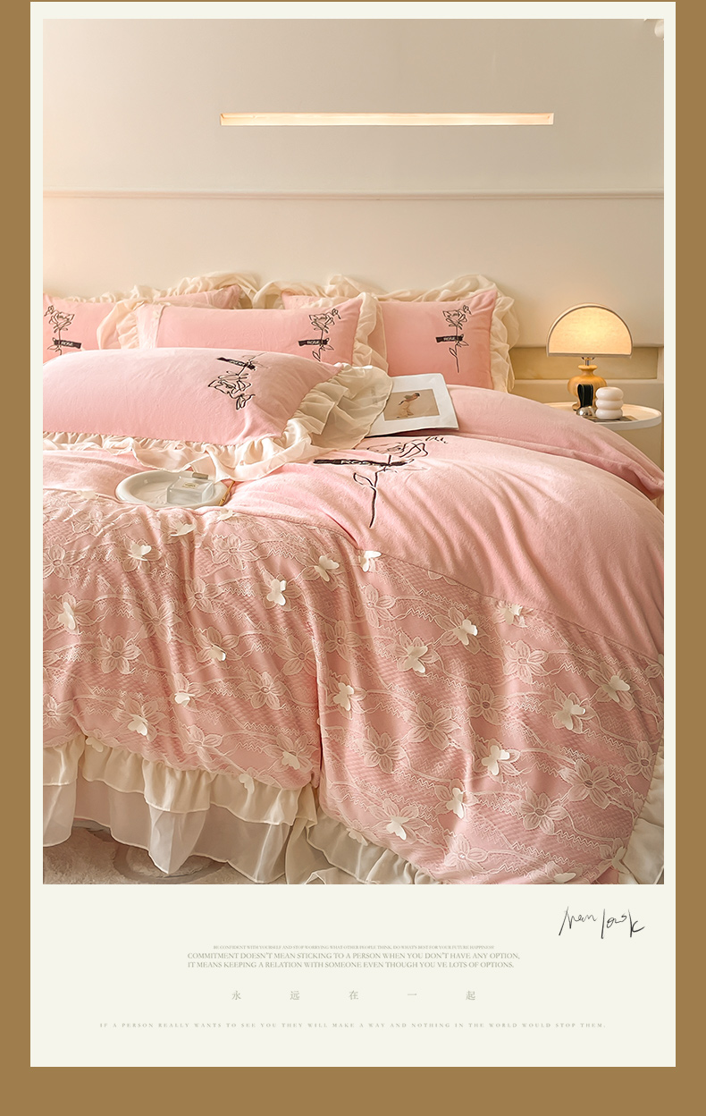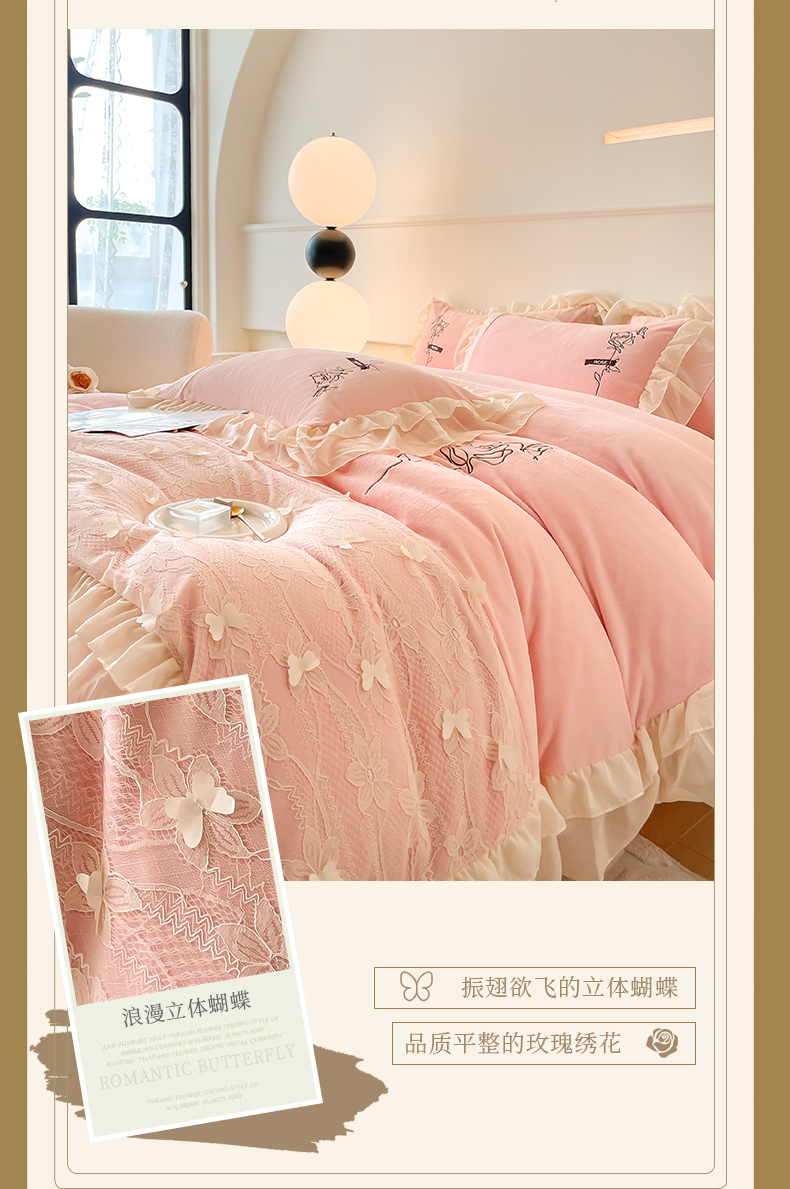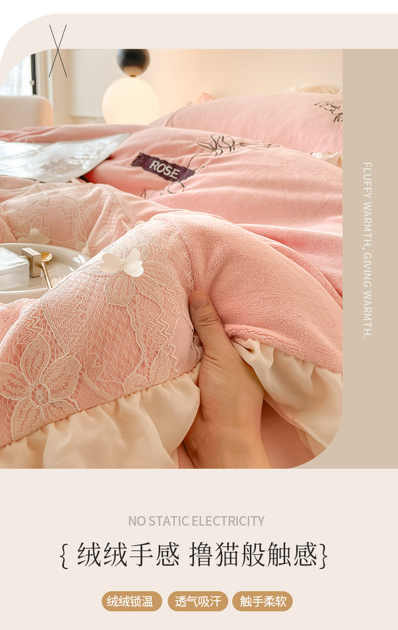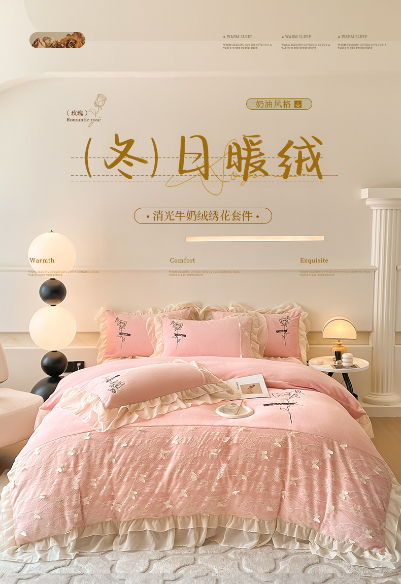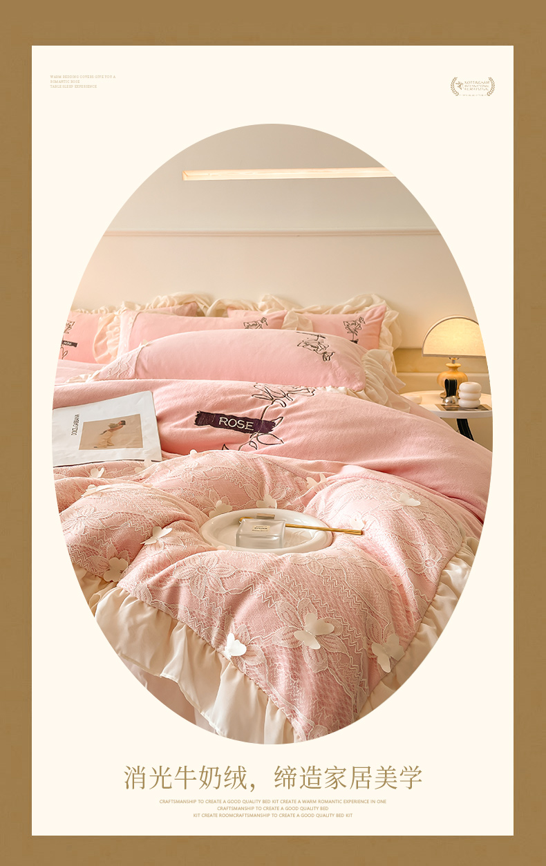 ab家纺 2025新款高克重牛奶绒四件套-初恋 初恋梦幻粉