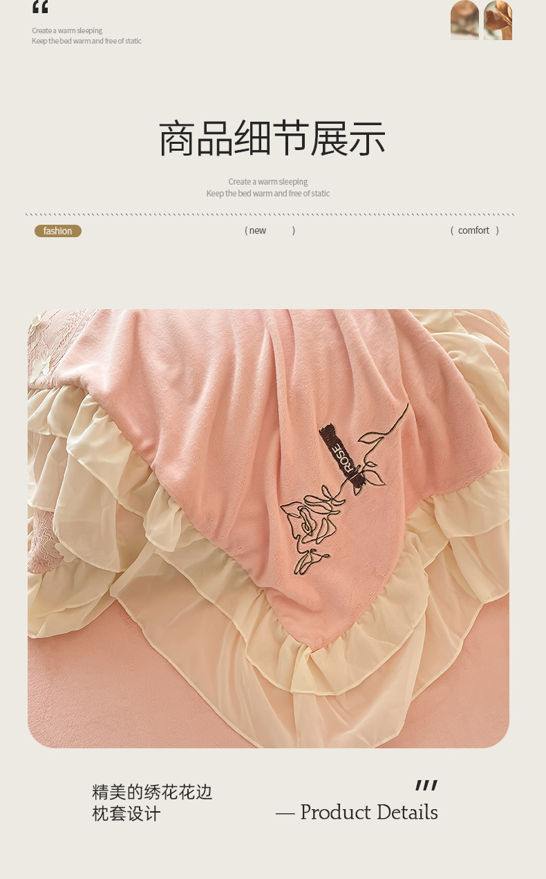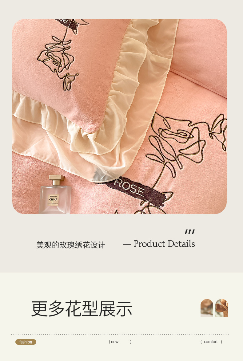 商品名称:ab家纺 2025新款高克重牛奶绒四件套-初恋 初恋梦幻粉