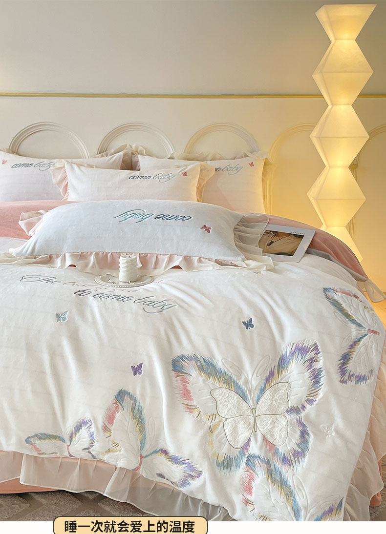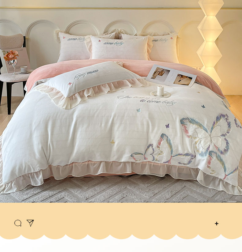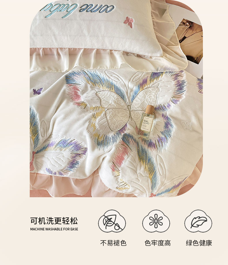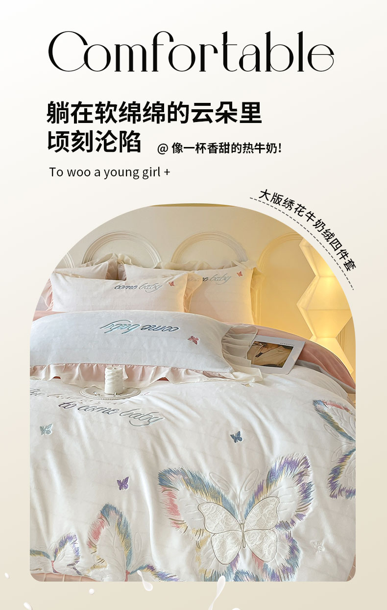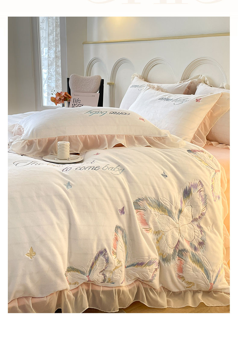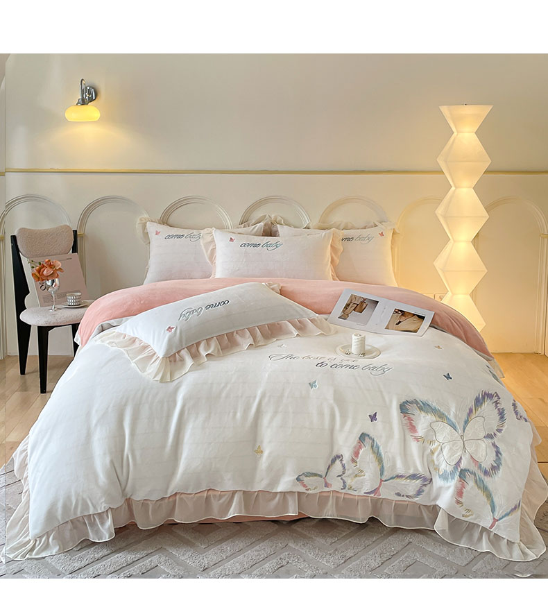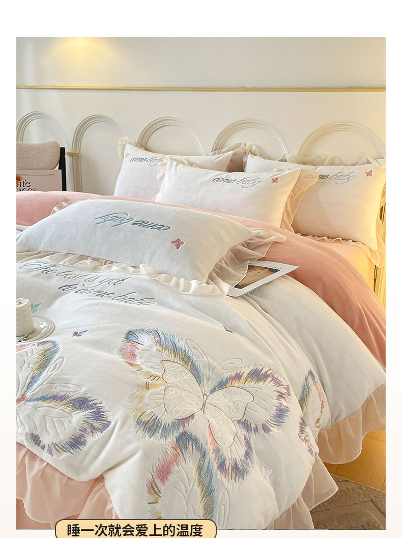当前位置: 91家纺网 > 商品网购 > 床品套件 > 四件套 > 牛奶绒四件套 > ab家纺 2025新款厚实保暖牛奶绒四件套-碟鸢 碟鸢-白粉