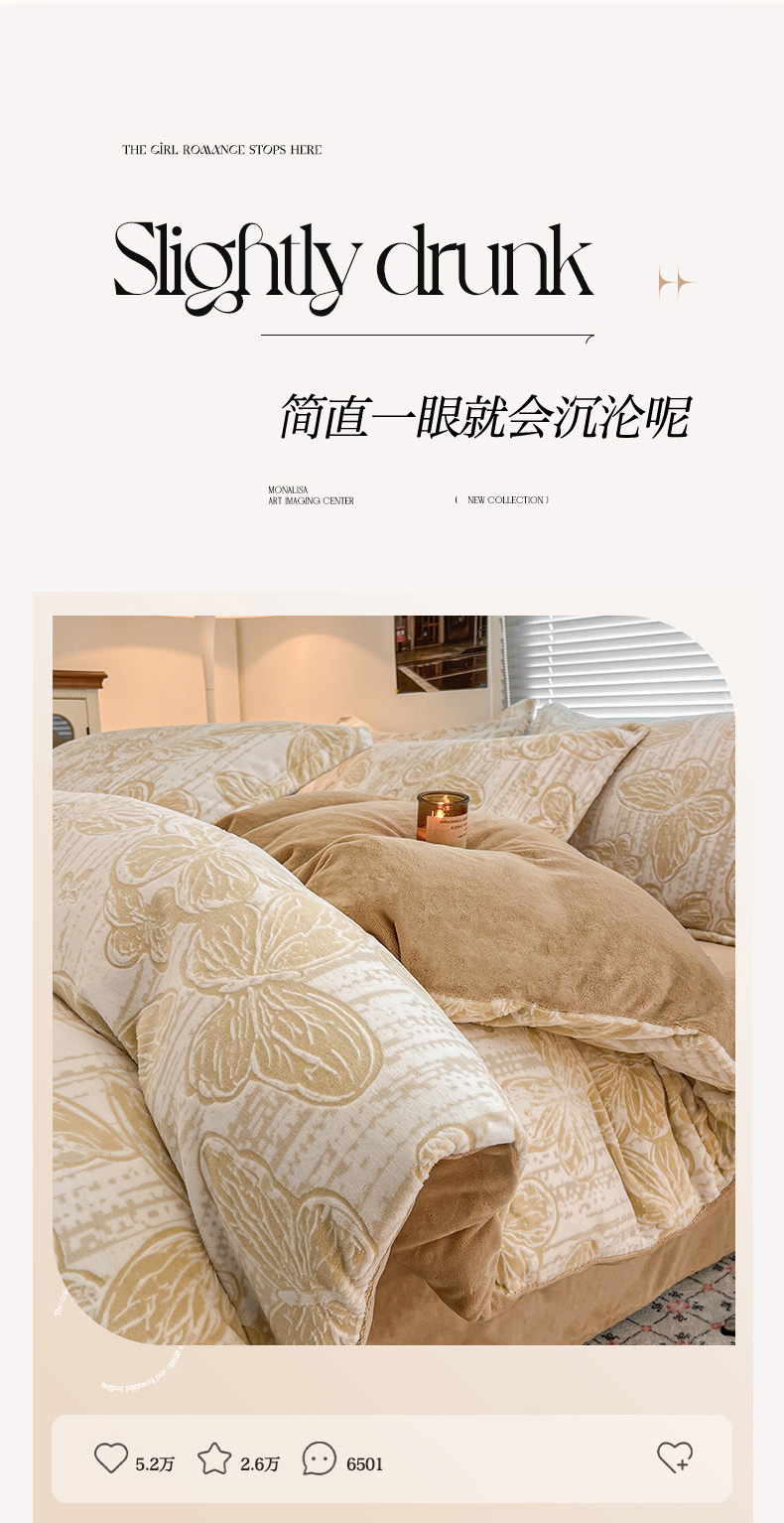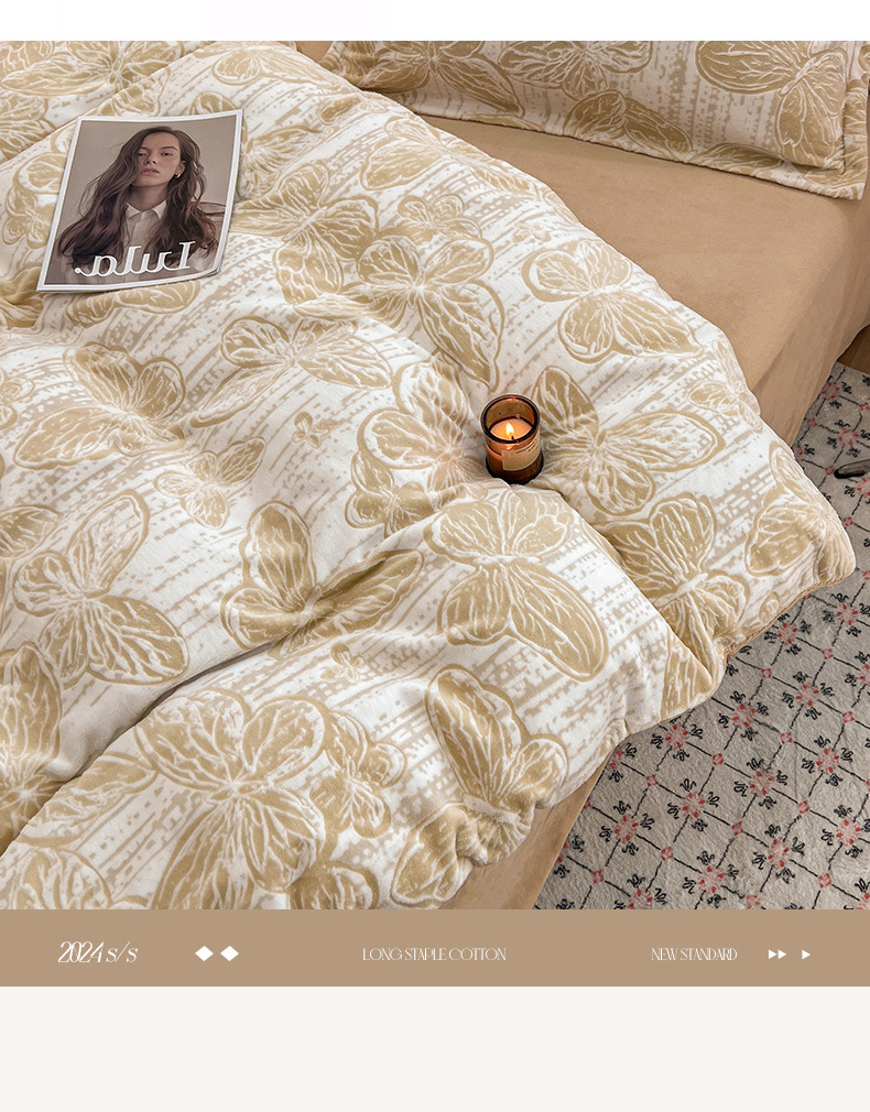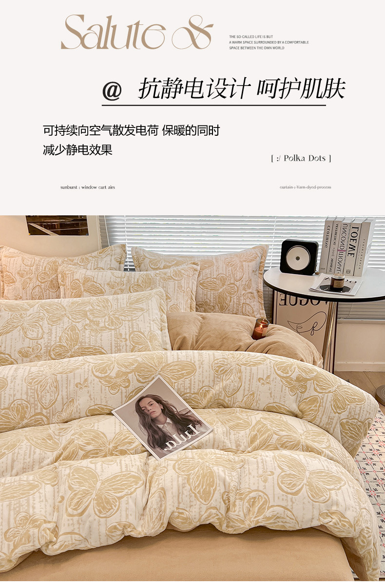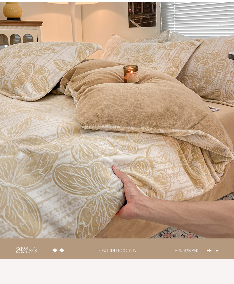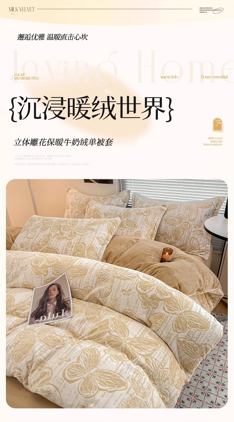 倾慕家纺 2026新款舒适保暖立体浮雕绒系列单被套 蝴蝶流苏米