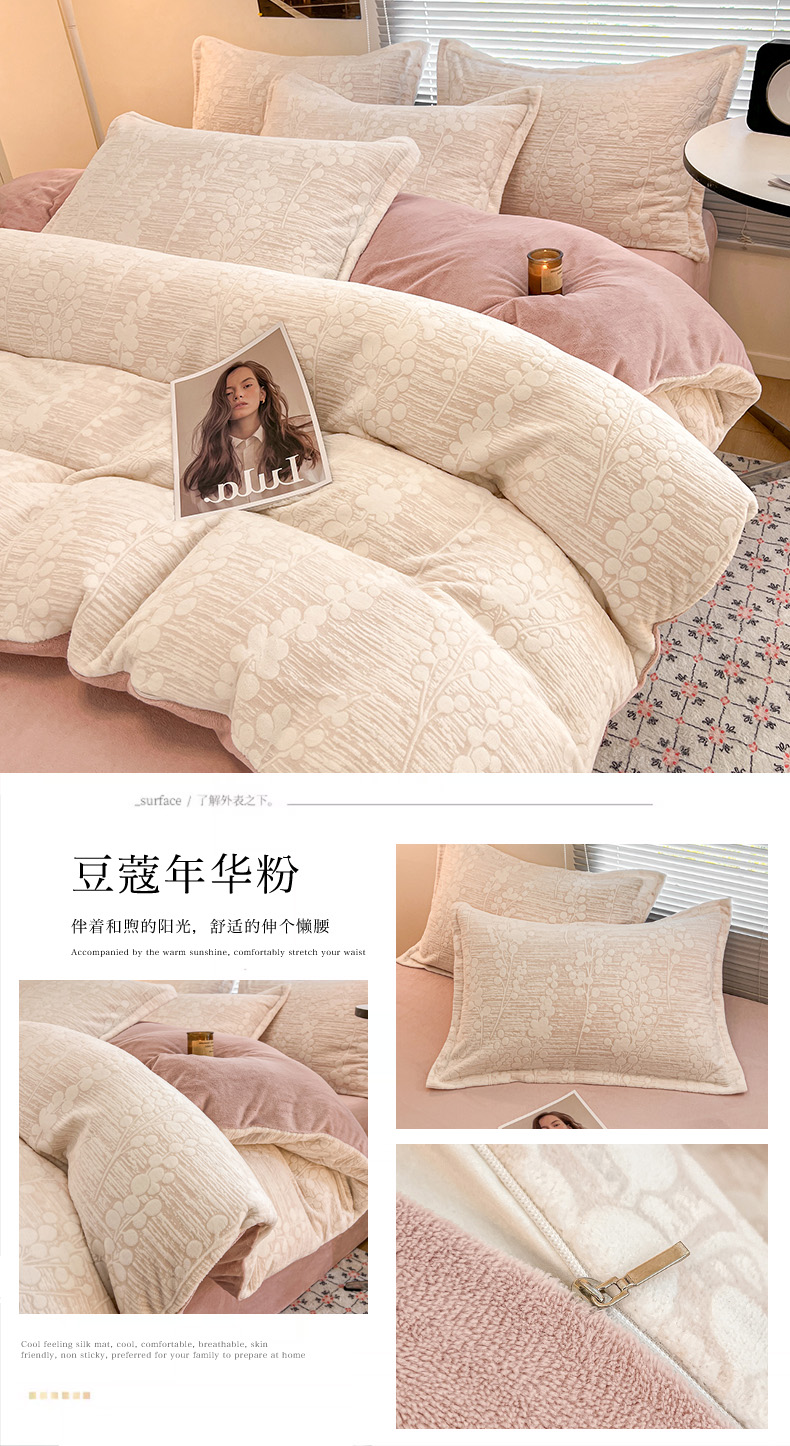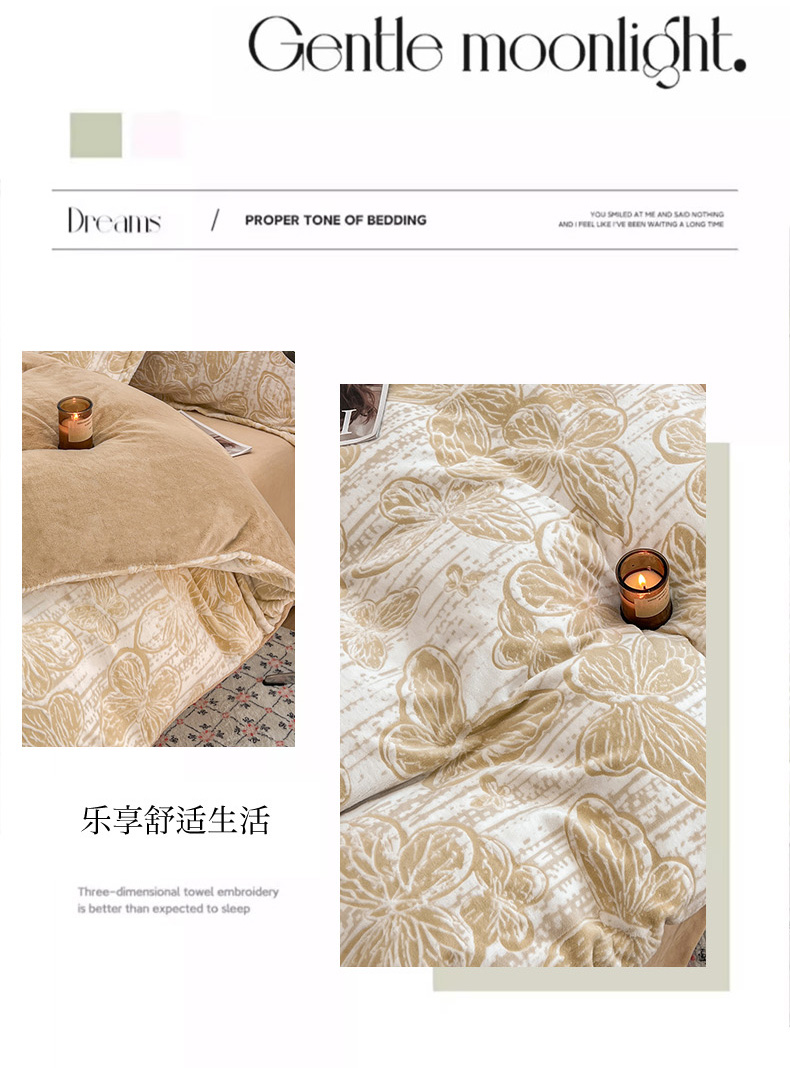 商品名称:倾慕家纺 2026新款舒适保暖立体浮雕绒系列单被套 蝴蝶流苏米