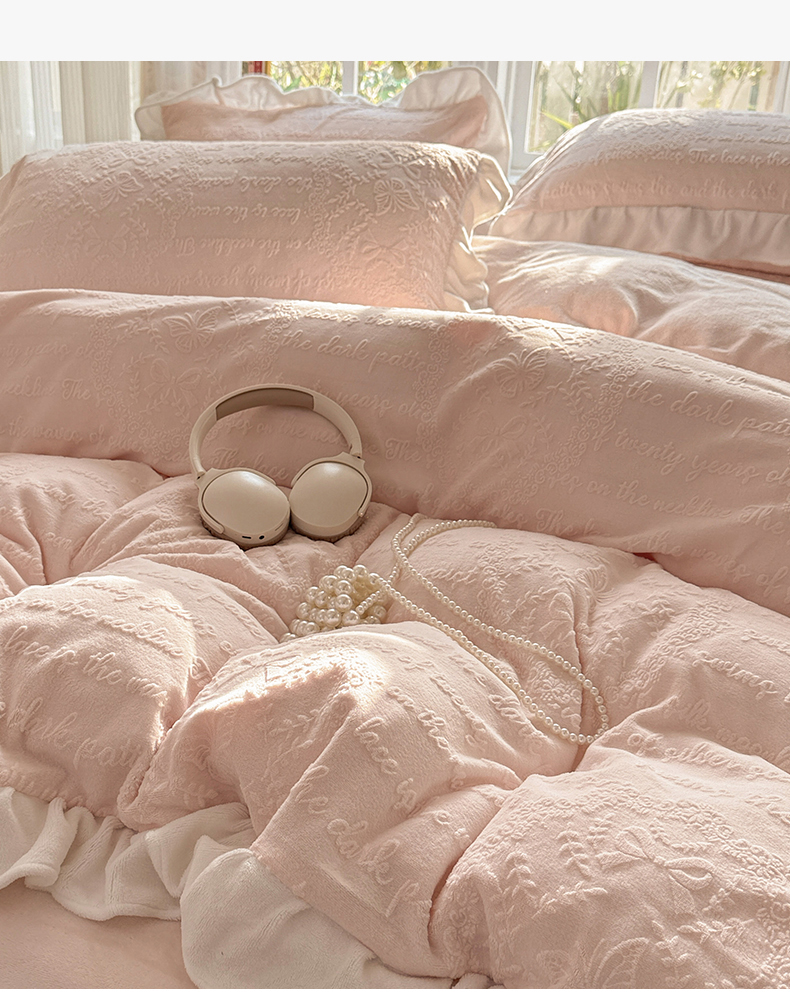 当前位置: 91家纺网 > 商品网购 > 床品套件 > 四件套 > 牛奶绒四件套 > 耀悦家纺 2025新款A类全消光牛奶绒花边款四件套少女心三件套-浪漫法式 半亩花田-粉-花边款