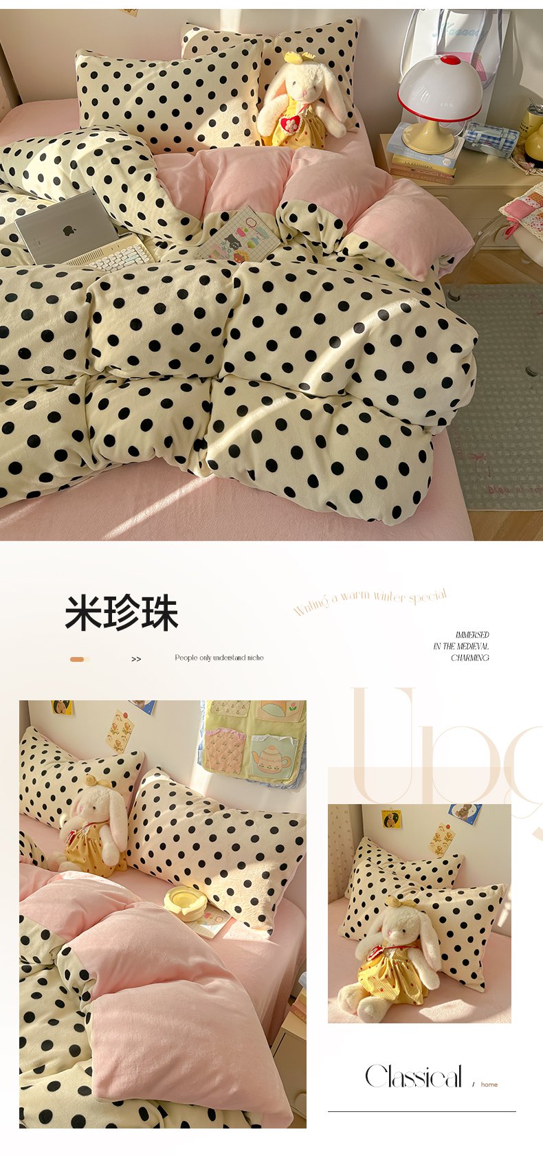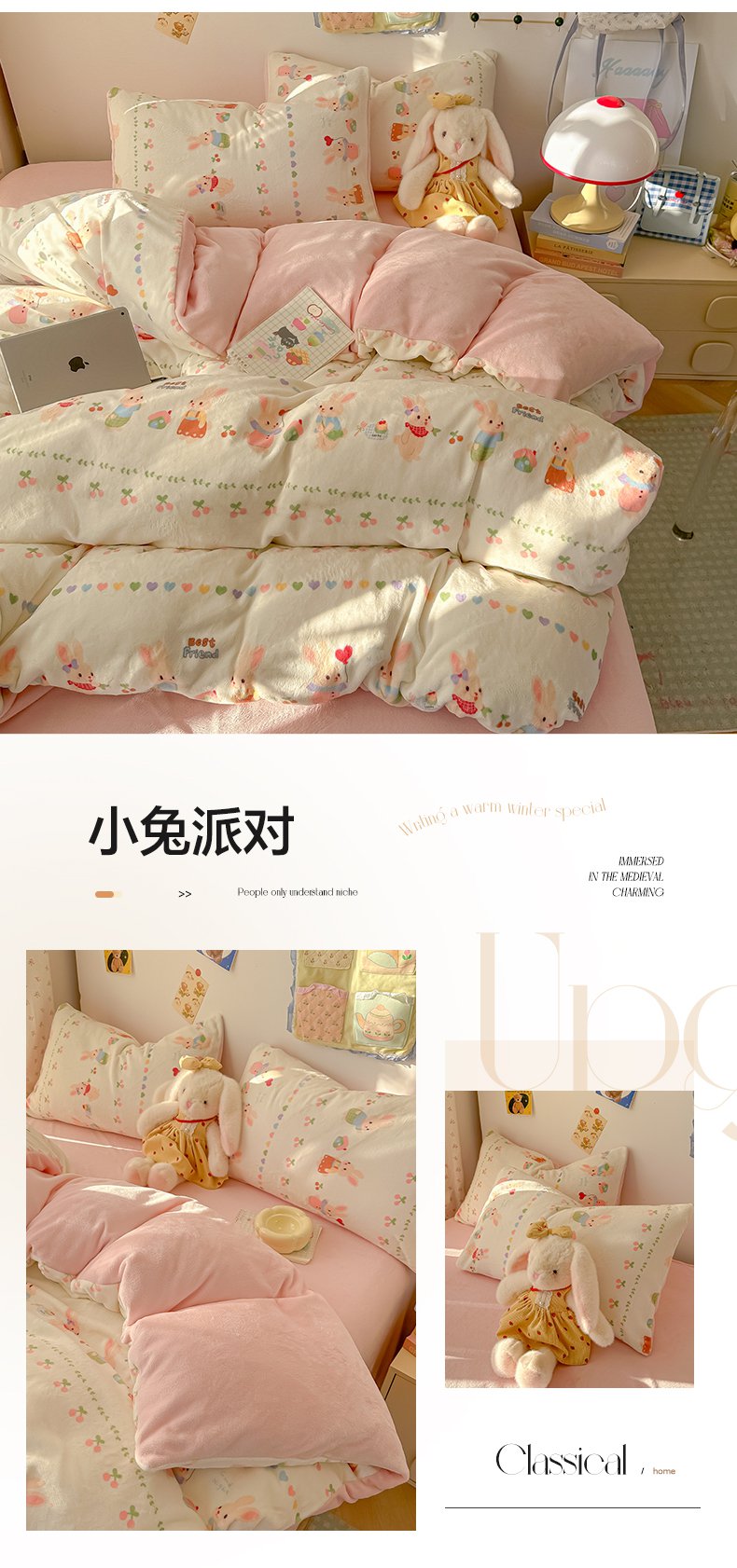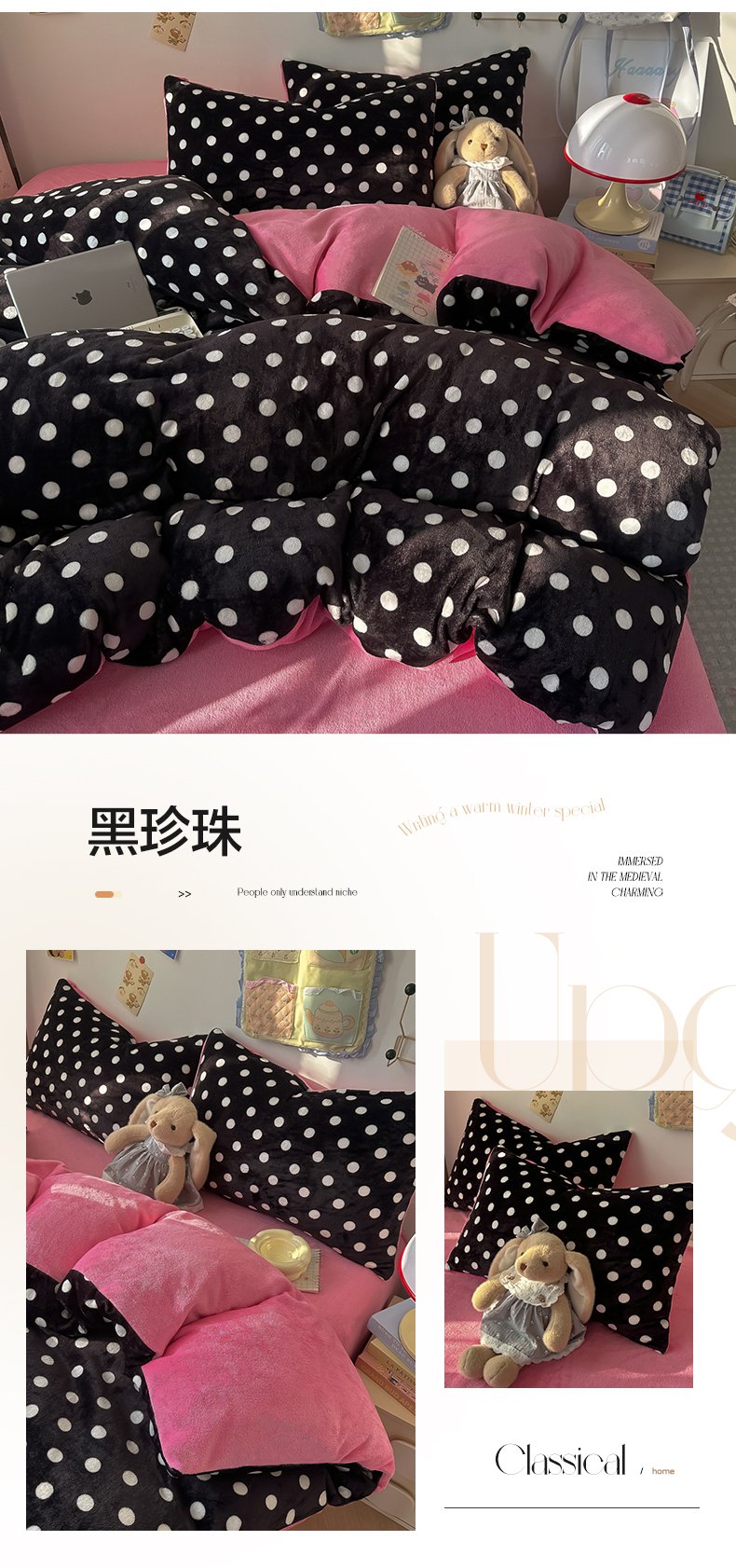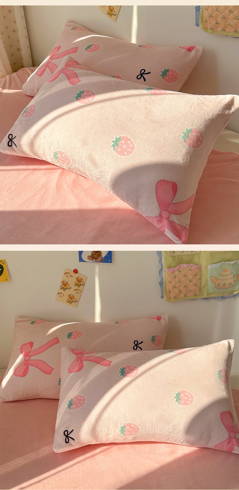 商品名称:韩巢家纺 2025新款双面高克重牛奶绒被套单件被罩 草莓牛奶
