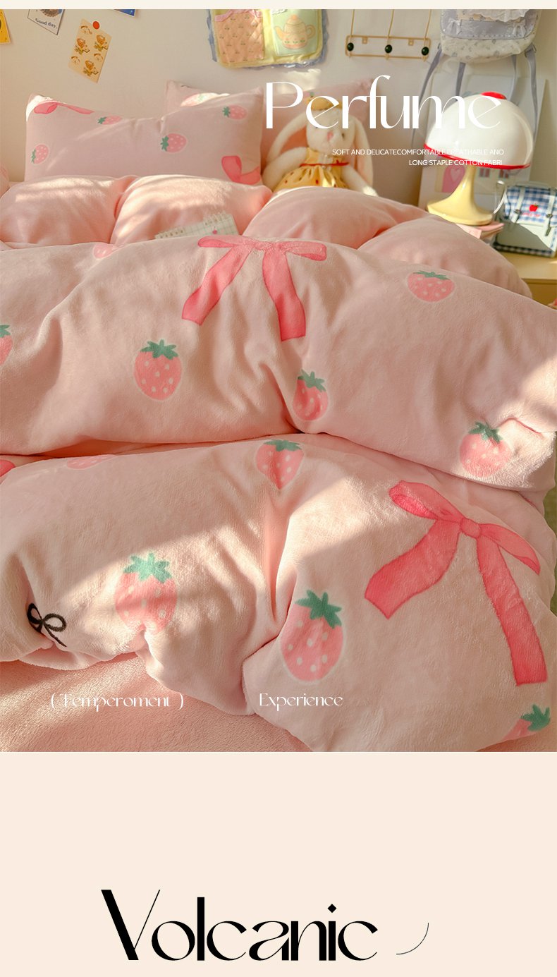 韩巢家纺 2025新款双面高克重牛奶绒被套单件被罩 草莓牛奶
