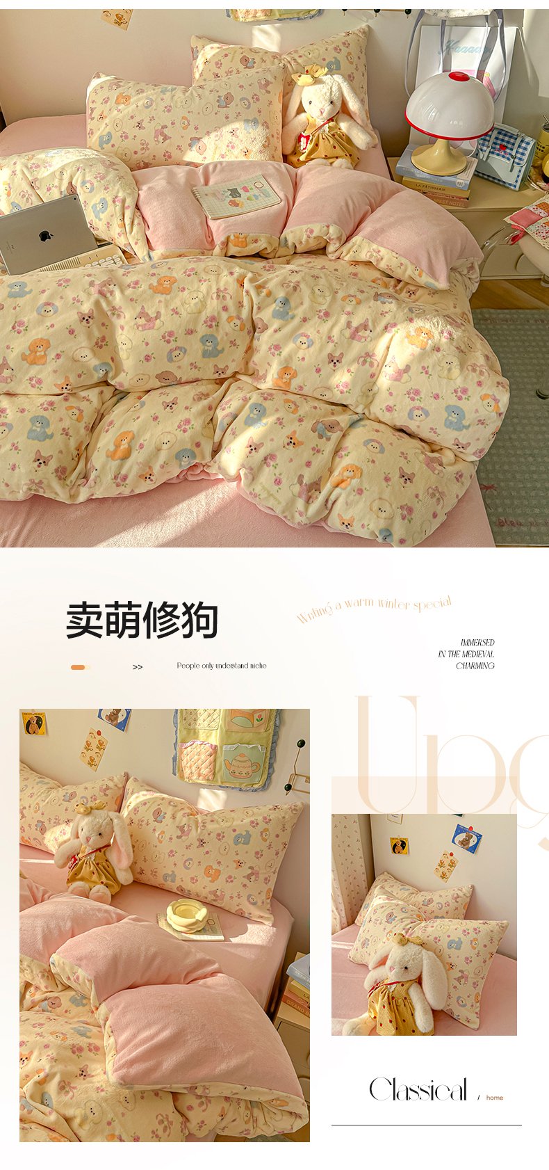 (总)韩巢家纺 2026新款泡芙纱四件套,蓝领结狗,蝶栖柔花,躲猫猫,格格心,灰樱桃,咖啡小猫,猫咪集-粉,朦胧粉心,魔法星星,木马小花团,浅川纹,柔紫碎花屿,四季狗,甜喵块块,甜品萌狗,甜心木马卷,摇摇木马,悦悦小兔