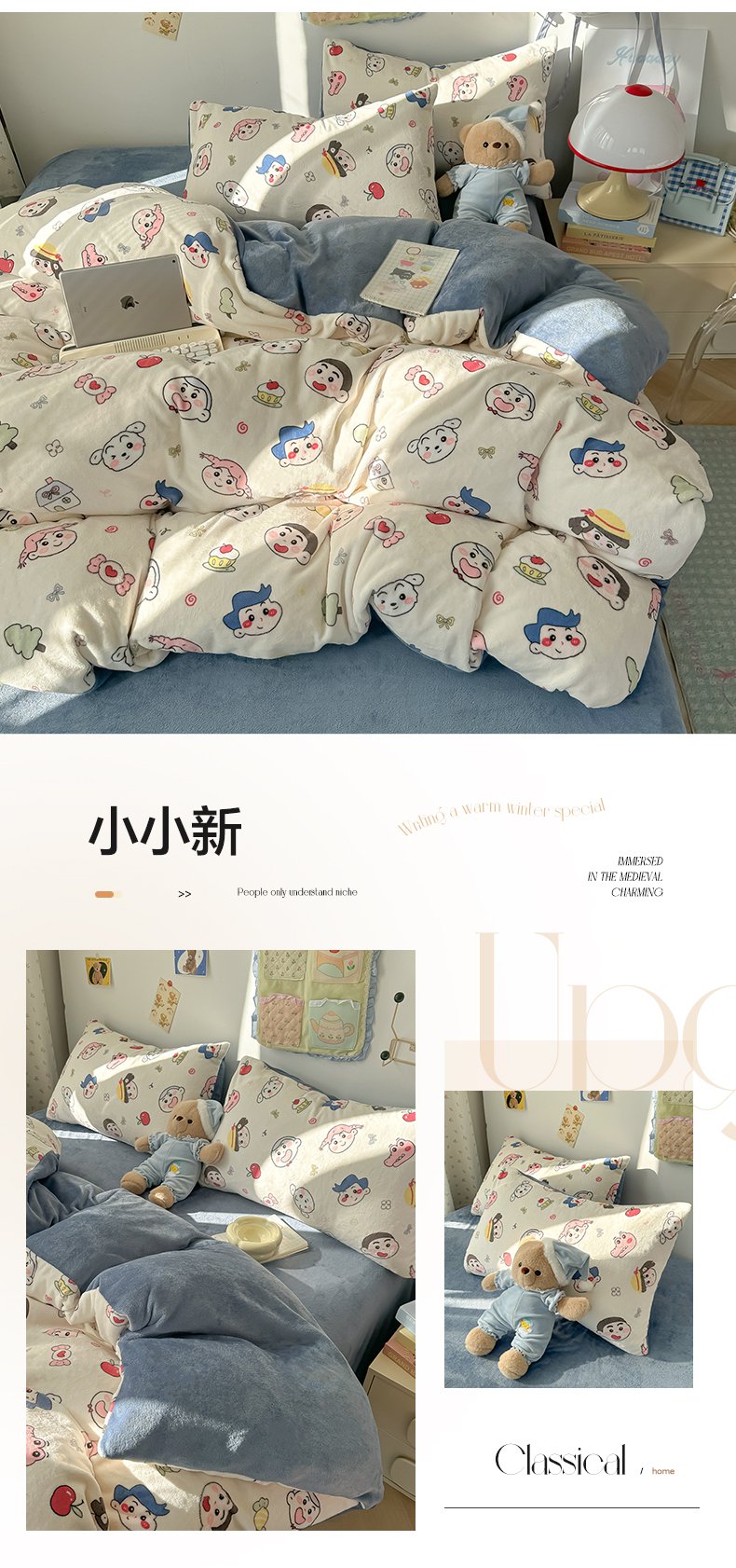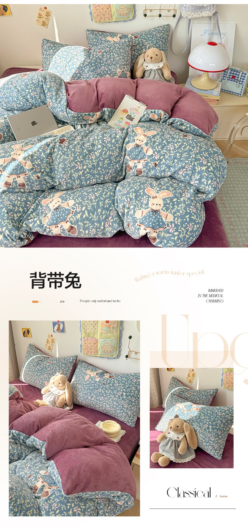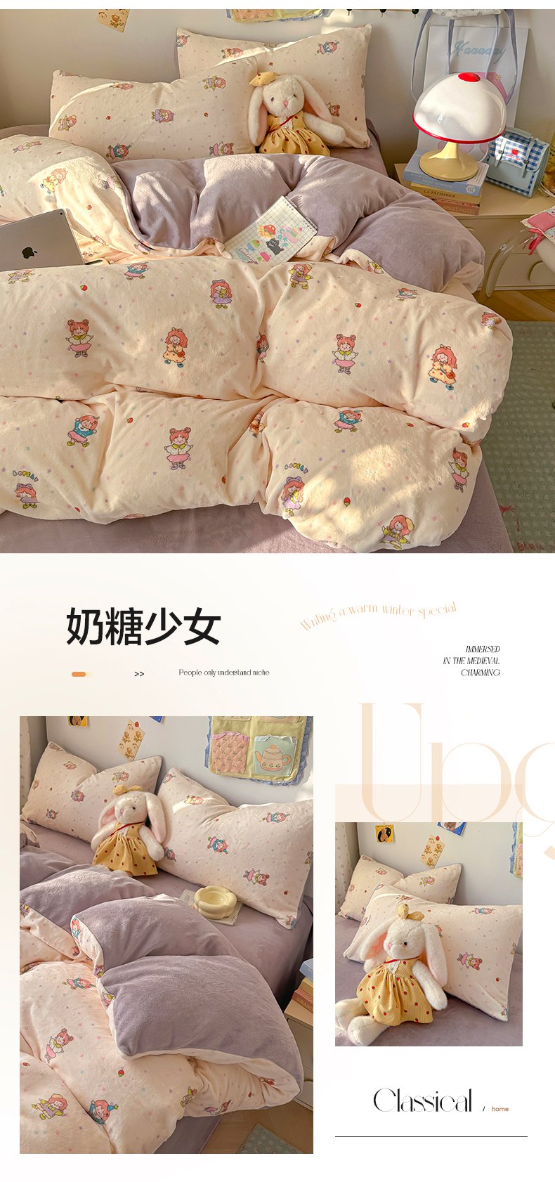 韩巢家纺 2025新款高克重印花牛奶绒床品四件套 爱丽丝,爱丽丝