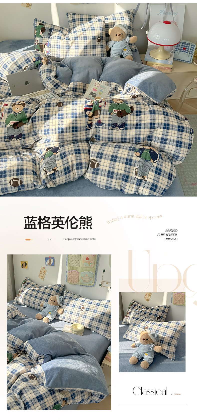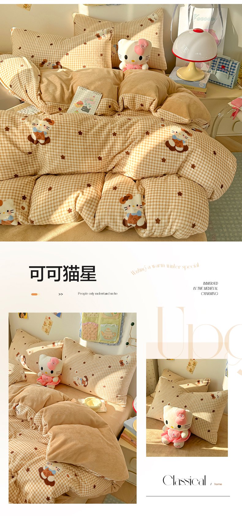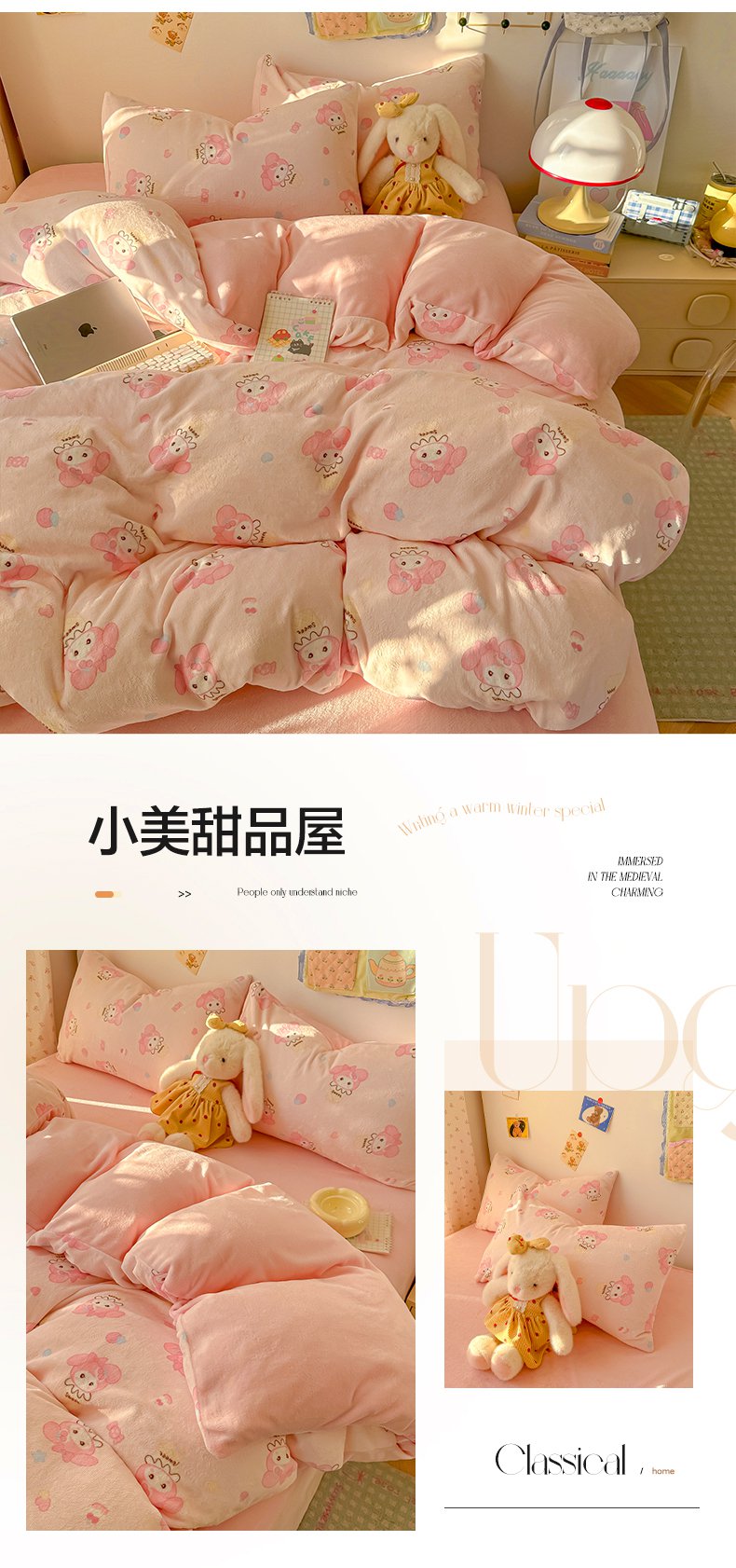 韩巢家纺 2025新款高克重印花牛奶绒床品四件套 爱丽丝,爱丽丝