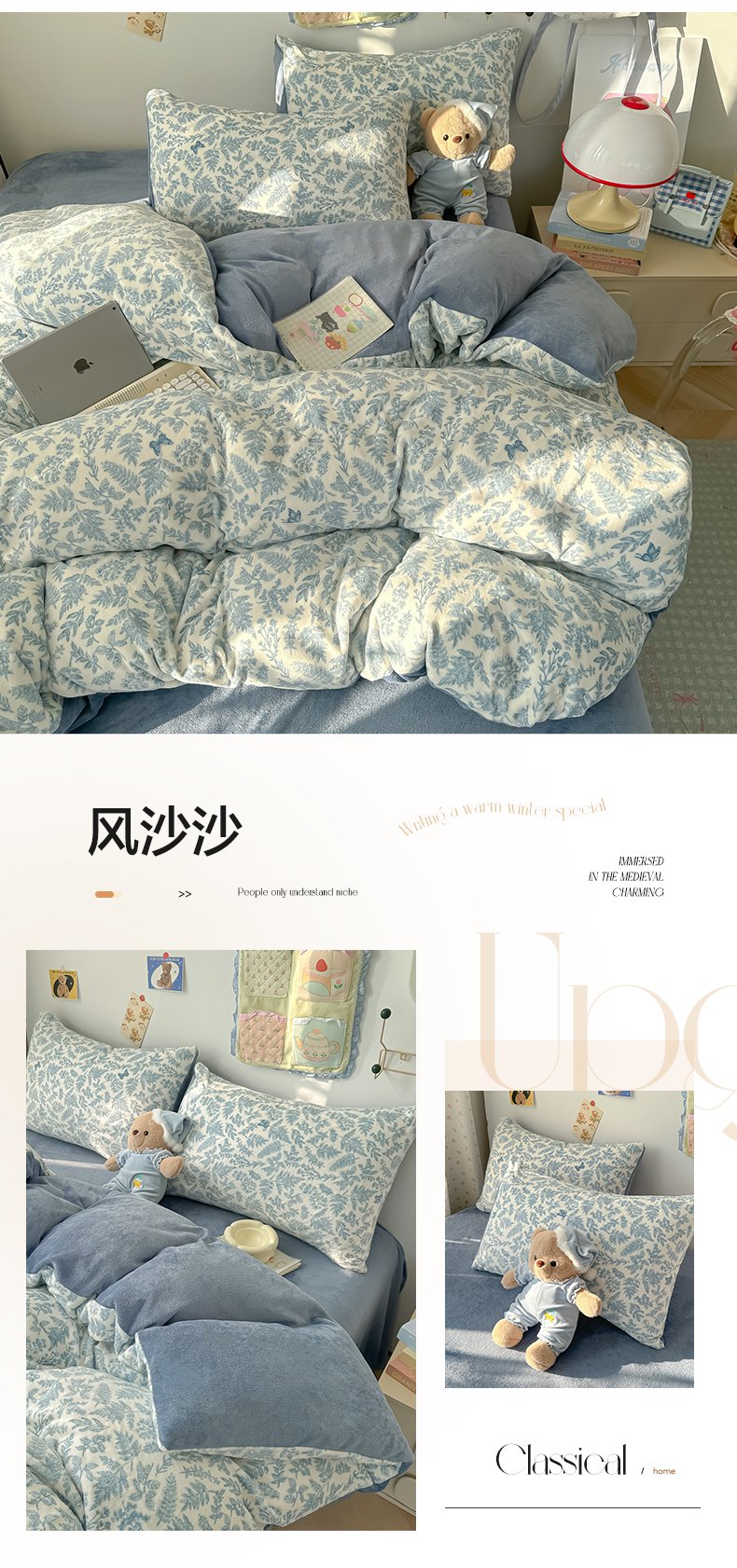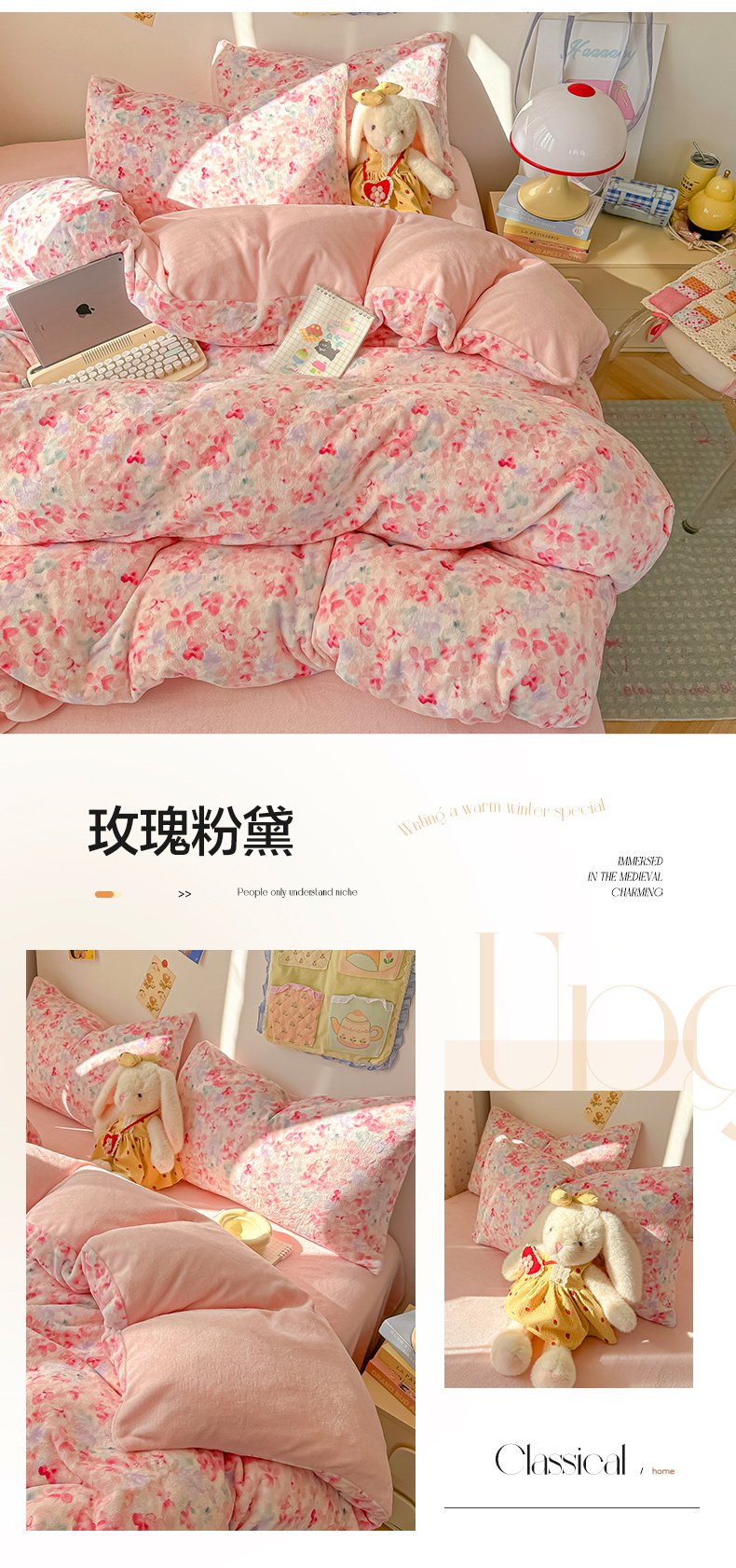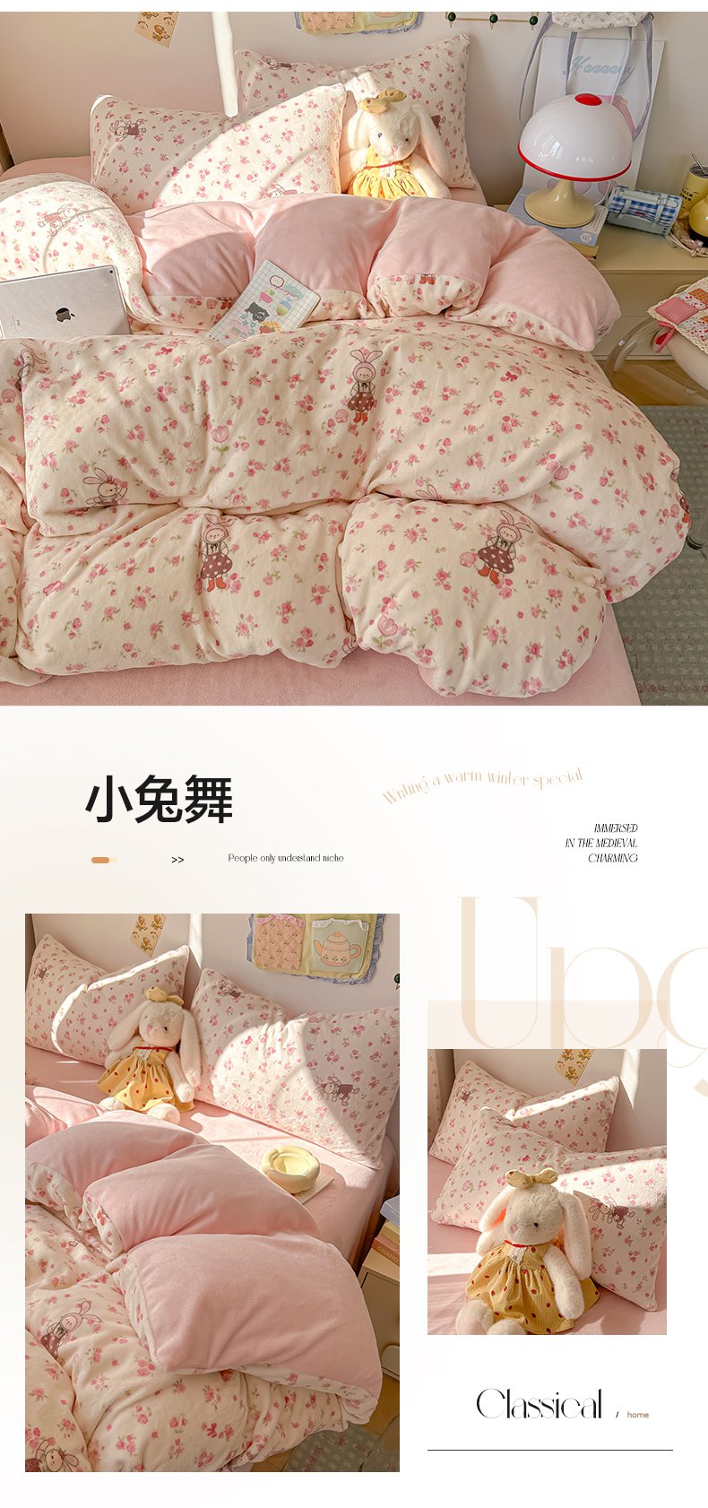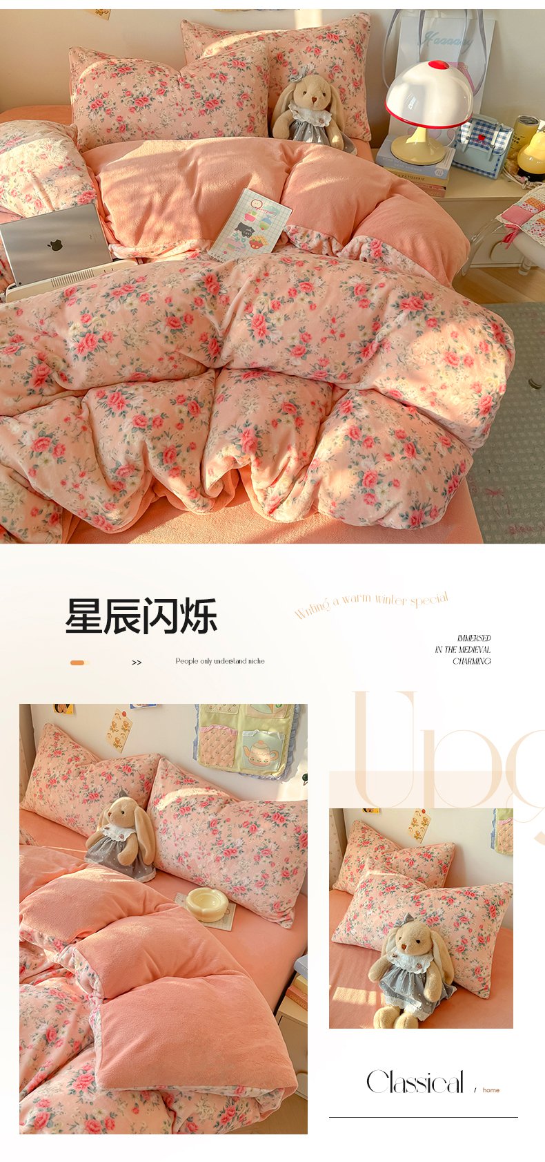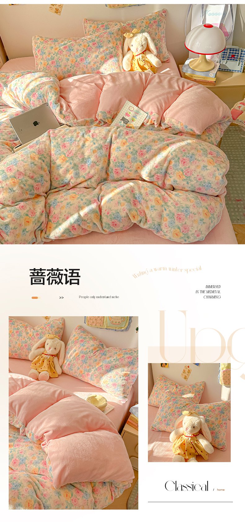 韩巢家纺 2025新款高克重印花牛奶绒床品四件套 田园小花,田园小花