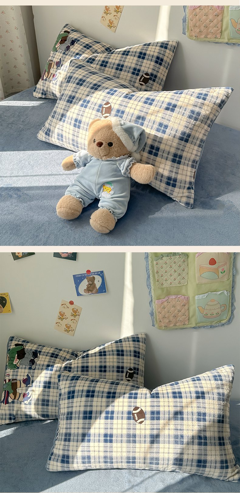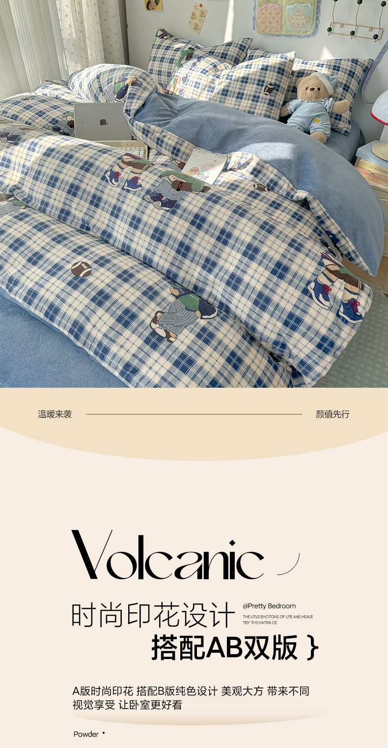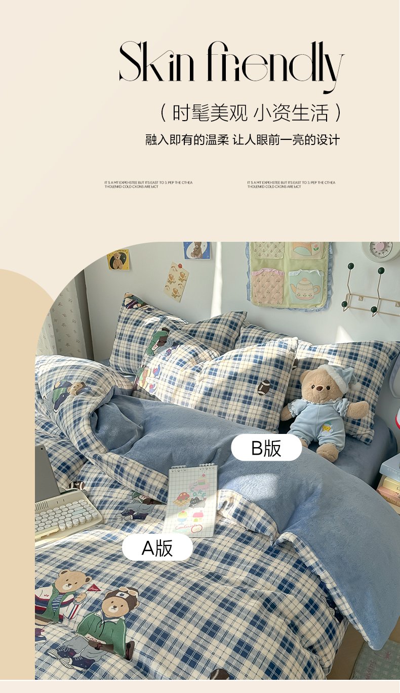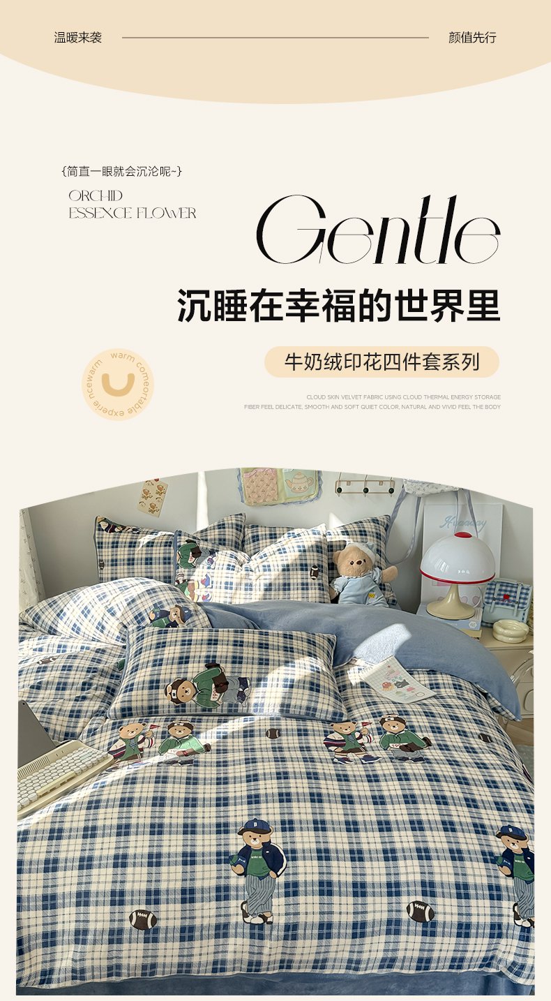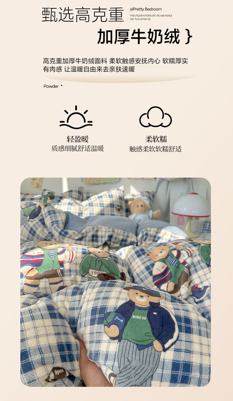 商品名称:韩巢家纺 2025新款双面高克重牛奶绒被套单件被罩 蓝格英伦熊
