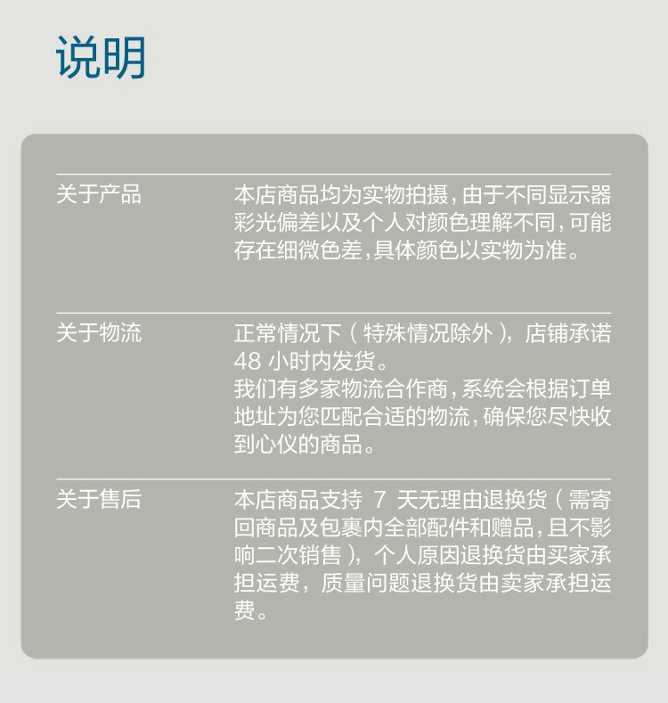 云仓服务3:享急速发货,18点之前下单,2小时内发货,保证发货时效;