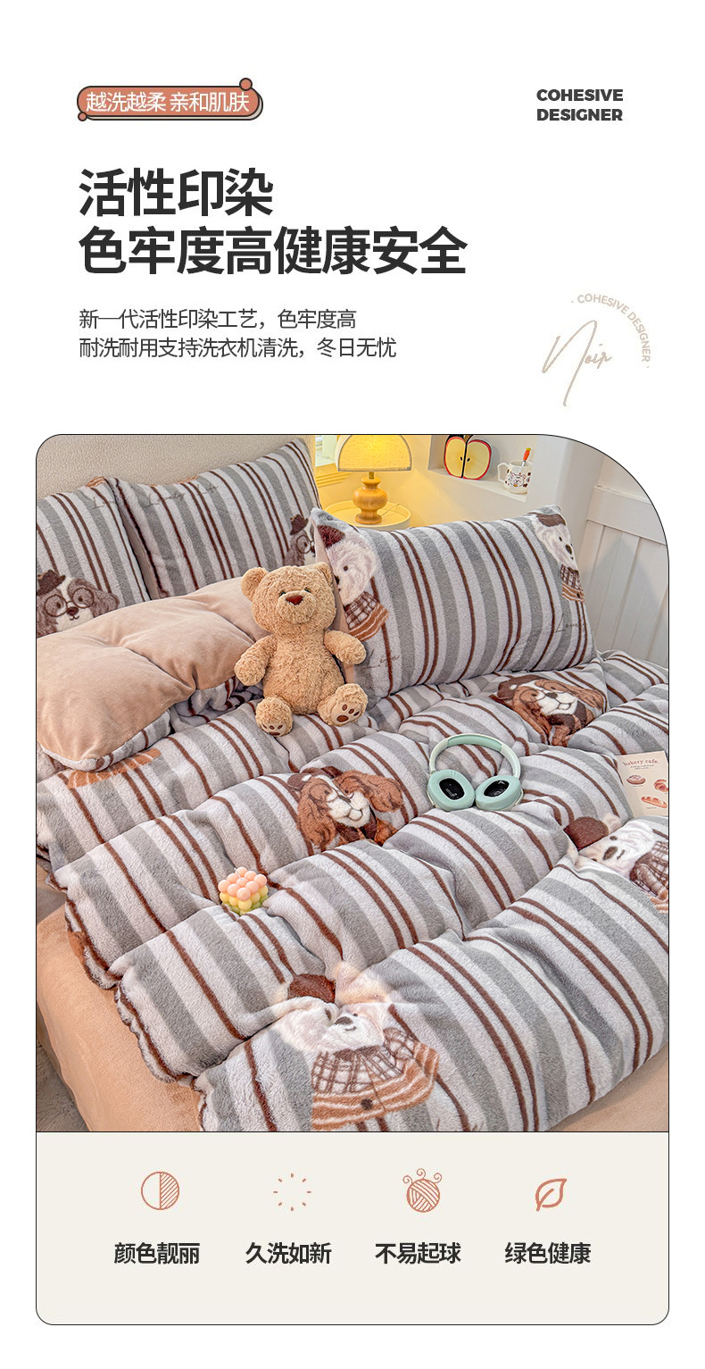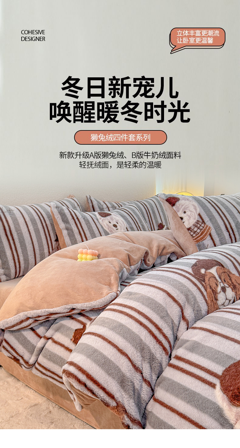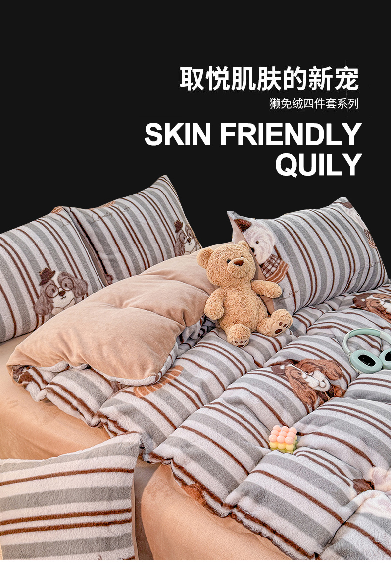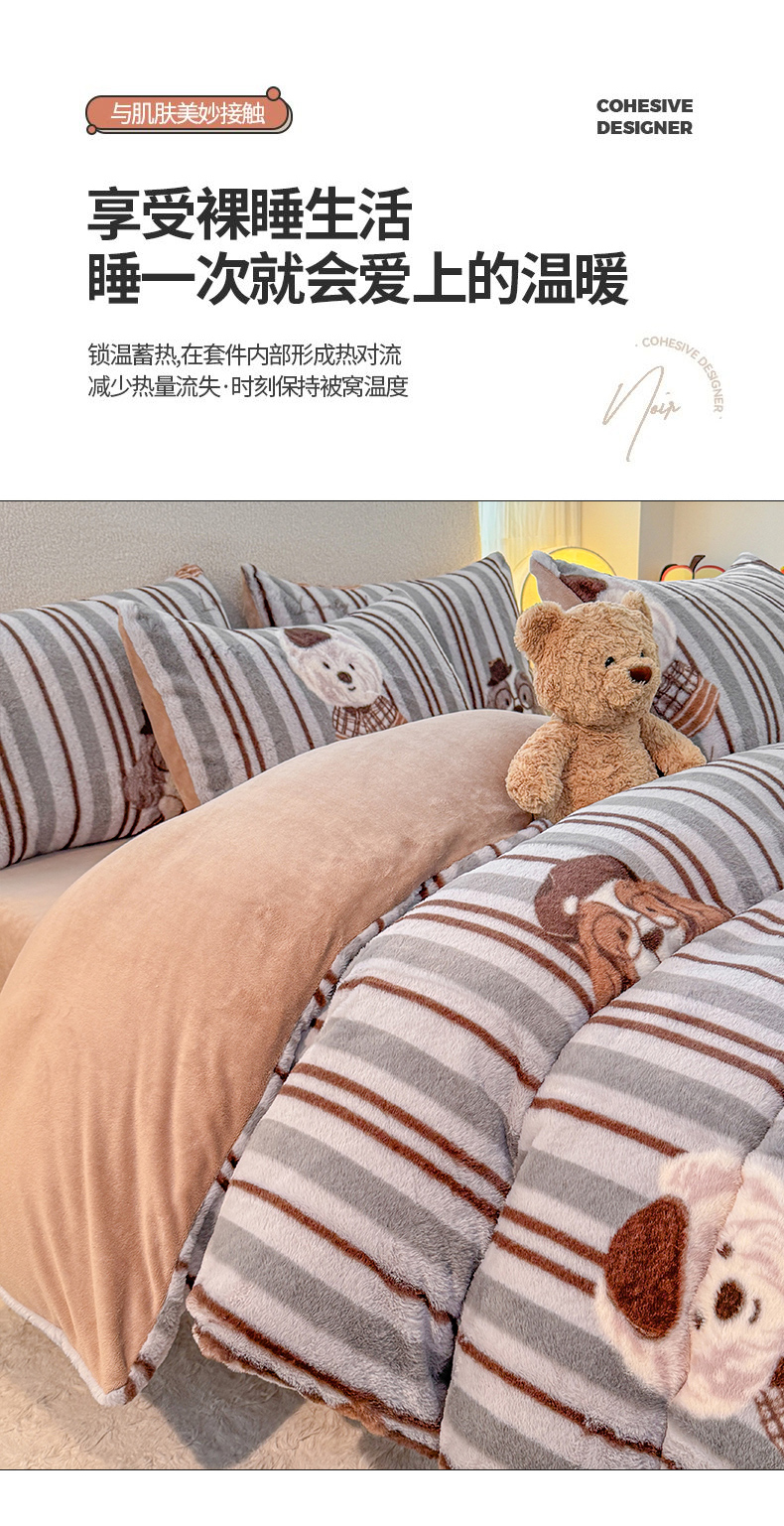 商品名称:KA家纺 2025新款冬高克重兔毛牛奶绒四件套 可爱熊
