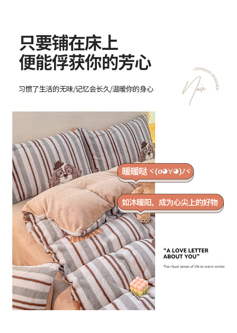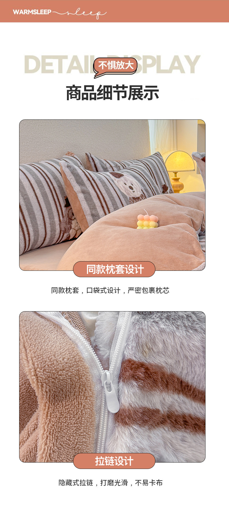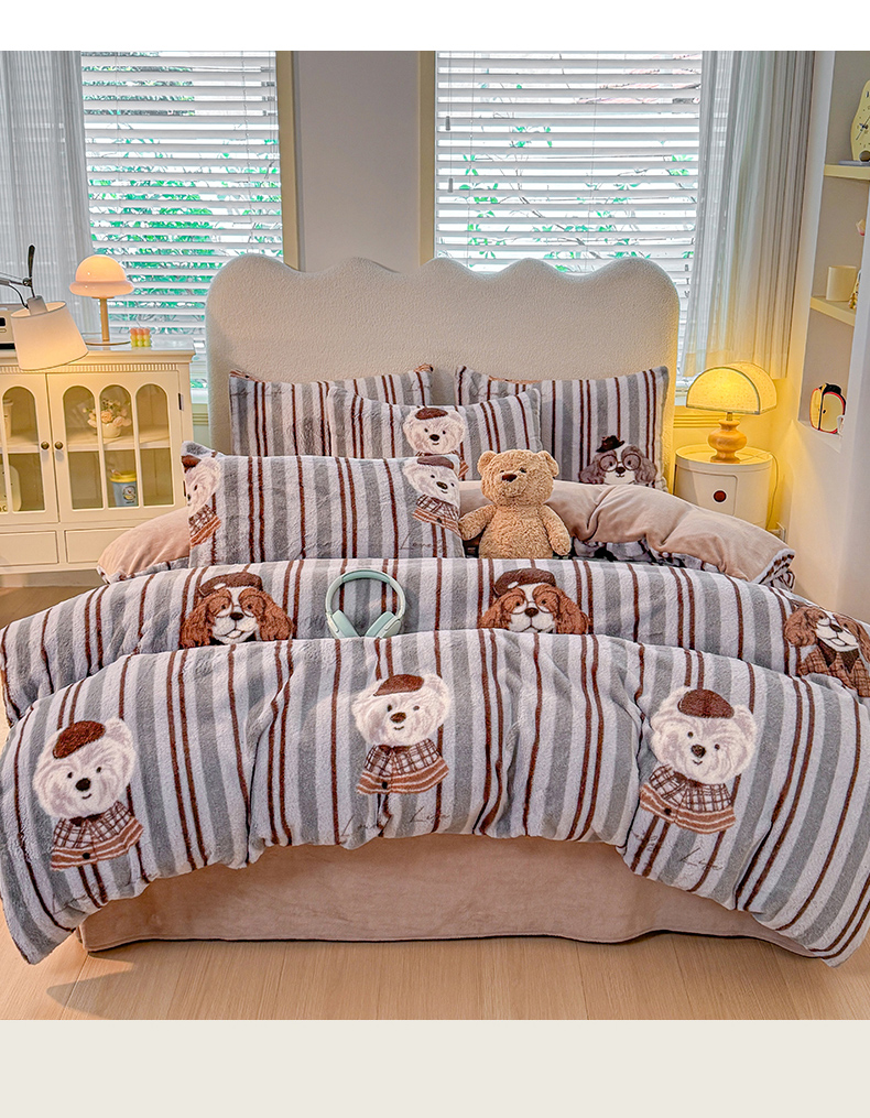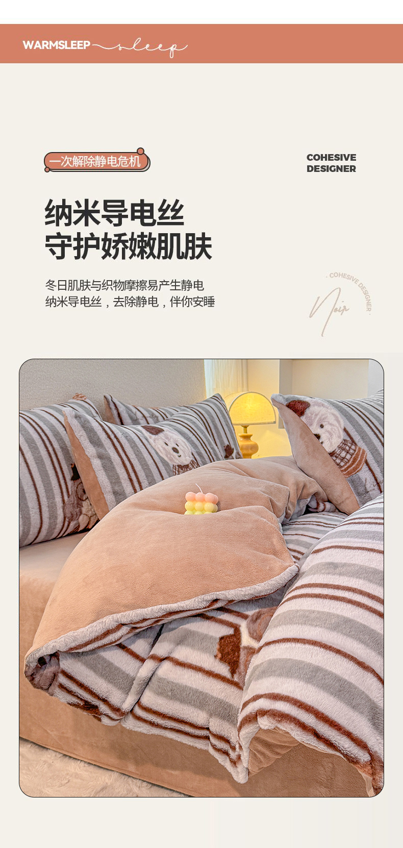 商品名称:KA家纺 2025新款冬高克重兔毛牛奶绒四件套 可爱熊