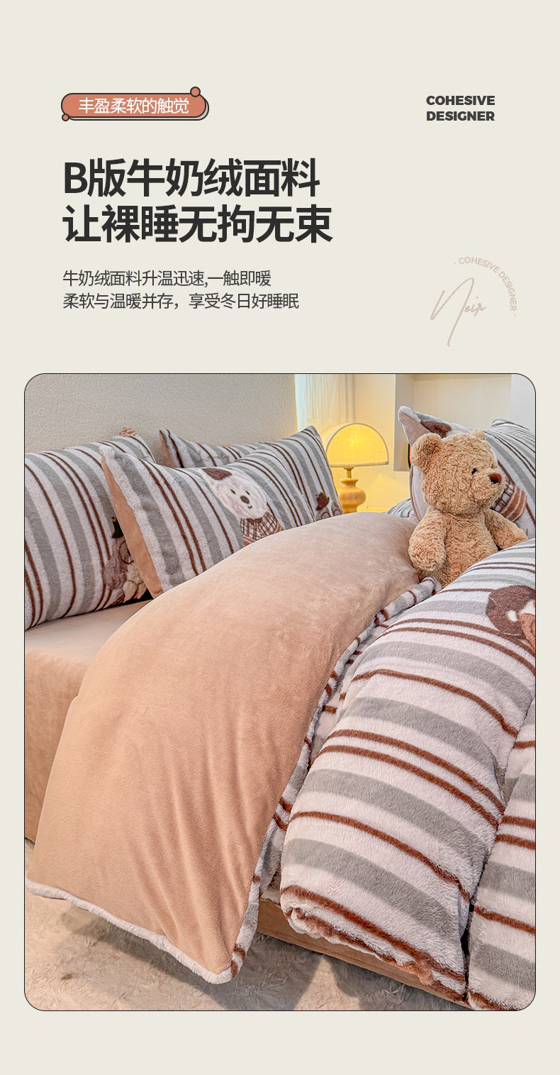 KA家纺 2025新款冬高克重兔毛牛奶绒四件套 可爱熊