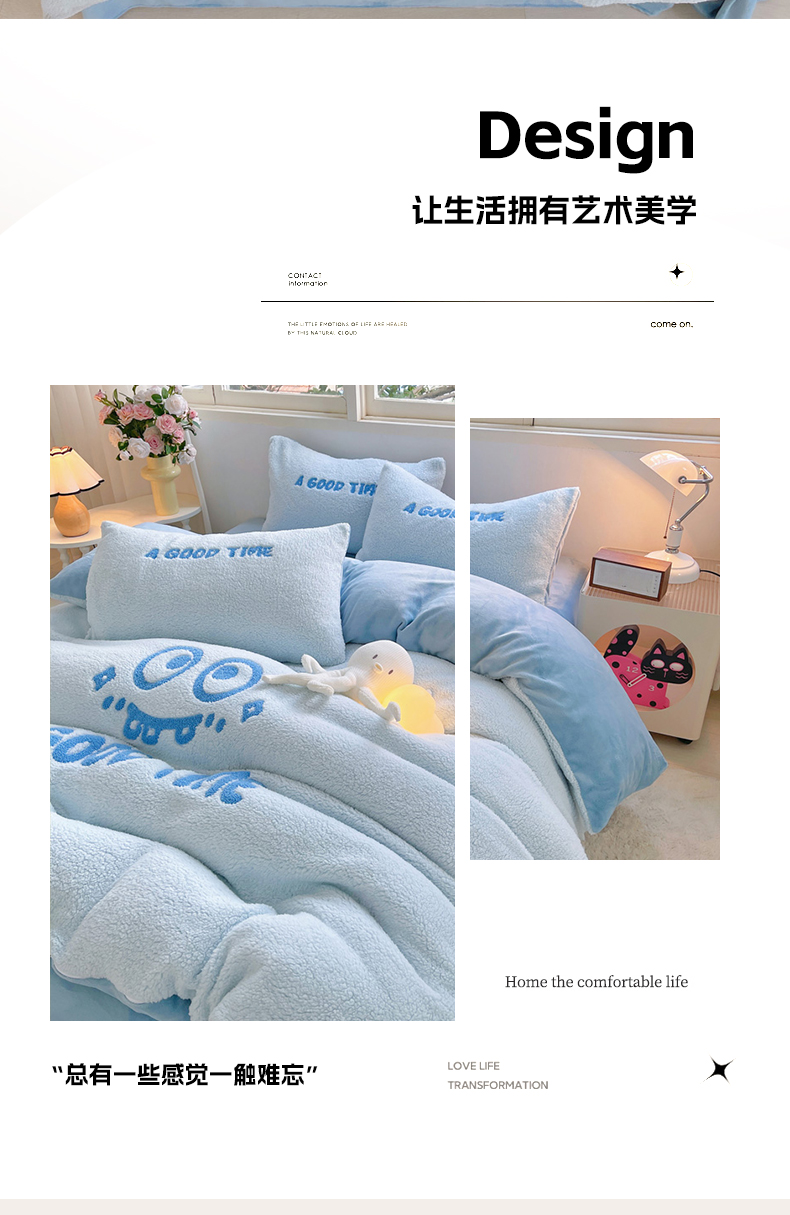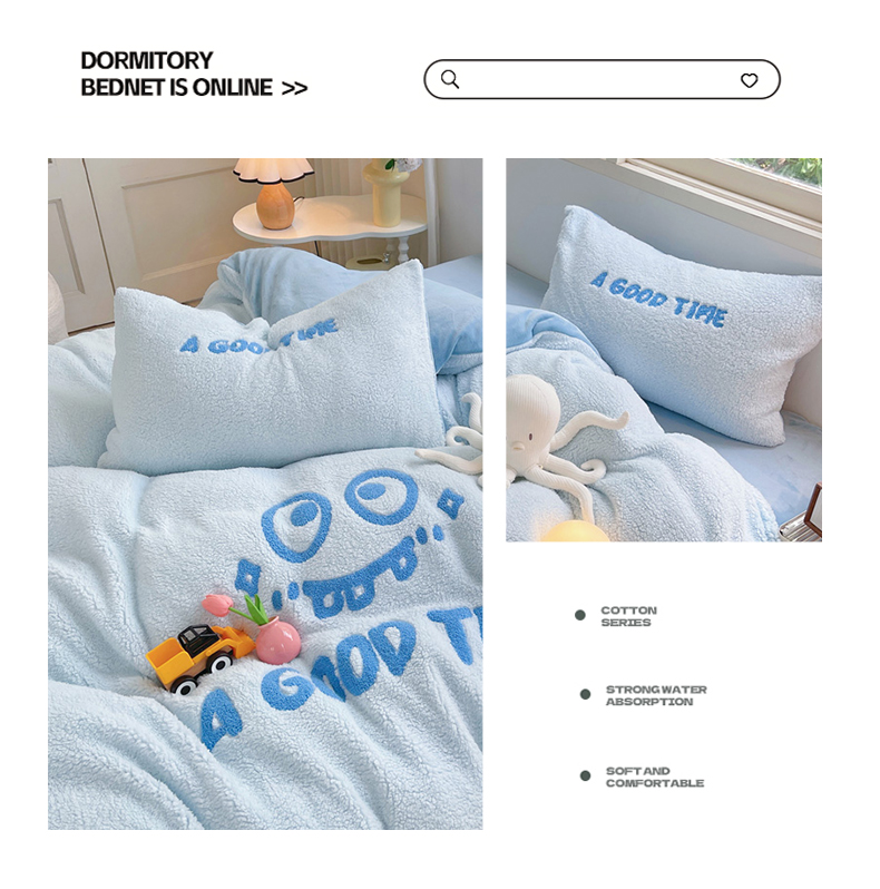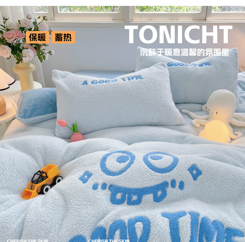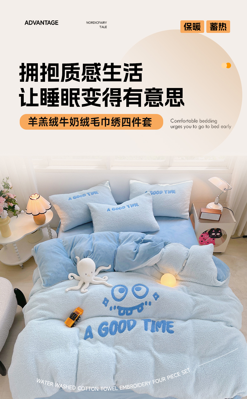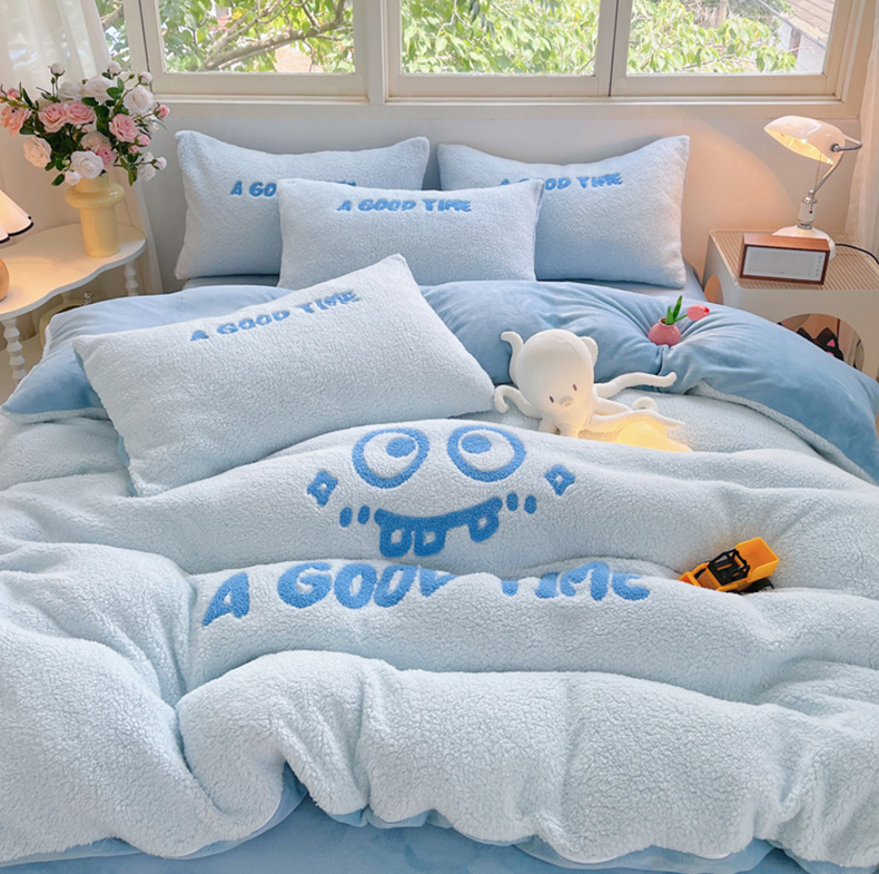 商品名称:牵依 2025新款羊羔绒牛奶绒毛巾绣四件套 大眼仔