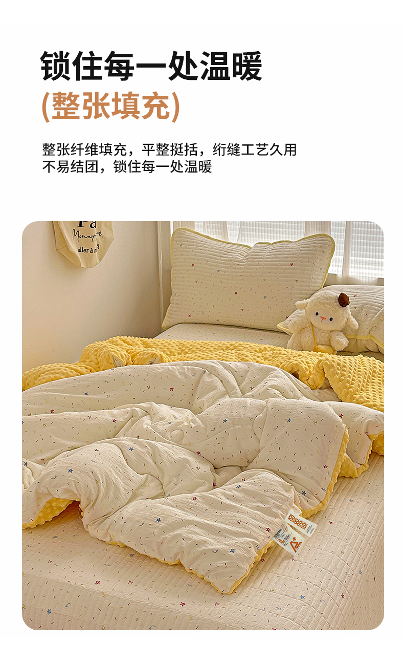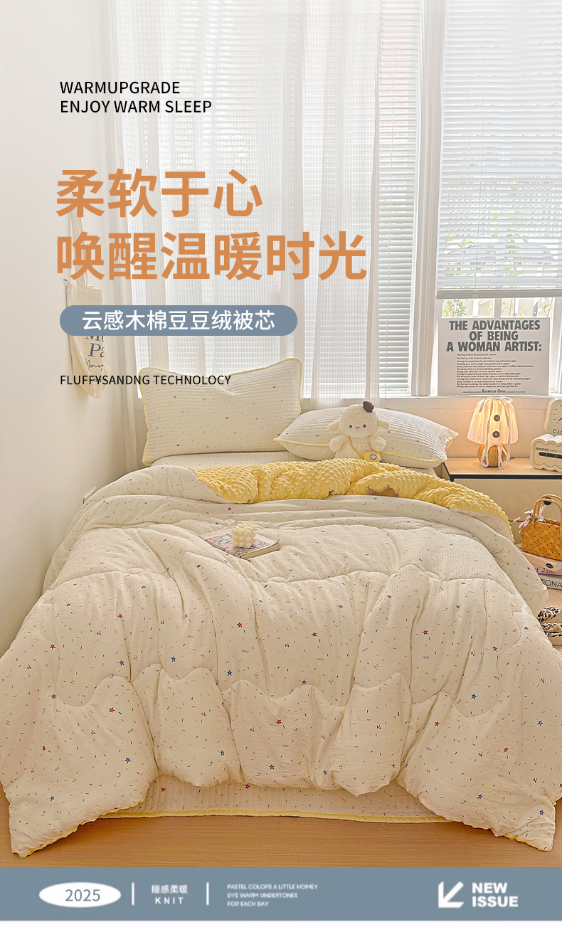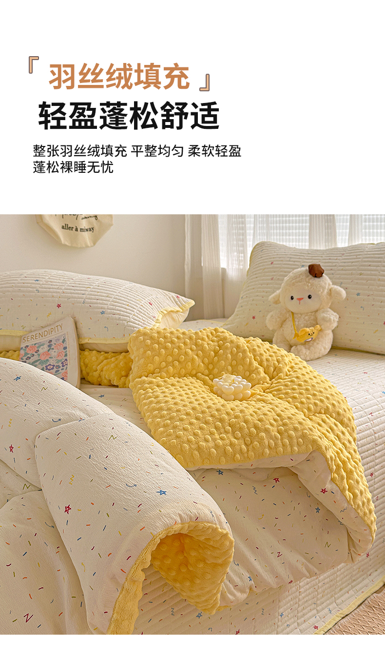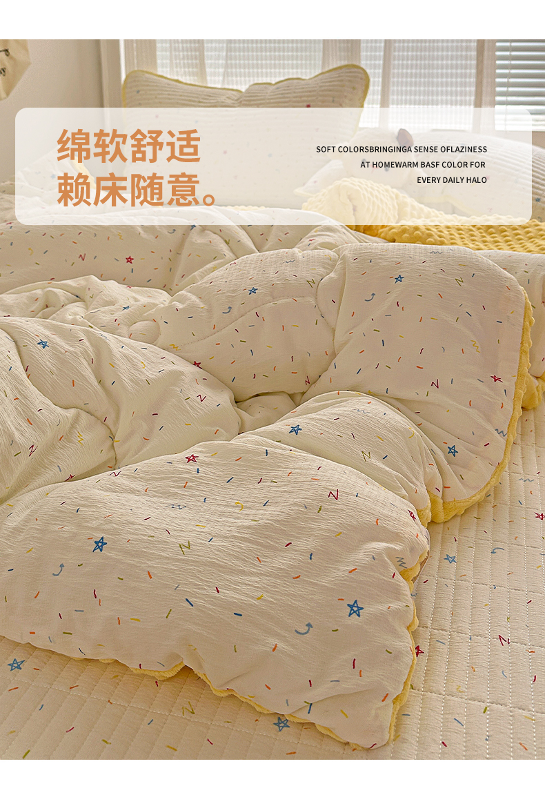 • 91家纺网 家纺一手货源 找家纺 繁花家居 2025新款床盖豆豆被套春秋被套冬被云感超软木棉被子被芯 简单款床盖-豆豆被-彩星甜梦