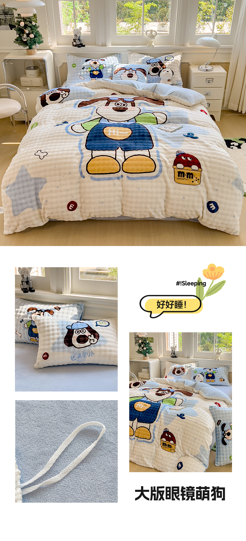 (总)摩妮卡 2025新款小清新加厚260克牛奶绒泡泡绒四件套,甜系兔兔,幽香恋曲,软萌萌小兔,洛丽兔,紫韵美乐蒂,萌兔时光,凯蒂小熊,软萌小猫,暮雅,快乐每一天,花园狗,奶蓝玉桂狗,小兔甜甜酱