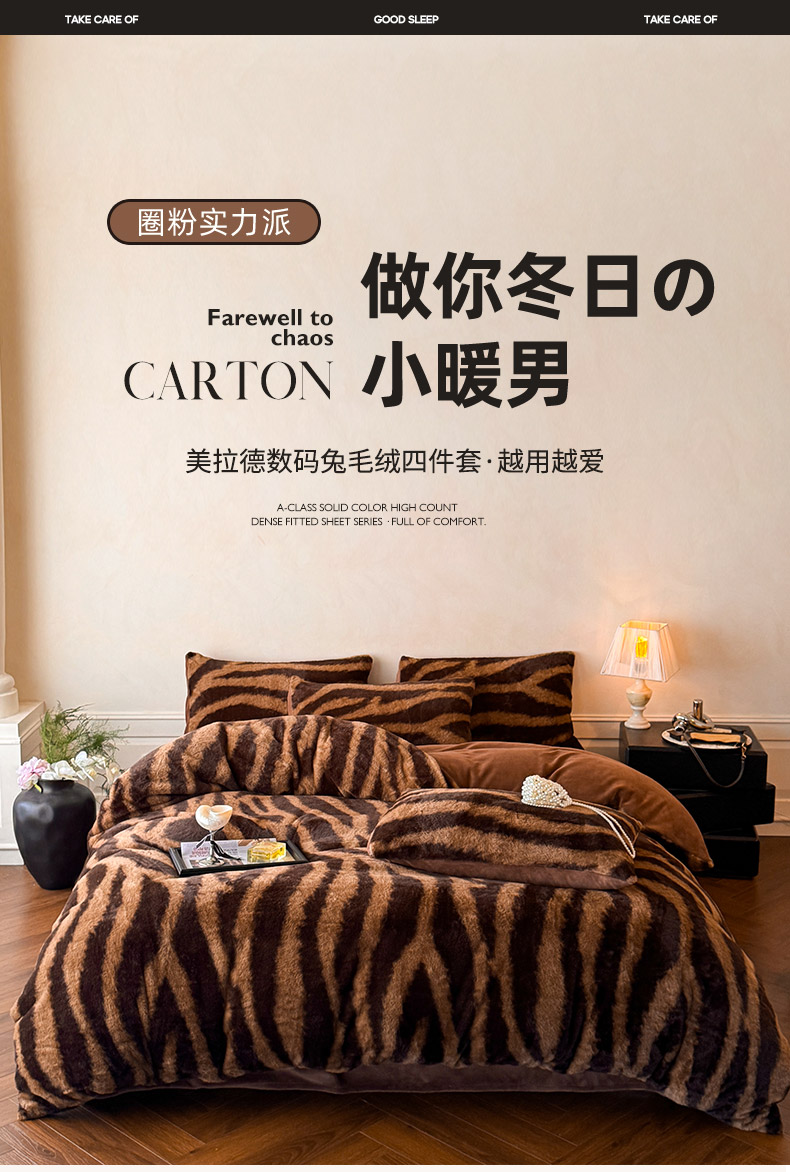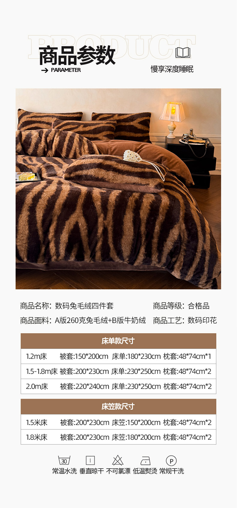 (总)吾诺家居 2025新款美拉德260克兔毛四件套数码四件套牛奶绒四件套,斑马棕,蝶影,蝴蝶豹纹,花间汐月,花盈,焦糖蝶舞,经典豹纹,梦幻森林,瑞秋-浅咖,瑞秋-深棕