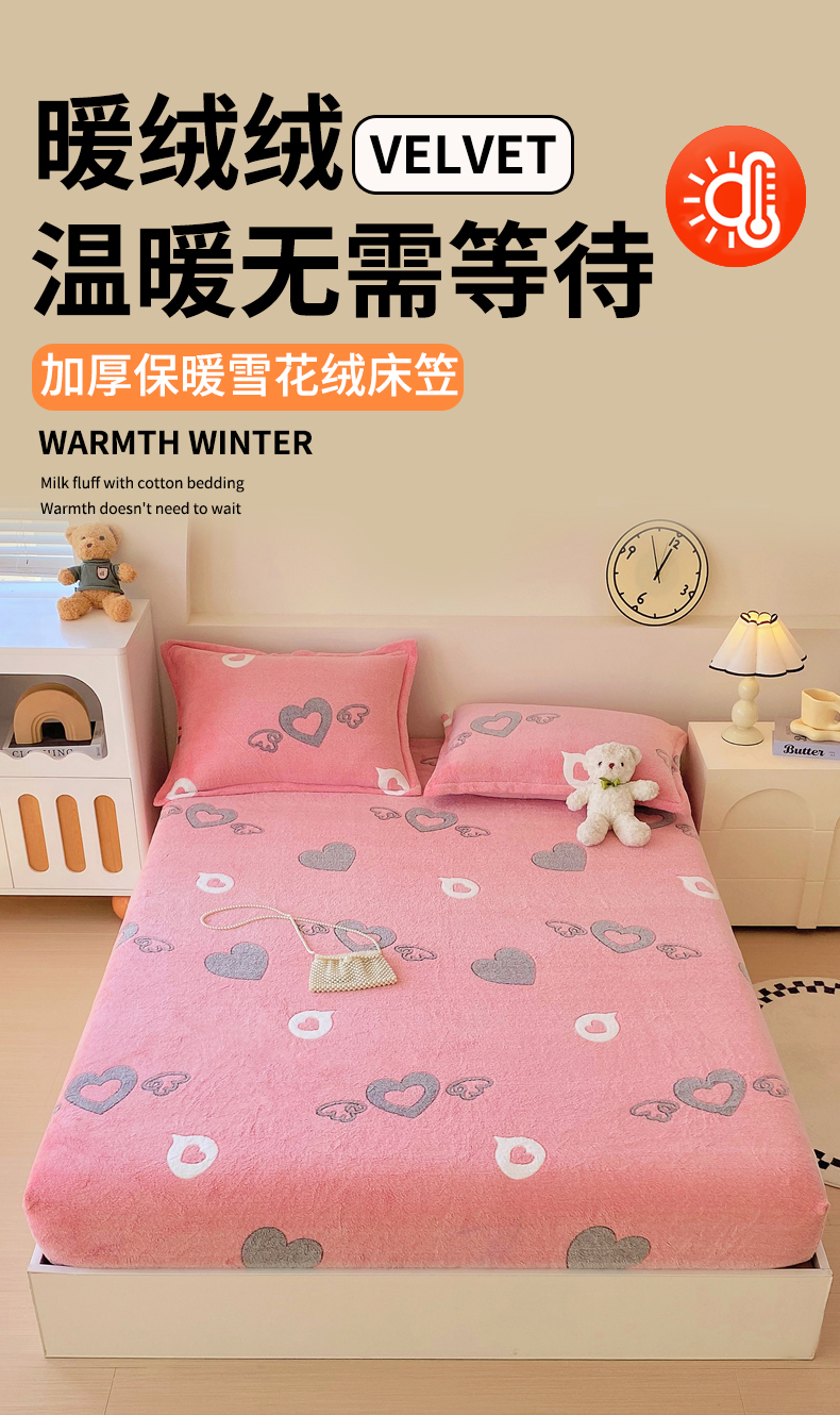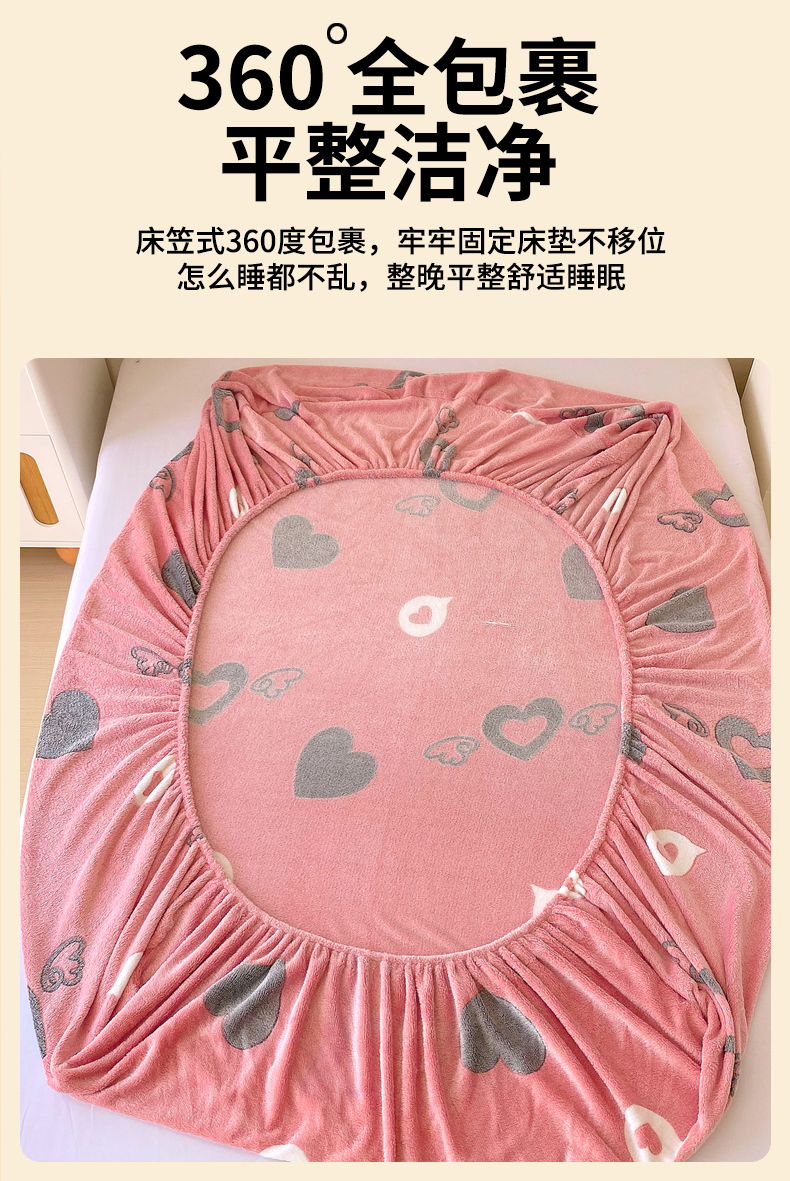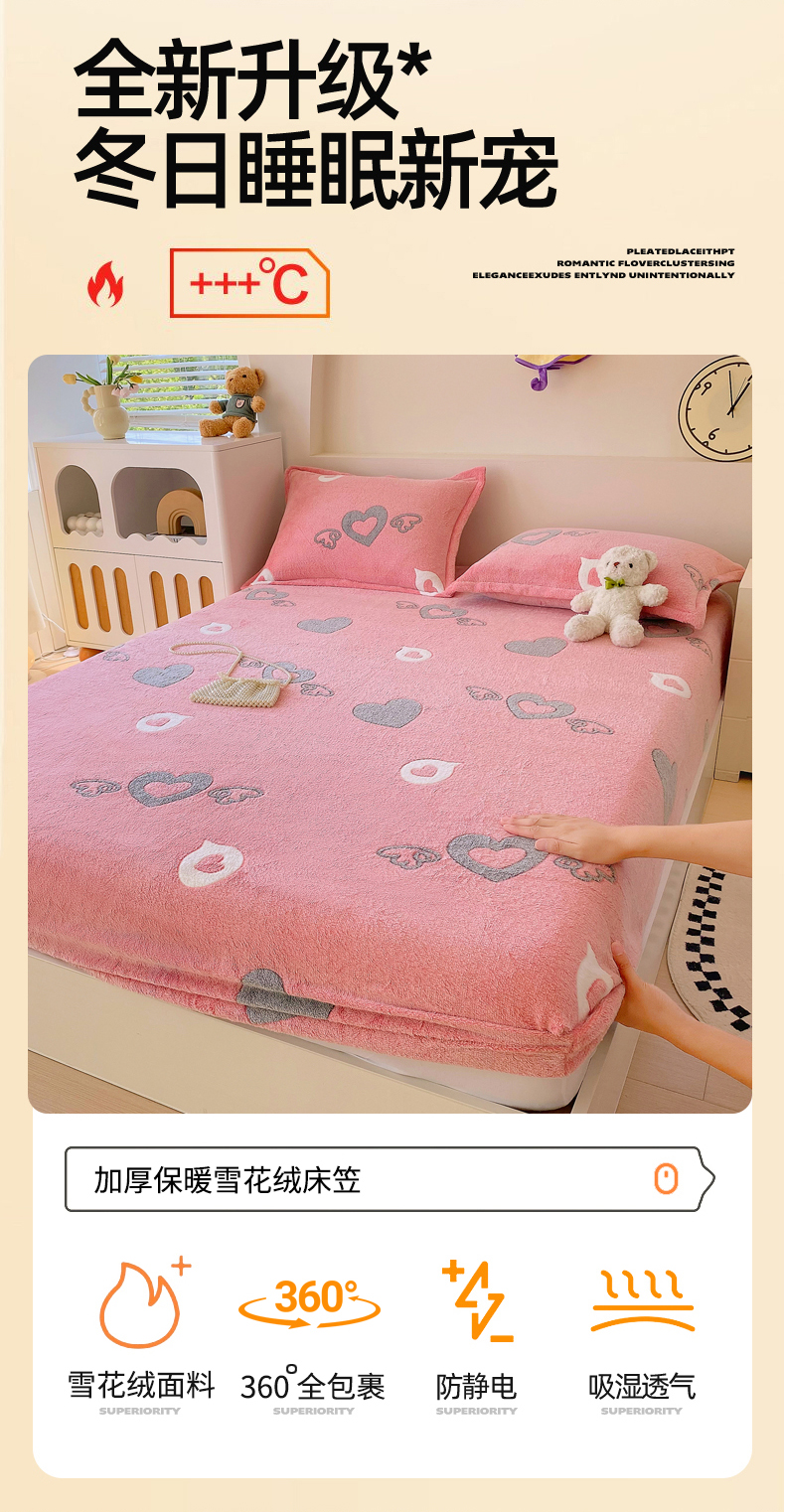 • 91家纺网 家纺一手货源 找家纺 梦尚舒 2025新款180克雪花绒床笠单品床笠床笠单件 爱心翅膀