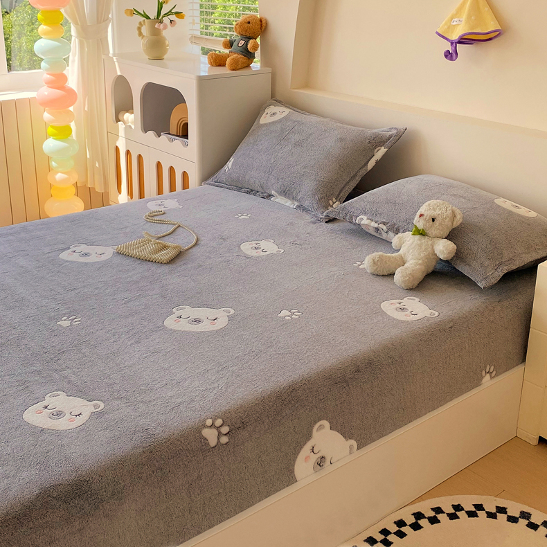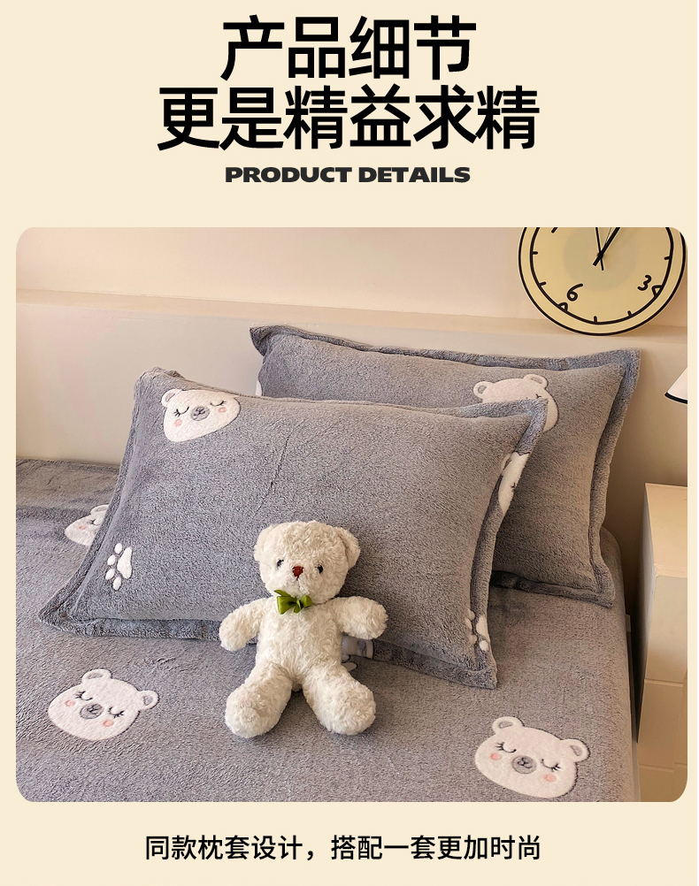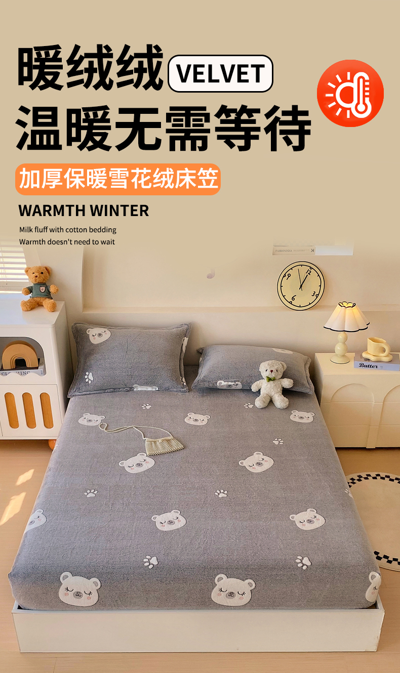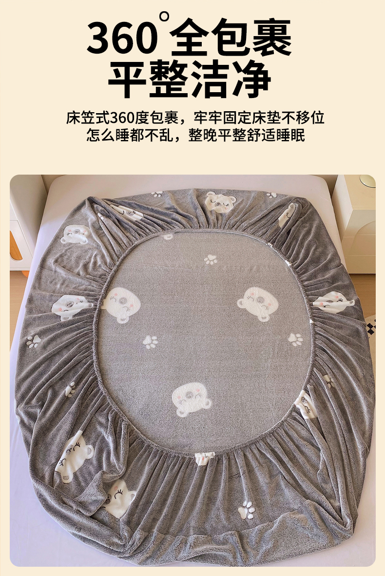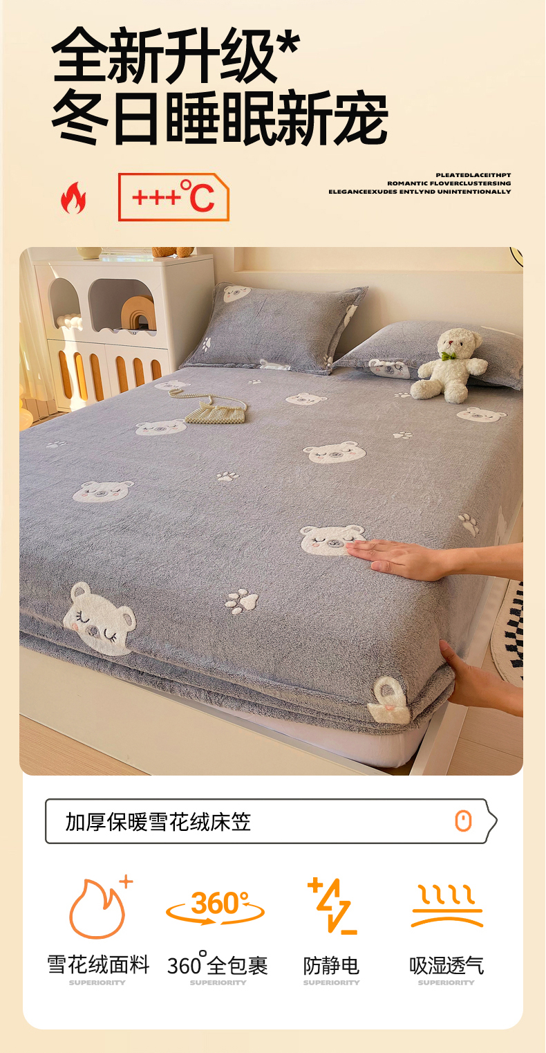 • 91家纺网 家纺一手货源 找家纺 梦尚舒 2025新款180克雪花绒床笠单品床笠床笠单件 晚安熊
