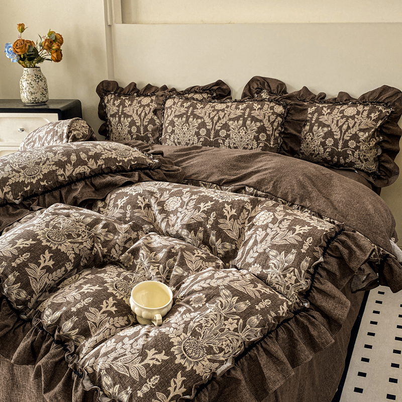 (总)梦纤绒 2026新款高克重法式复古亚麻花边款四件套,雾影,花梦,森屿,时光紫,晚风,雾漫