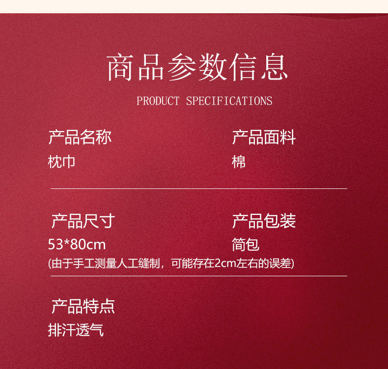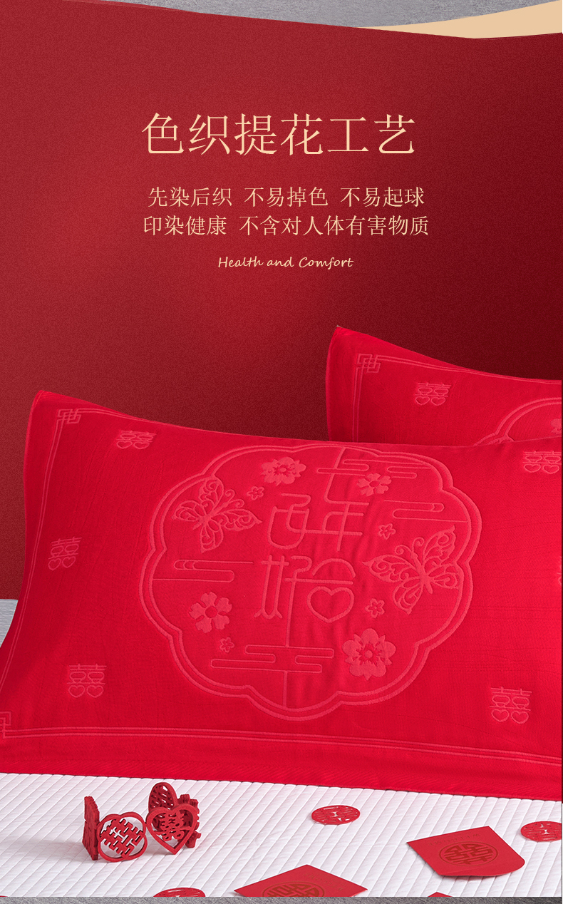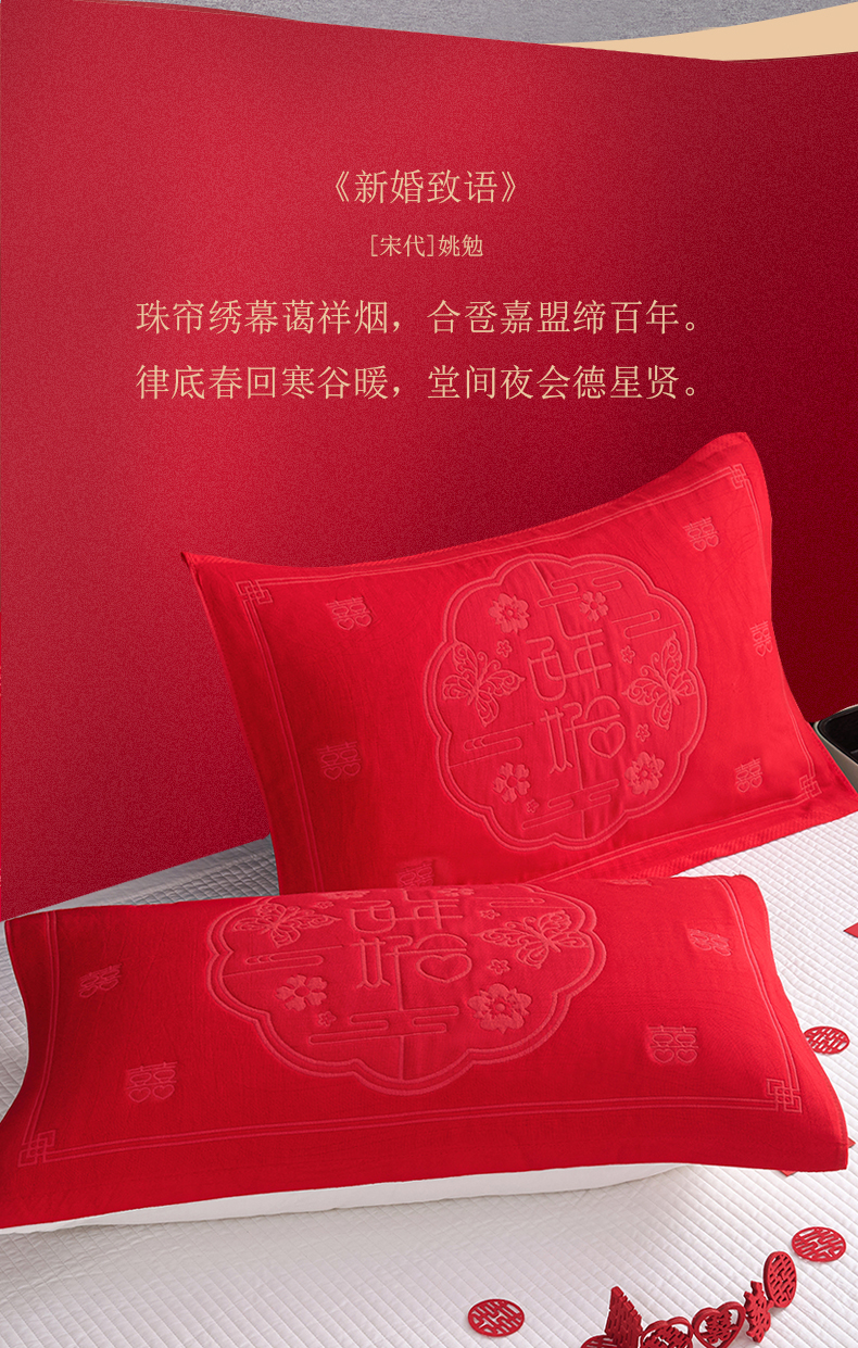 商品名称:棠薇家纺 2025新款全棉大红婚庆枕巾 百年好合