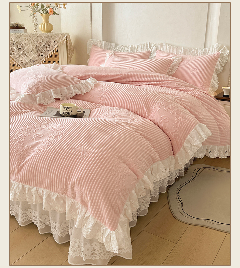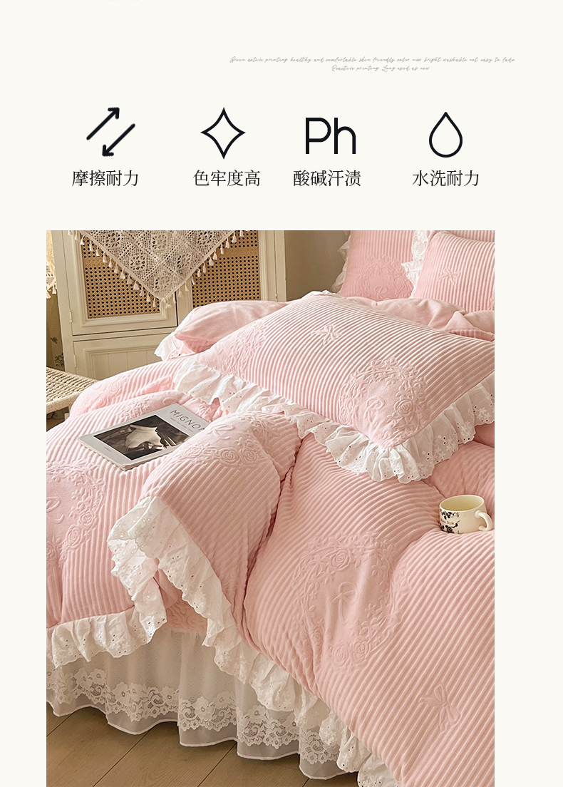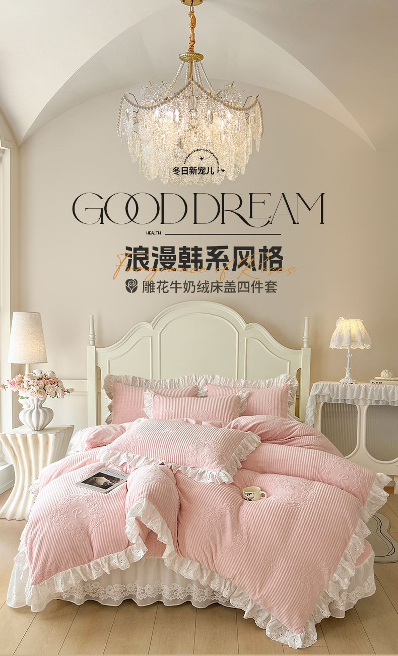 当前位置: 91家纺网 > 商品网购 > 床品套件 > 四件套 > 牛奶绒四件套 > 怡源梦 2025新款雕花牛奶绒床盖四件套-国色芳华系列 国色芳华-樱花粉