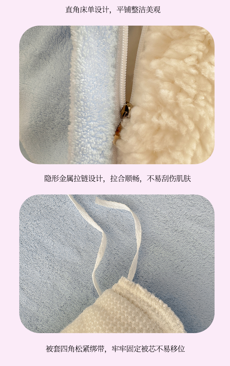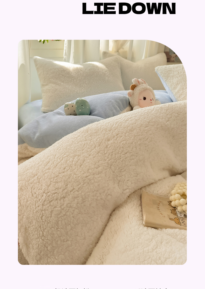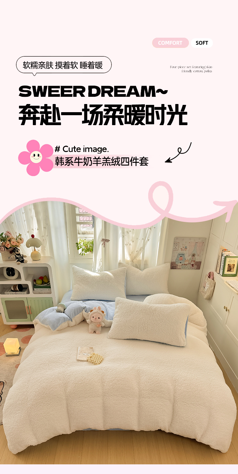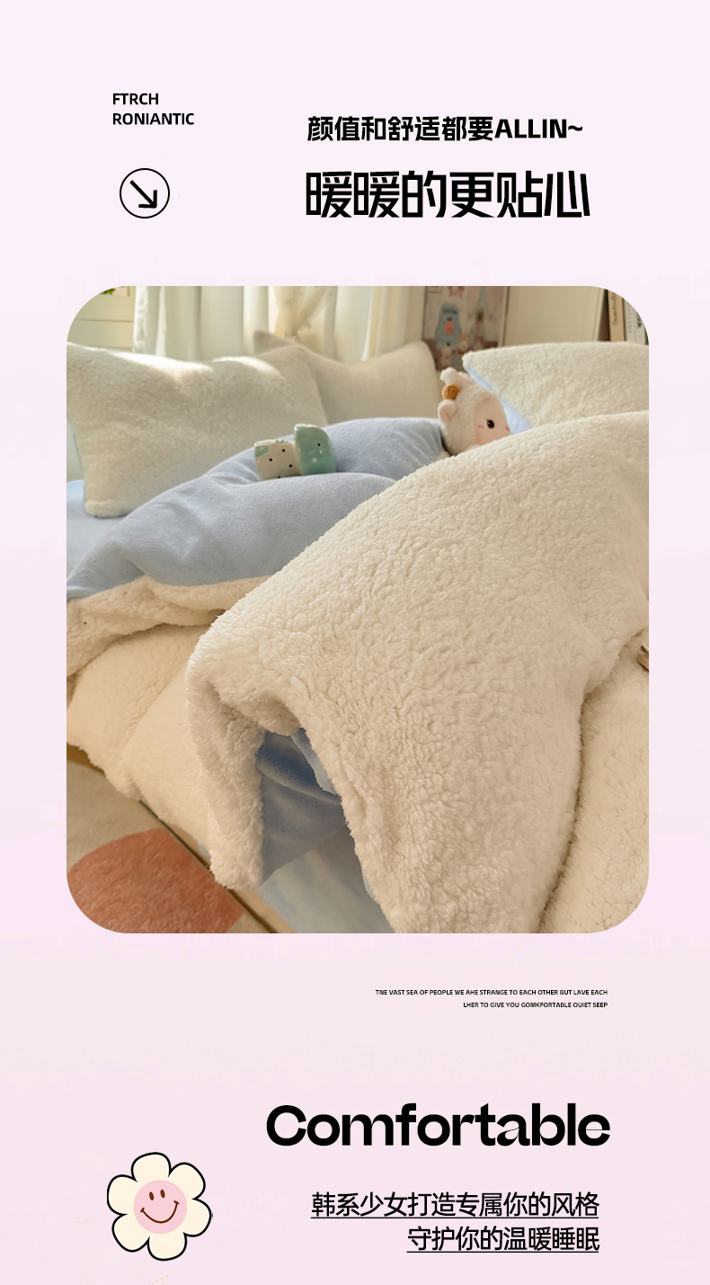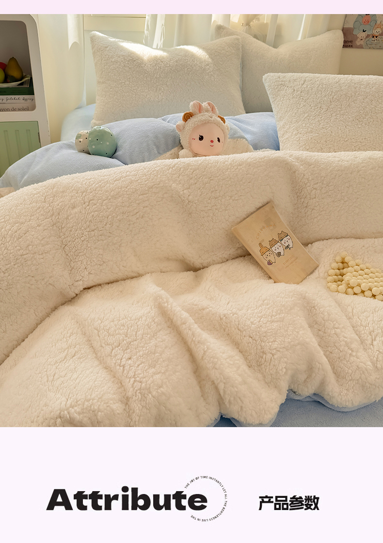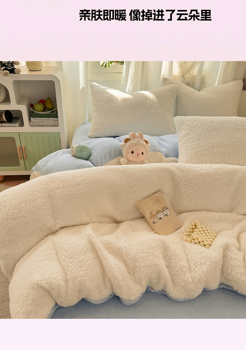 当前位置: 91家纺网 > 商品网购 > 床品套件 > 四件套 > 羊羔绒四件套 > 灰鲸 2025新款秋冬韩系牛奶羊羔绒四件套 羊羔-白蓝