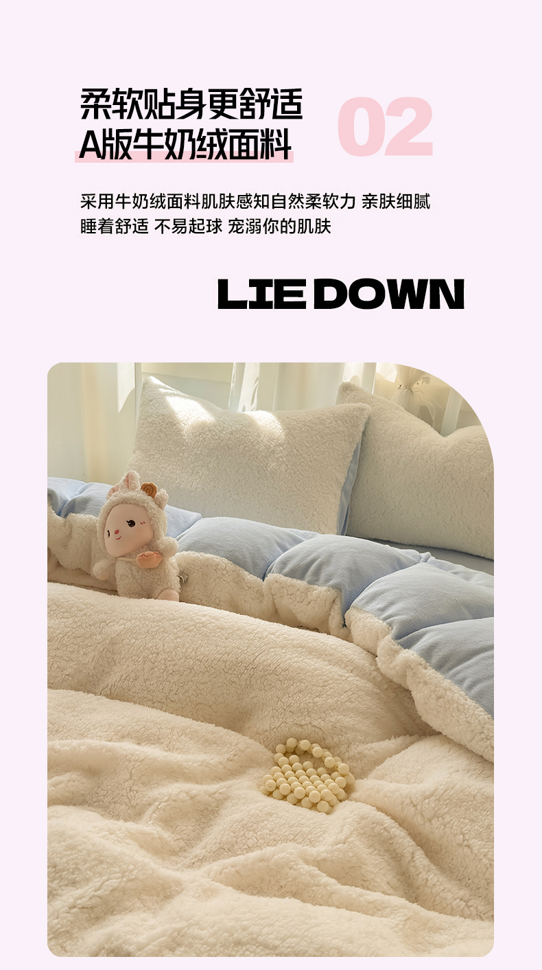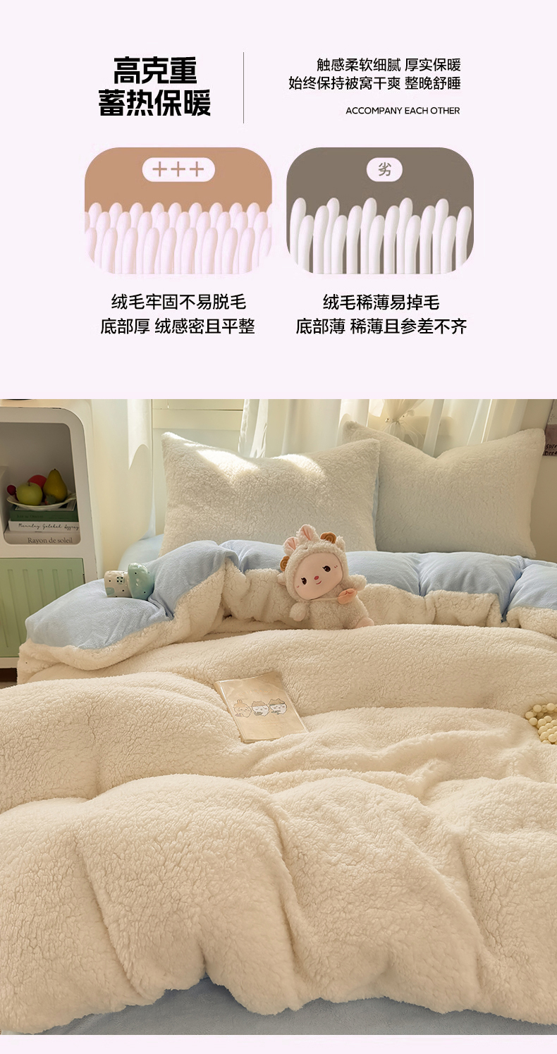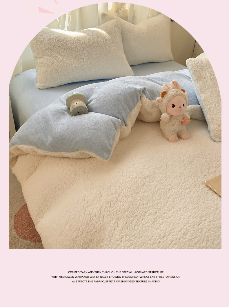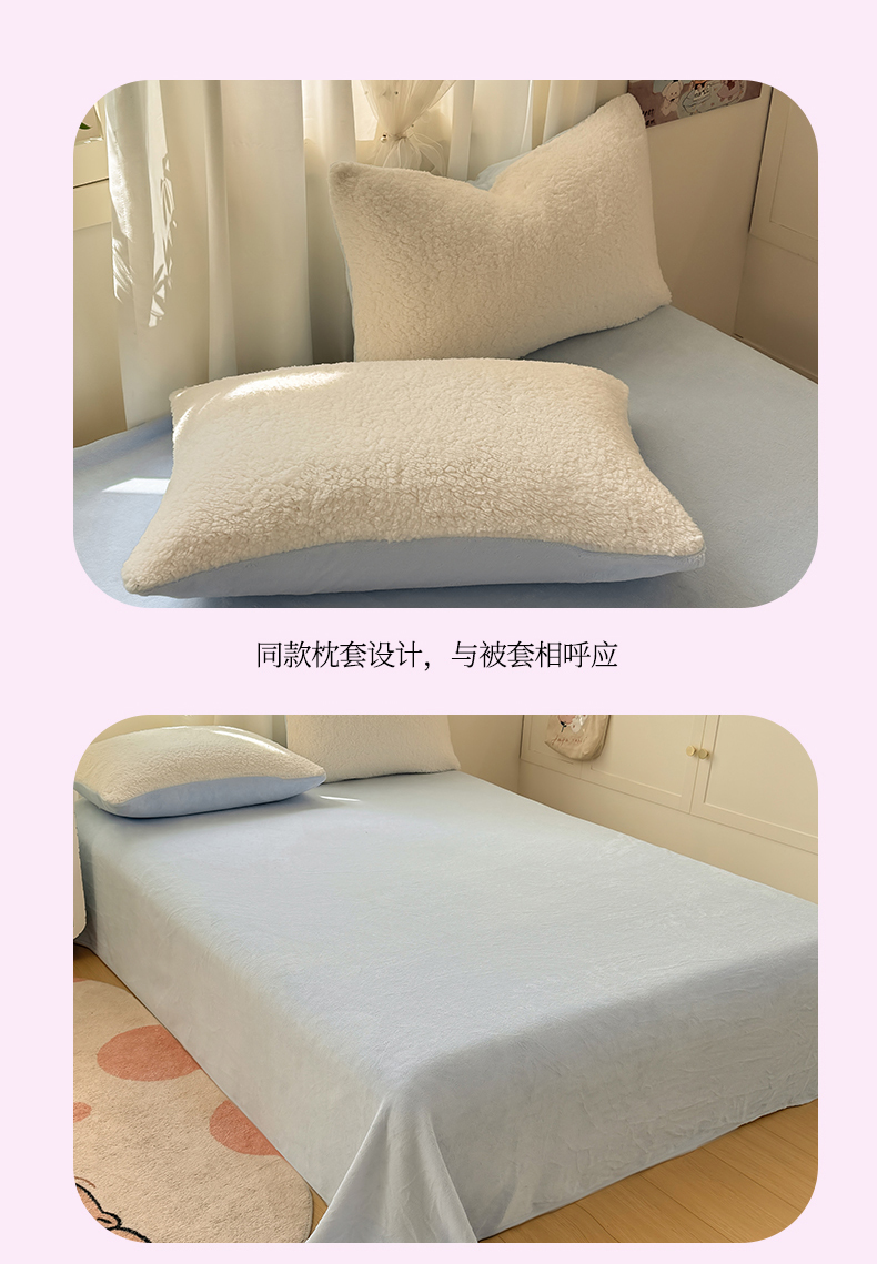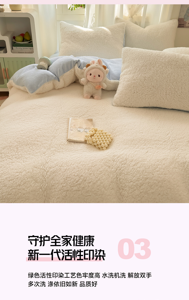当前位置: 91家纺网 > 商品网购 > 床品套件 > 四件套 > 羊羔绒四件套 > 灰鲸 2025新款秋冬韩系牛奶羊羔绒四件套 羊羔-白蓝