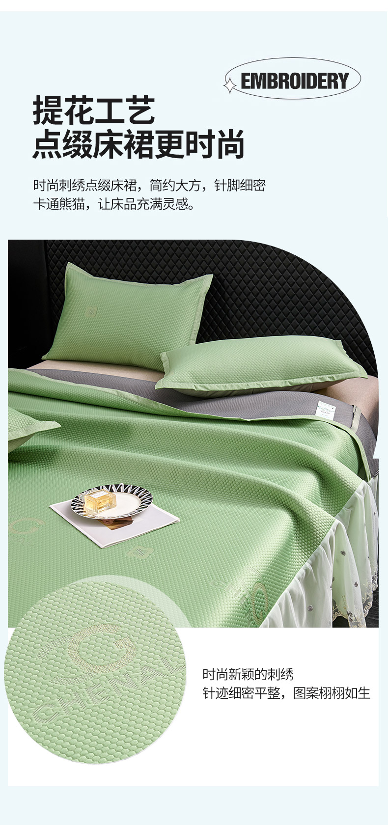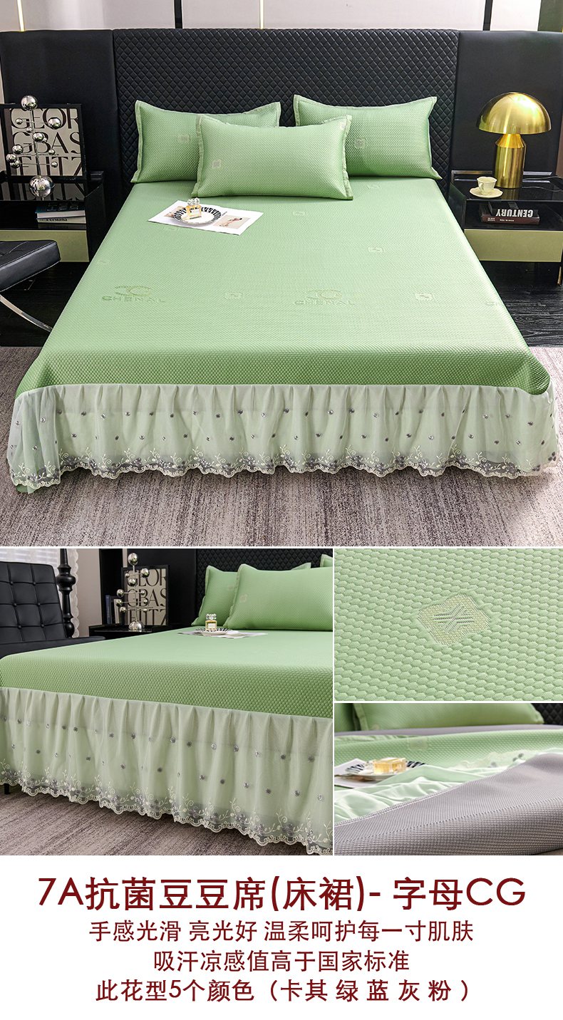 商品名称:梵克保罗 2025新款凉感因子母婴级凉感丝豆豆席床裙款 床裙香奈儿-香槟
