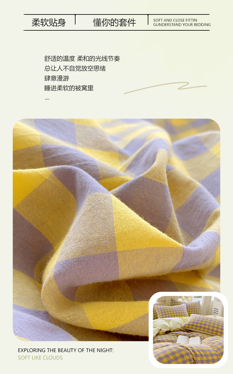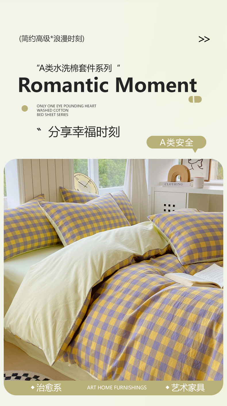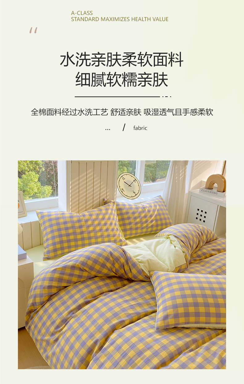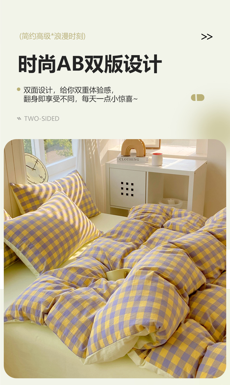 商品名称:(总)春皖家纺 2025新款全棉纯棉色织AB版水洗棉四件套