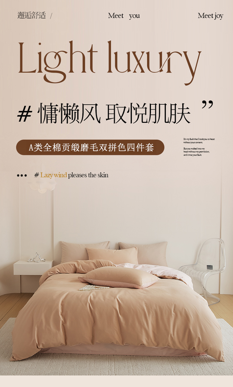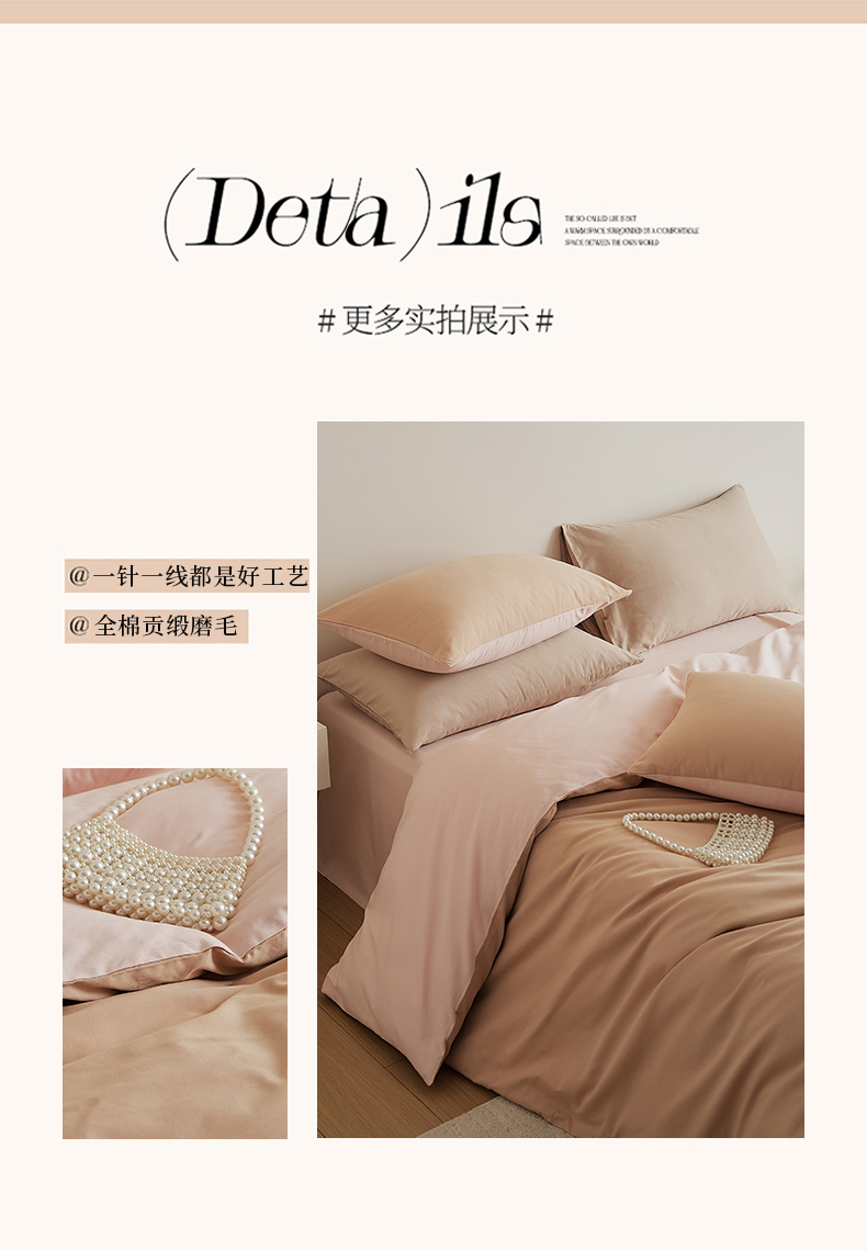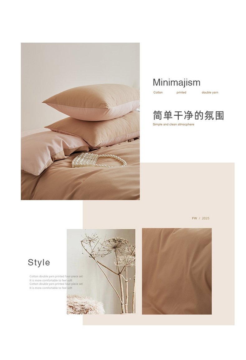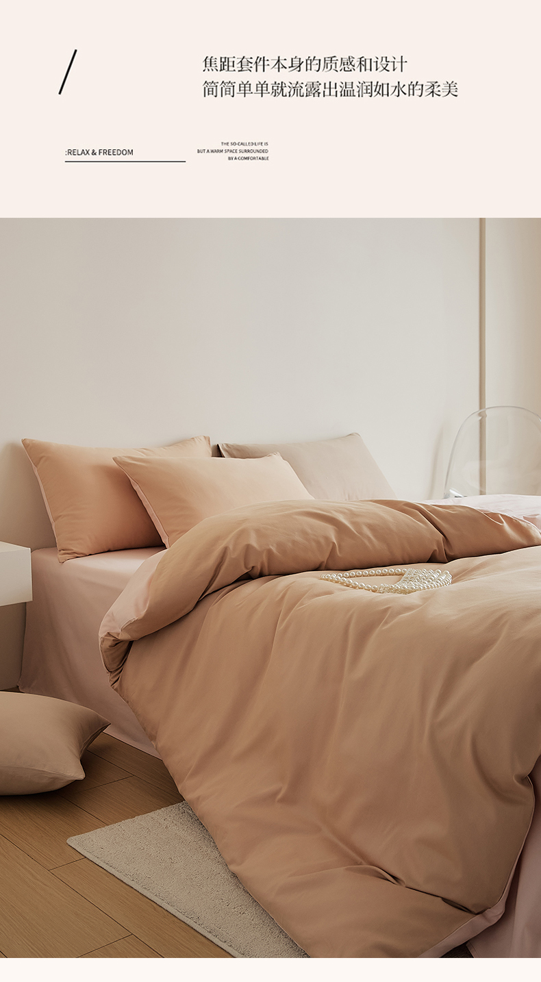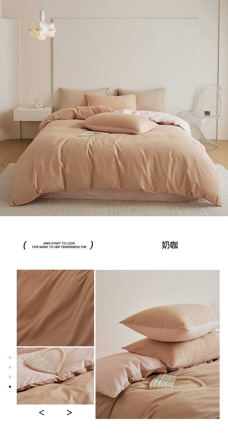 当前位置: 91家纺网 > 商品网购 > 床品套件 > 四件套 > 全棉普通四件套 > 眷恋家纺 2025新款A类全棉贡缎磨毛双拼色四件套 奶咖