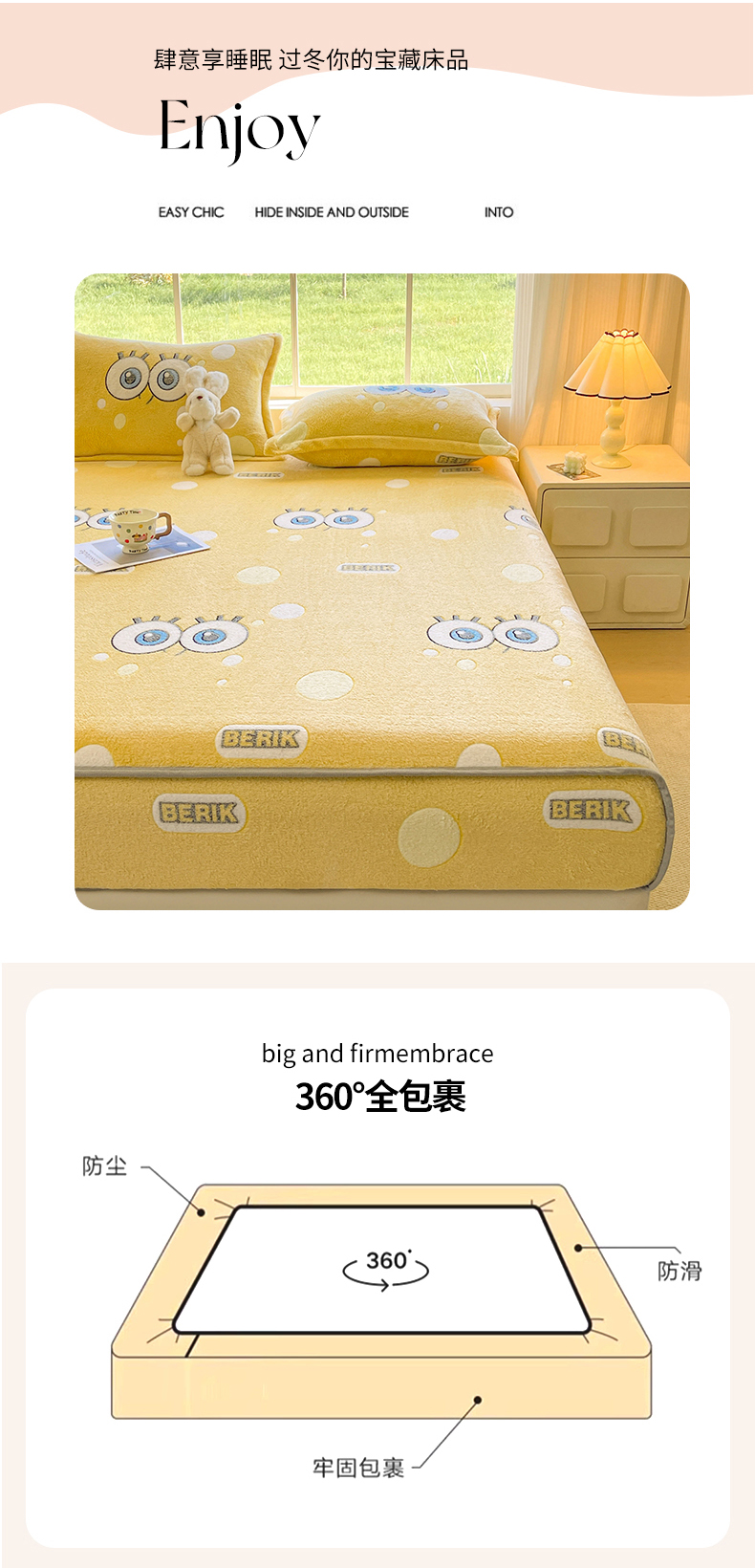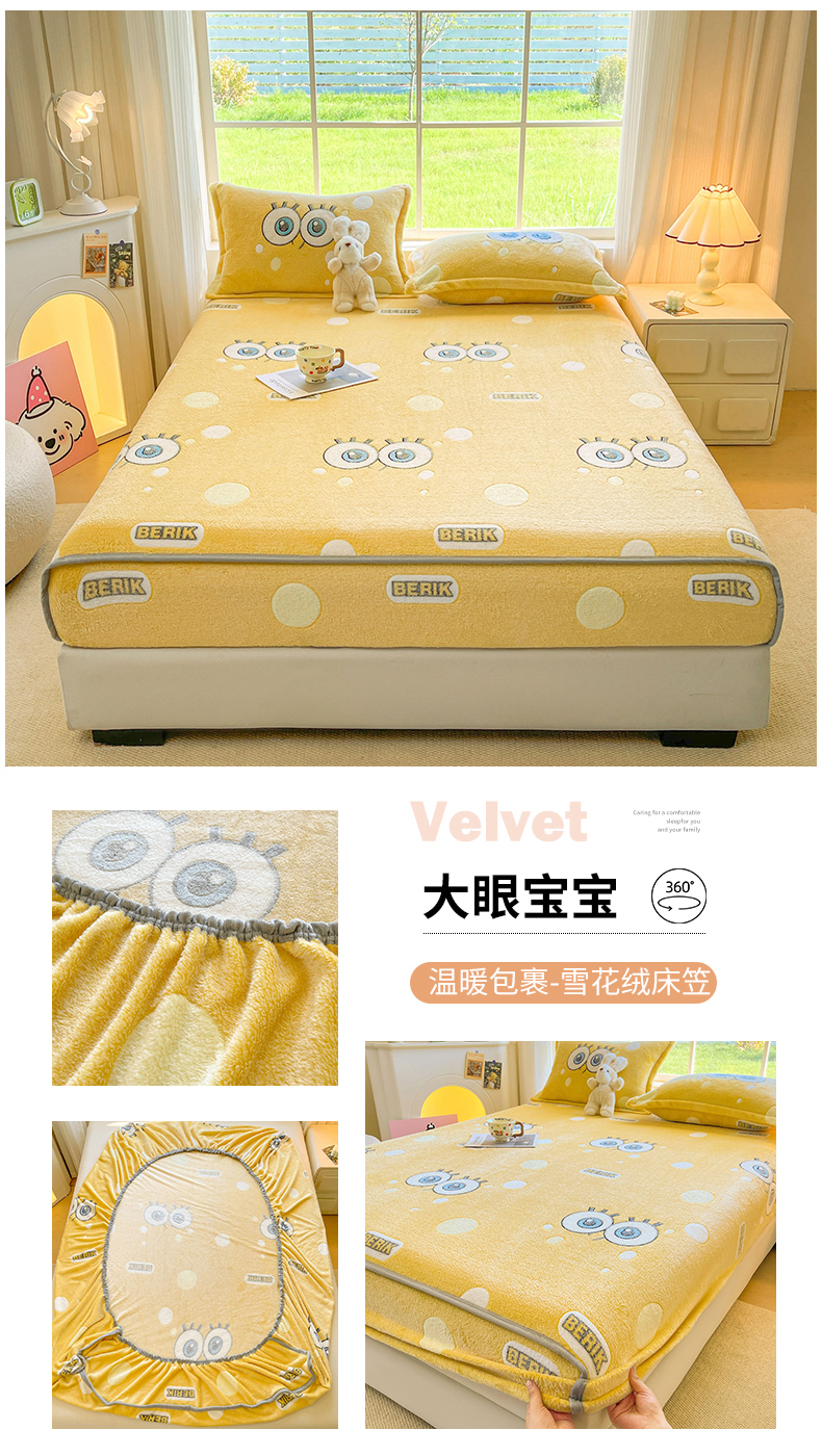 牵梦萦家纺 2025新款雪花绒立体包边床笠 大眼宝宝