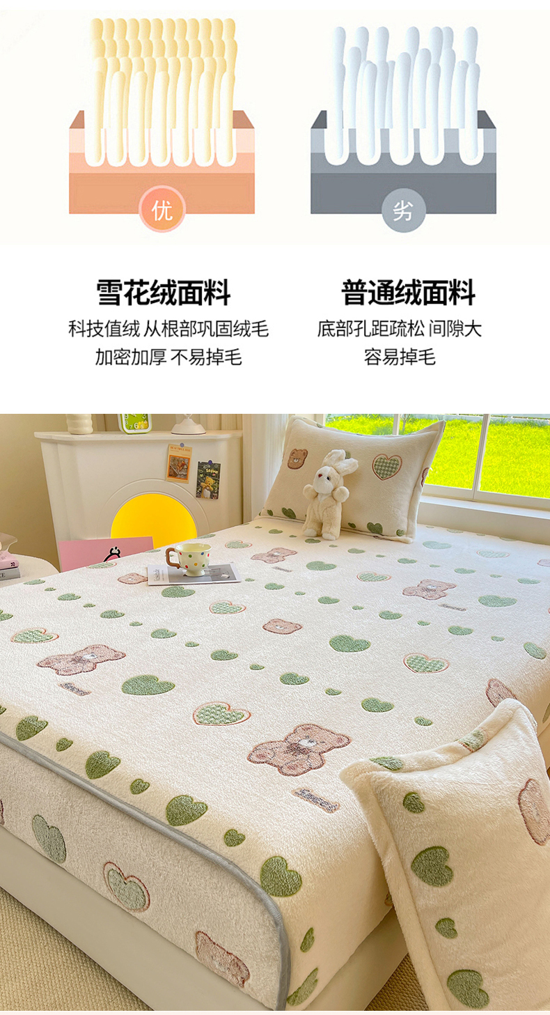 商品名称:牵梦萦家纺 2025新款雪花绒立体包边床笠 心动小熊