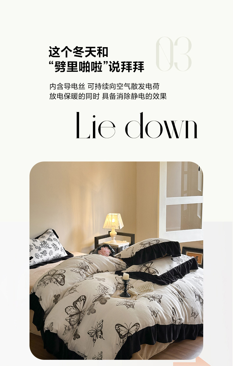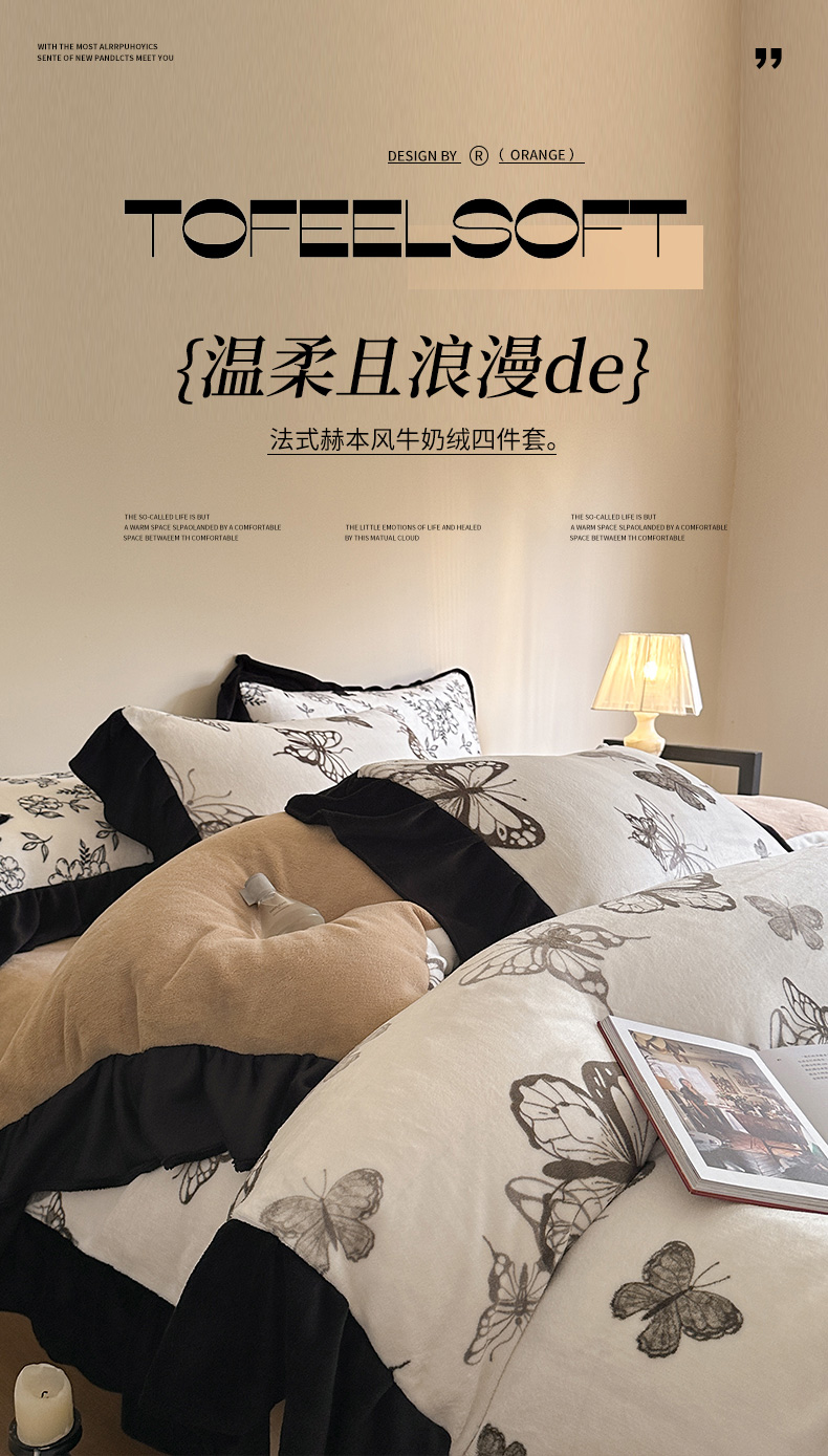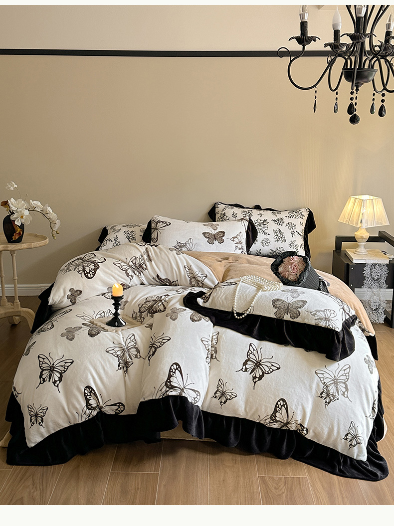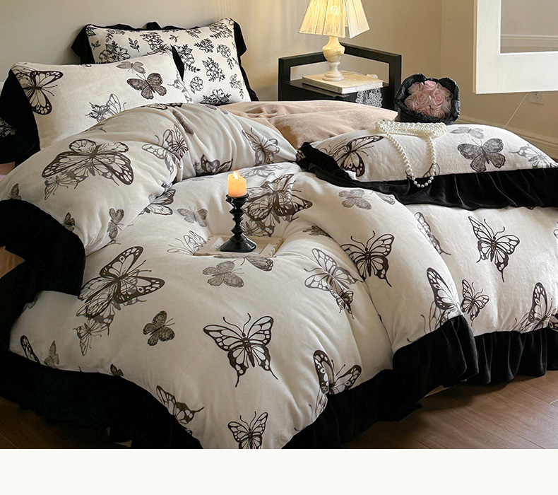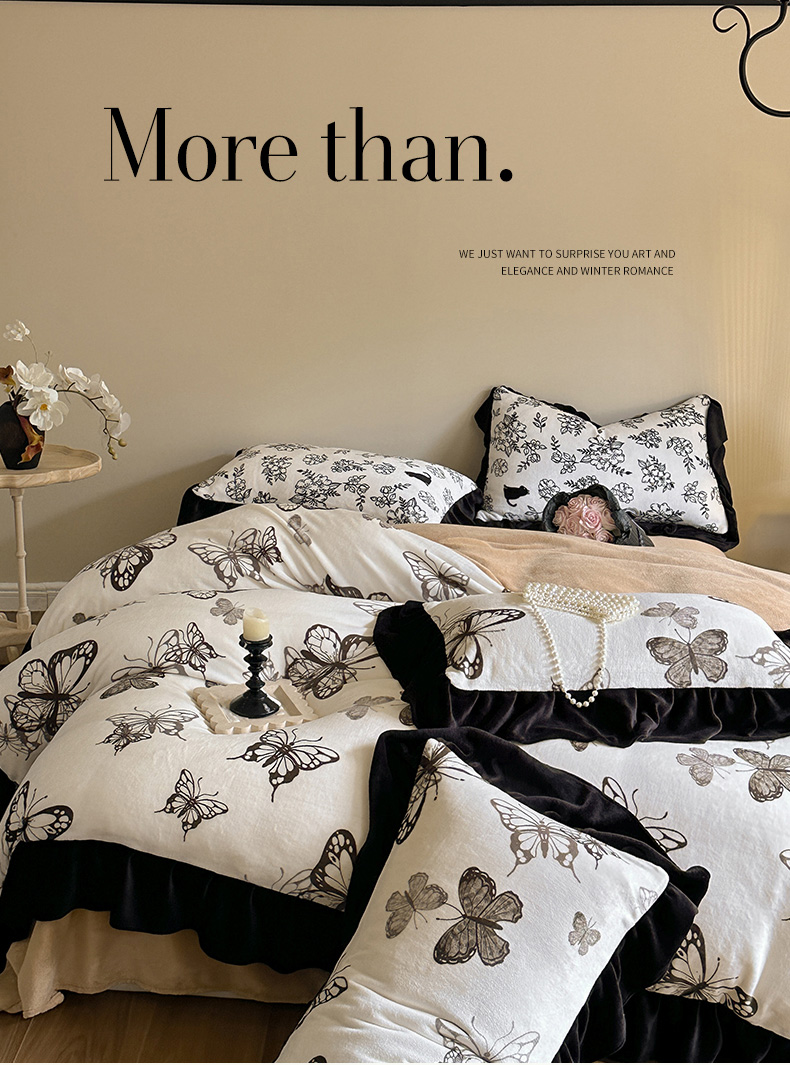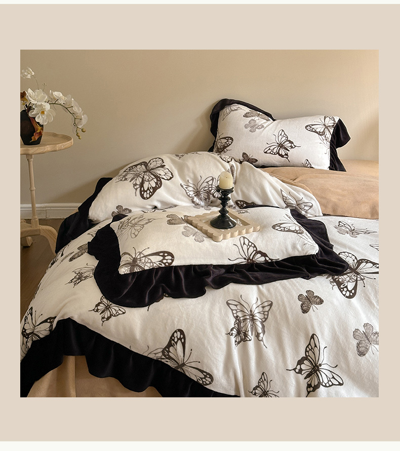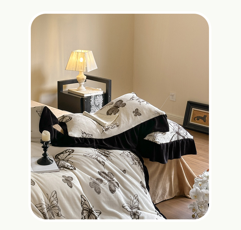 当前位置: 91家纺网 > 商品网购 > 床品套件 > 四件套 > 牛奶绒四件套 > 安哆啦家纺 2025新款法式赫本风牛奶绒四件套 法式-蝴蝶翩翩