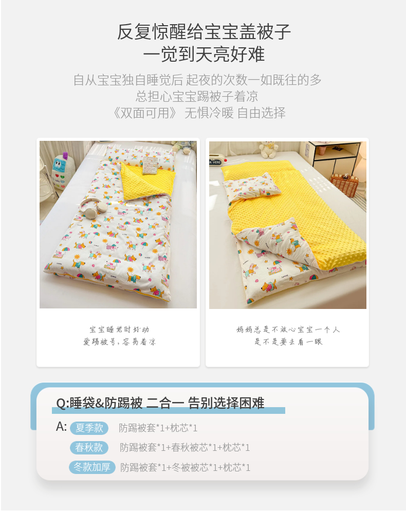 当前位置: 91家纺网 > 商品网购 > 婴童用品 > 婴童睡袋/防踢被 > 十九色 2025新款亲肤舒适活套可拆全棉豆豆绒儿童睡袋防踢被 内芯