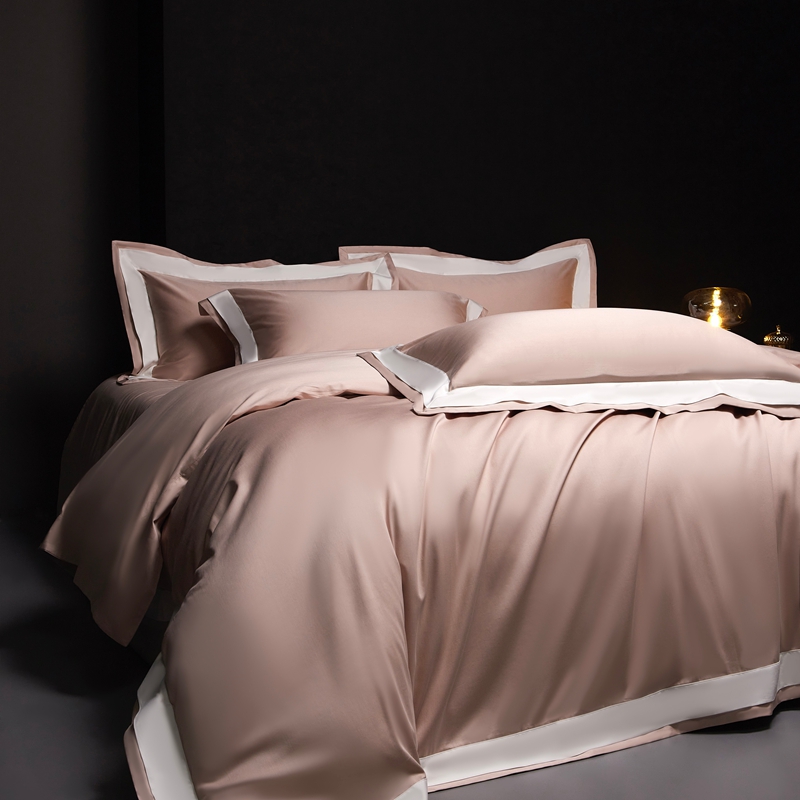 南泉坊 2025新款亲肤舒适全棉纯棉长绒棉双层荷叶边撞色四件套-休斯顿 休斯顿-虾粉