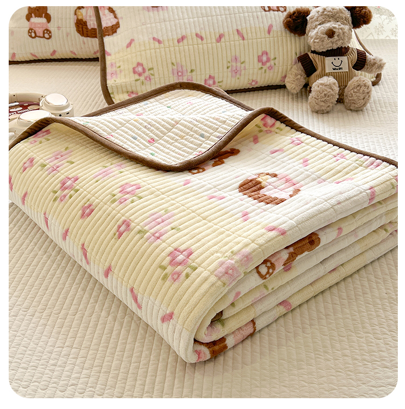 • 91家纺网 家纺一手货源 找家纺 茉夕家纺 2025新款2025跑量双层纱牛奶绒印花床盖 床盖单件 白桃公主