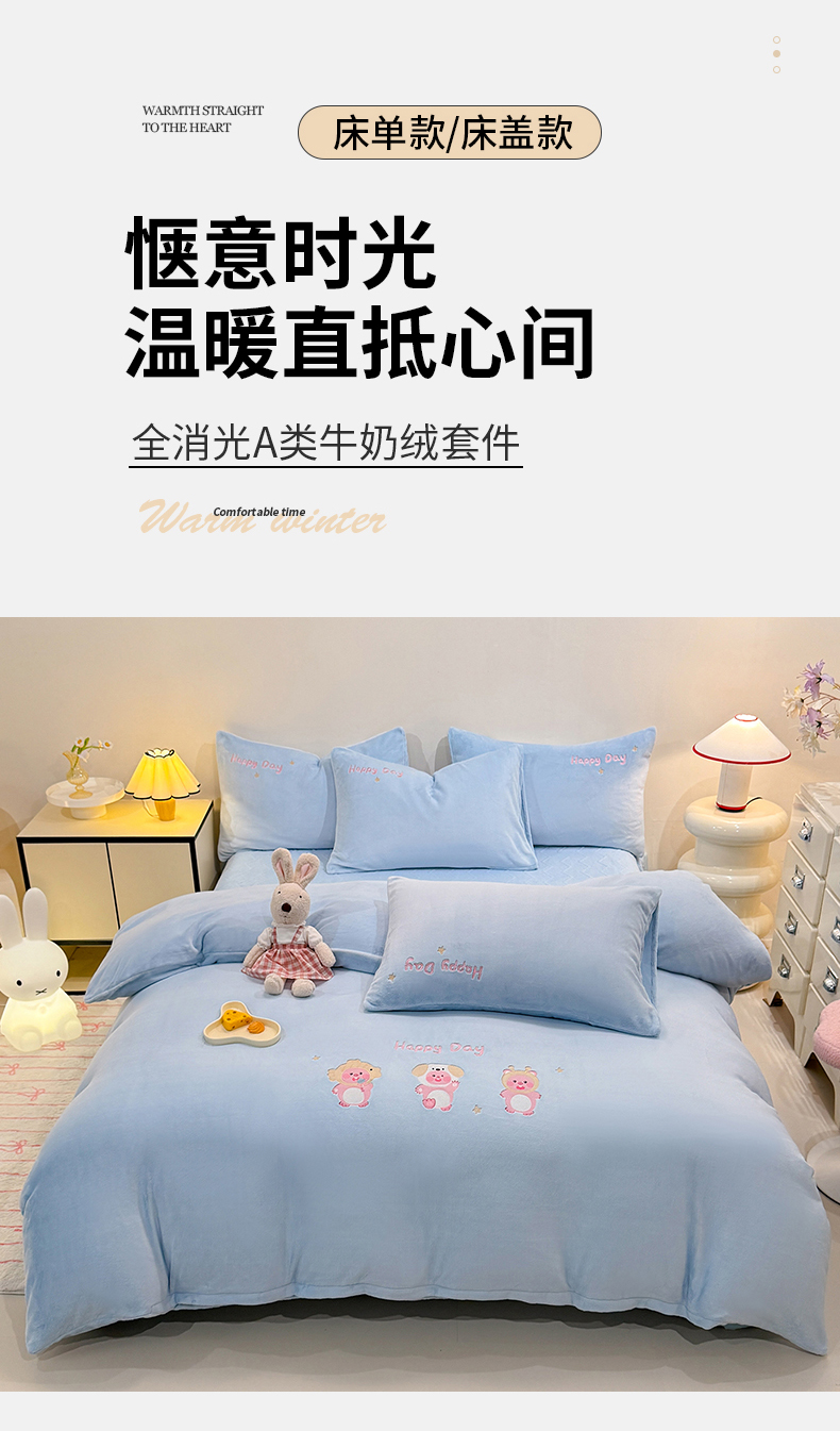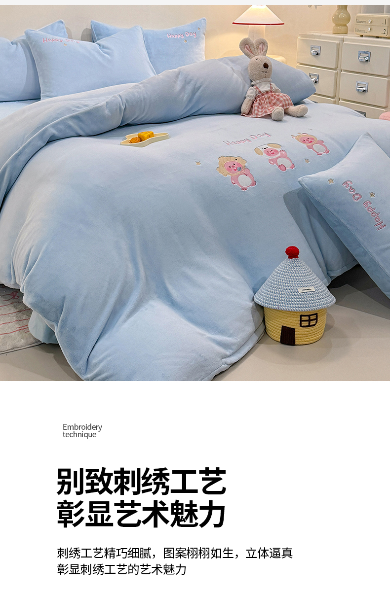 当前位置: 91家纺网 > 商品网购 > 床品套件 > 四件套 > 牛奶绒四件套 > 新方向 2025新款全消光A类刺绣牛奶绒四件套-可爱卢比 可爱卢比-星月蓝