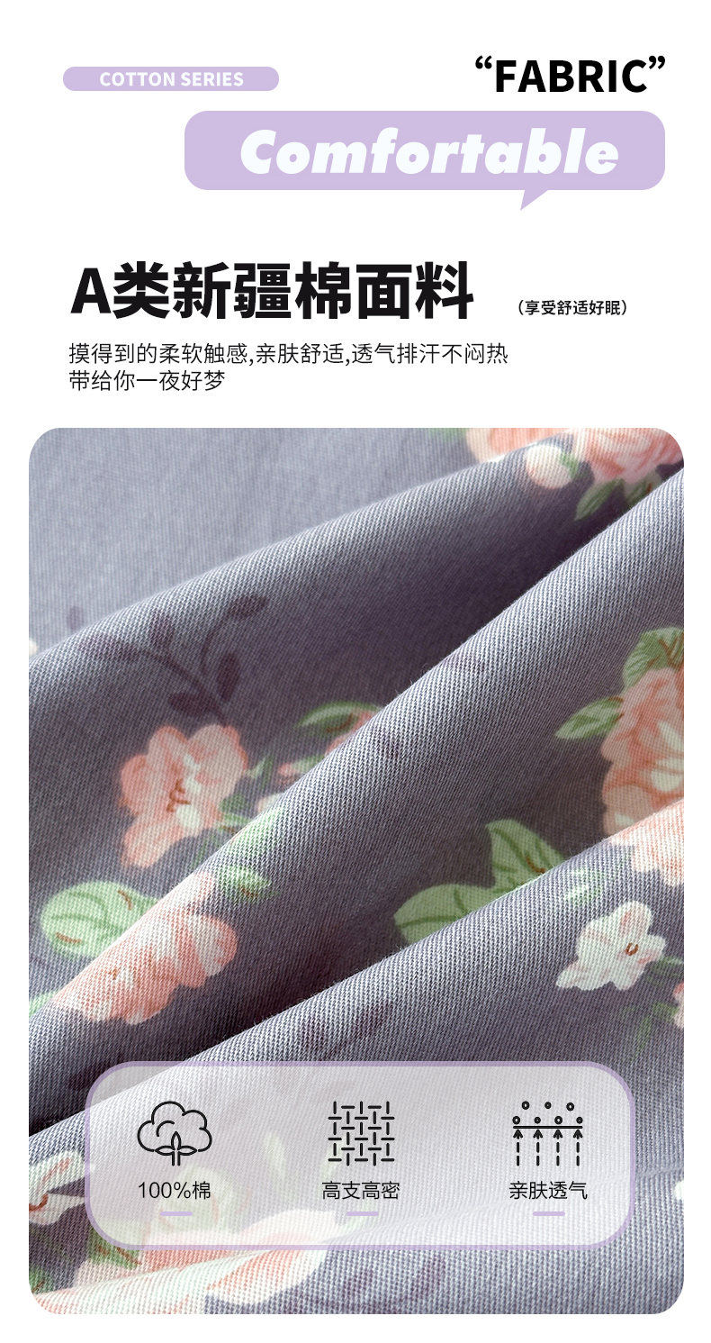 商品名称:拾物记 2025新款A类12868全棉纯棉单枕套枕套单件-提供买家秀和质检报告 幸福花儿-紫