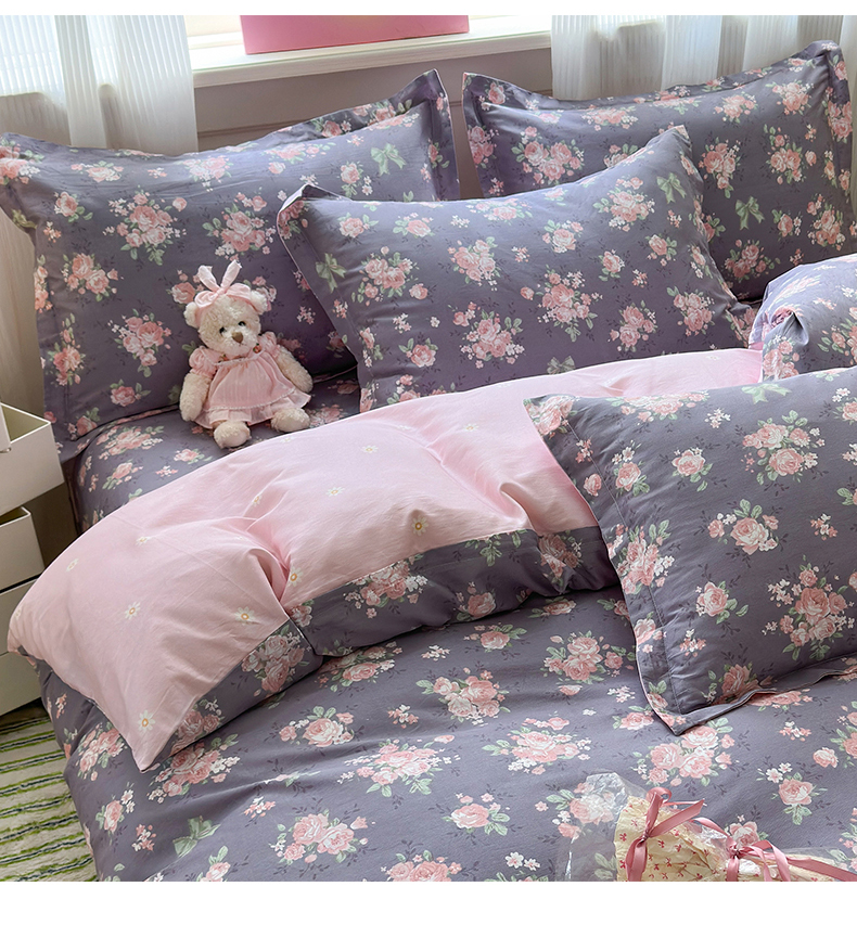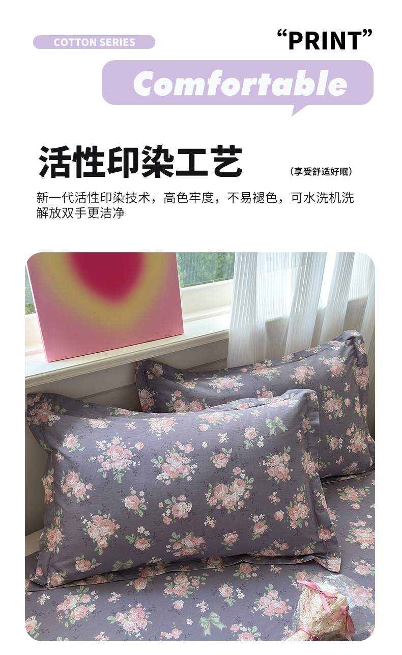 拾物记 2025新款A类12868全棉纯棉单枕套枕套单件-提供买家秀和质检报告 幸福花儿-紫