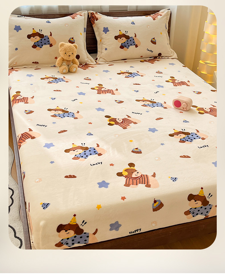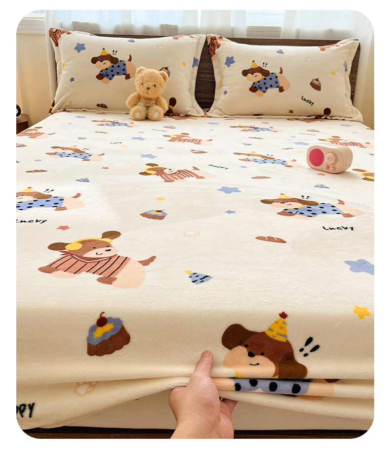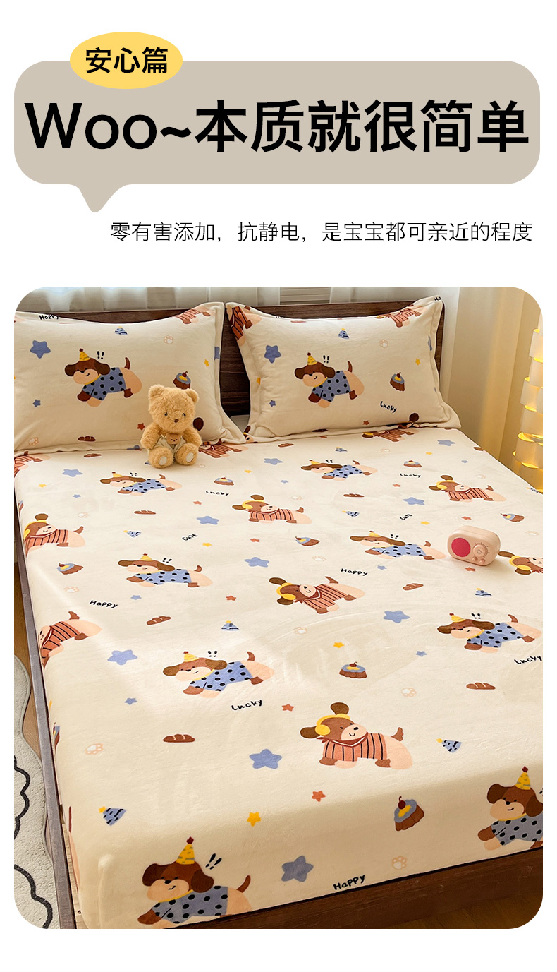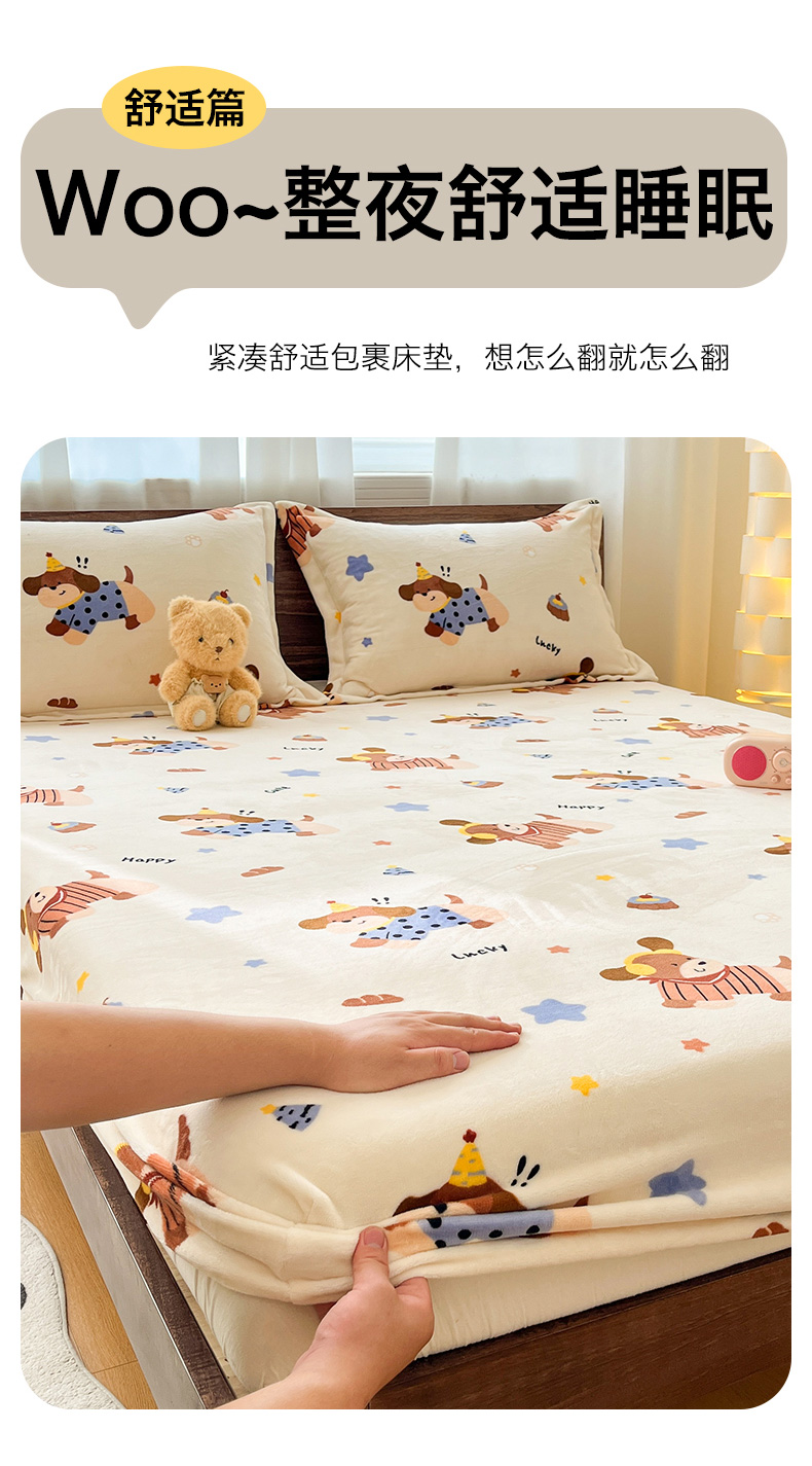 寻米 2025新款加厚牛奶绒印花床笠-大床牛奶绒床笠一号 摇滚星球