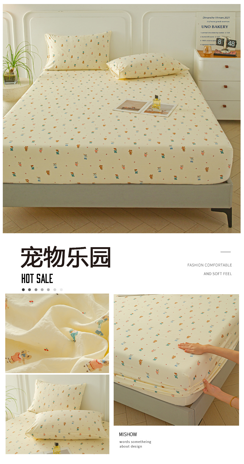 商品名称:斯卡诺家纺 2025新款秋冬爆款古法水洗棉单床笠床笠三件套枕套 宠物乐园-床笠