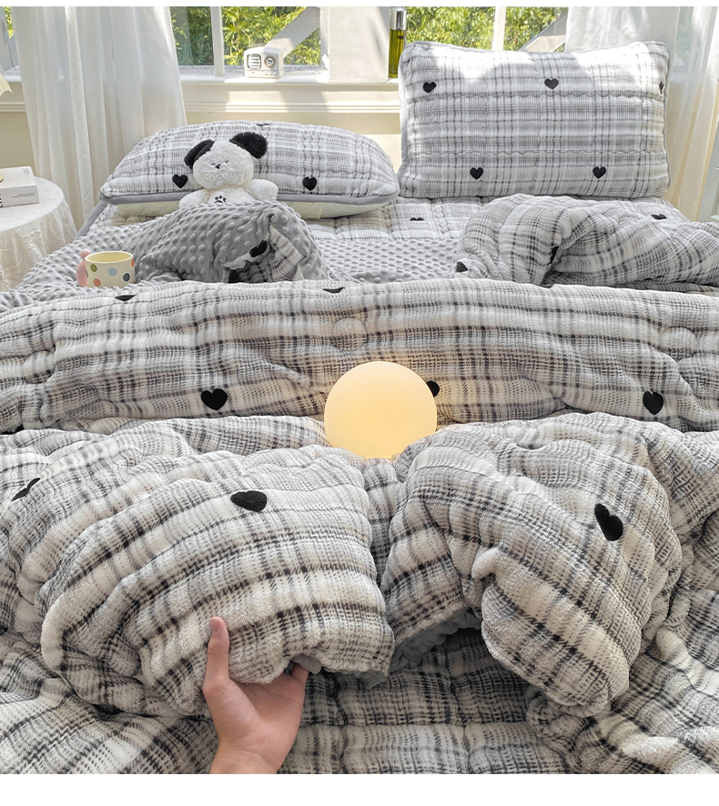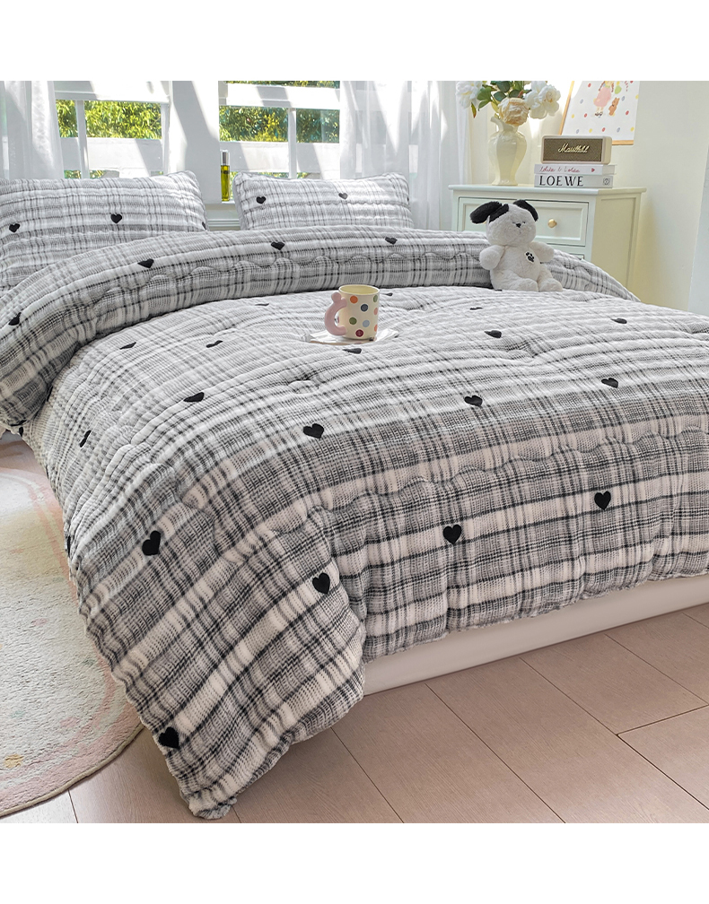 • 91家纺网 家纺一手货源 找家纺 眠势力 2025新款兔兔绒豆豆被子冬被芯加绒兔毛绒加厚保暖被褥 格子爱心【兔兔绒豆豆被】